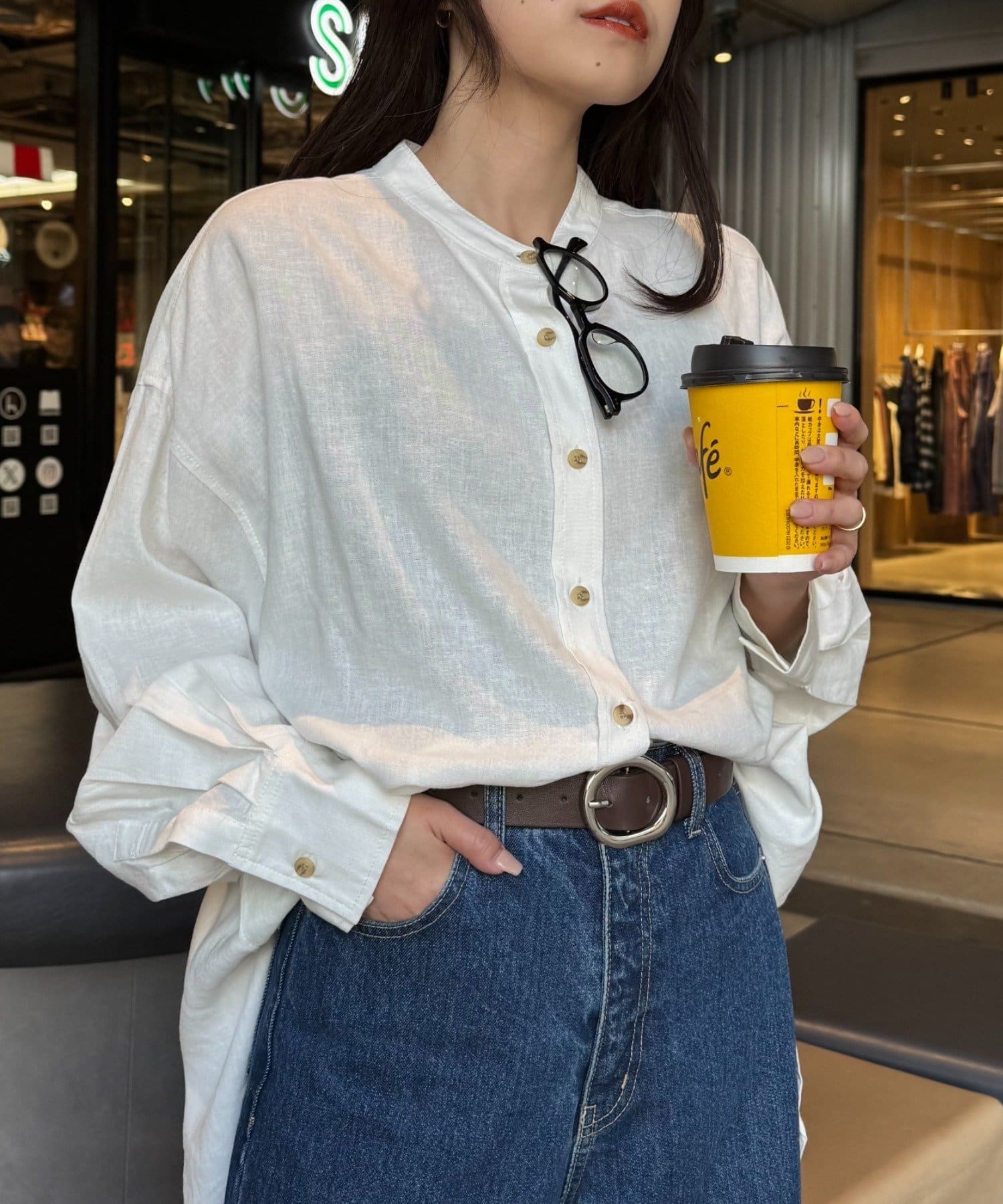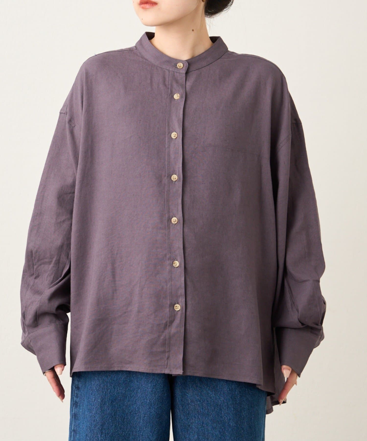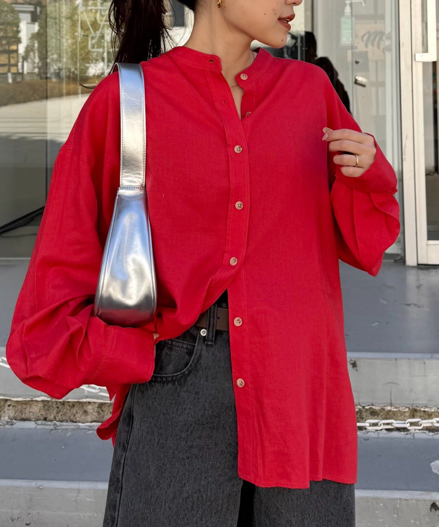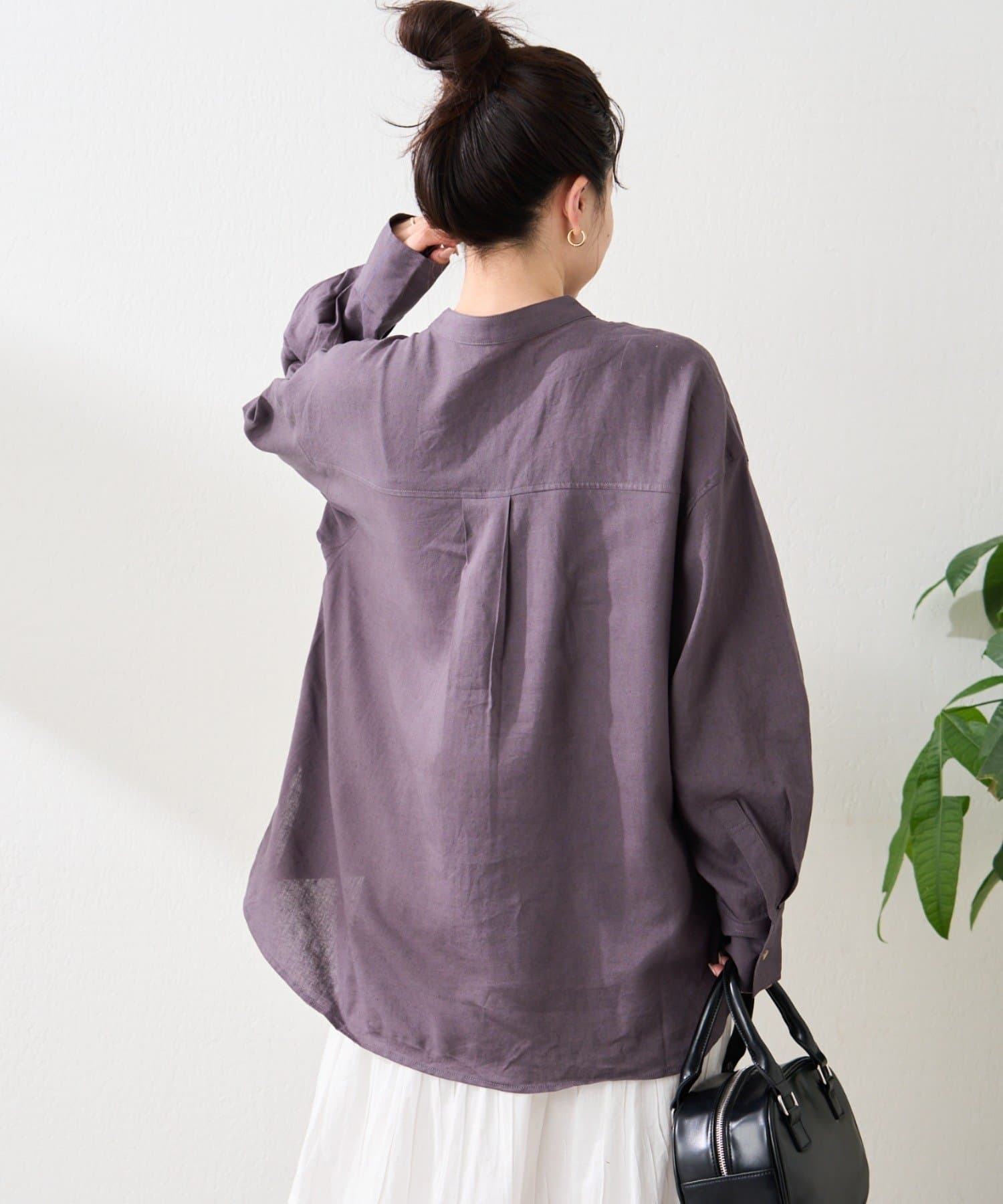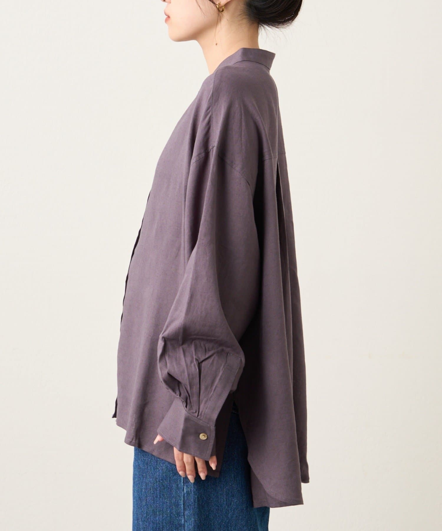 バンドカラーは顔周りをすっきり見せてくれ、レイヤードスタイルにも使いやすいデザインです!