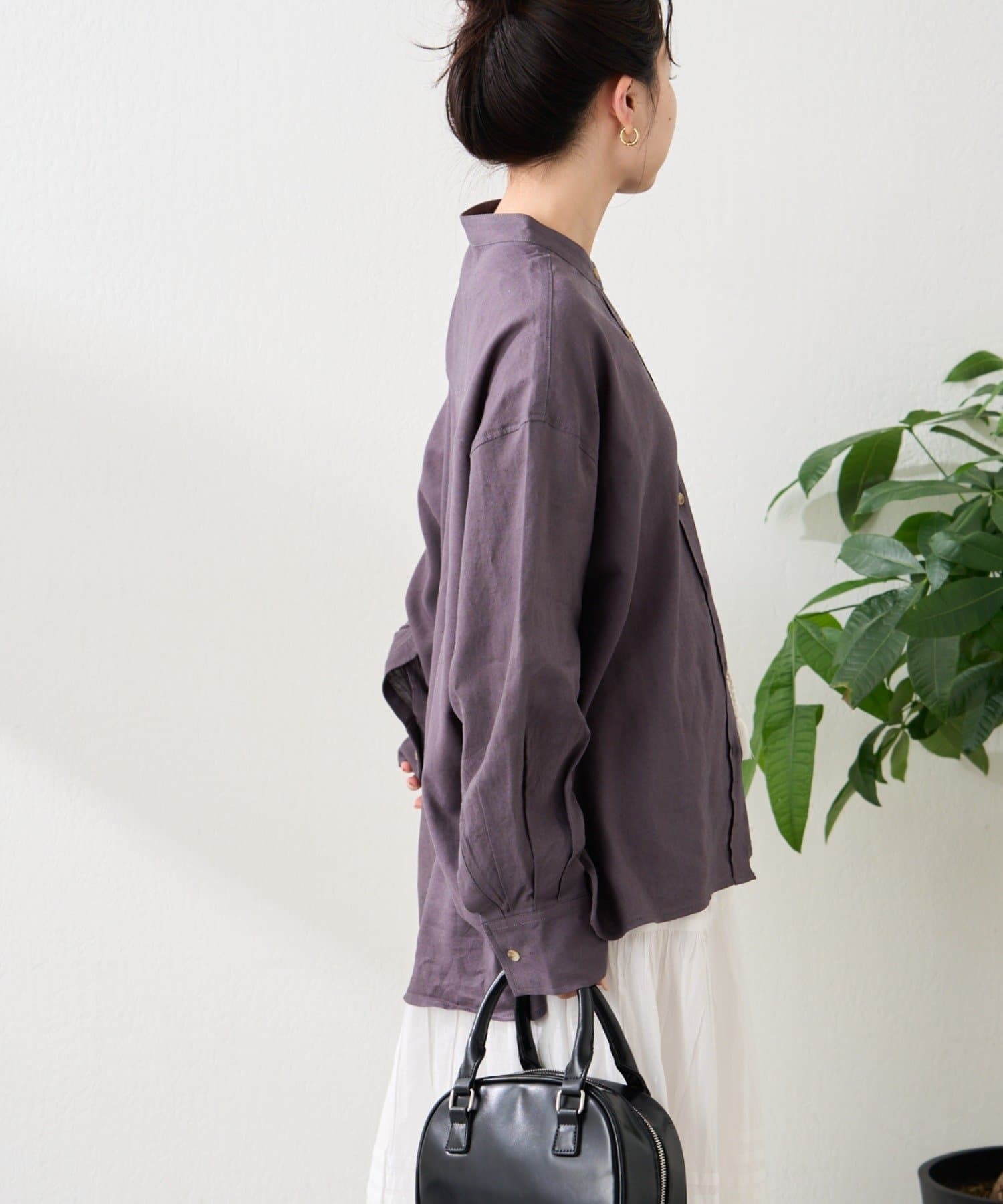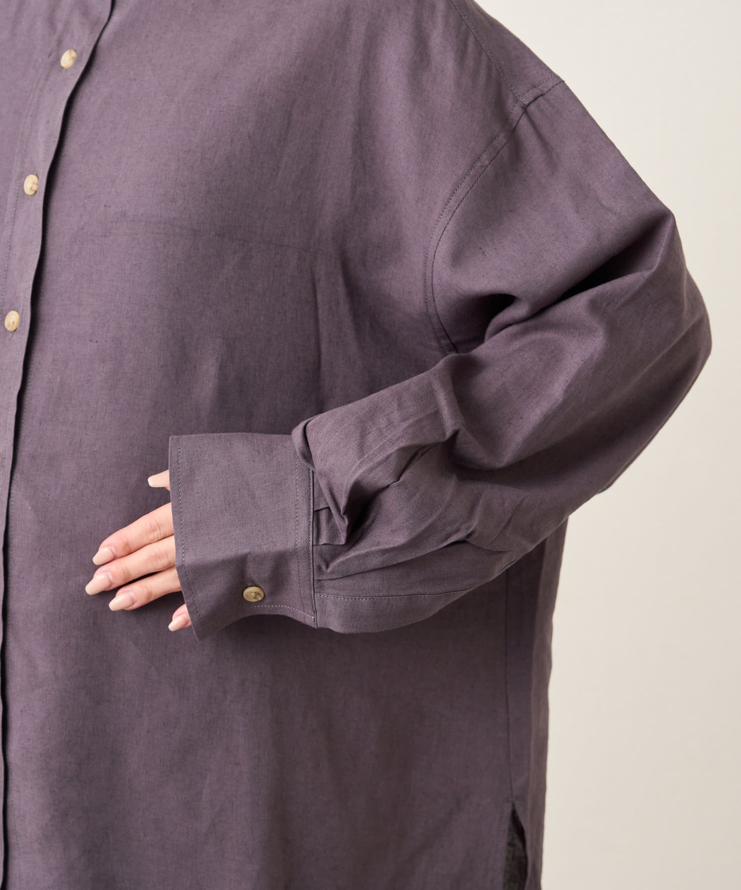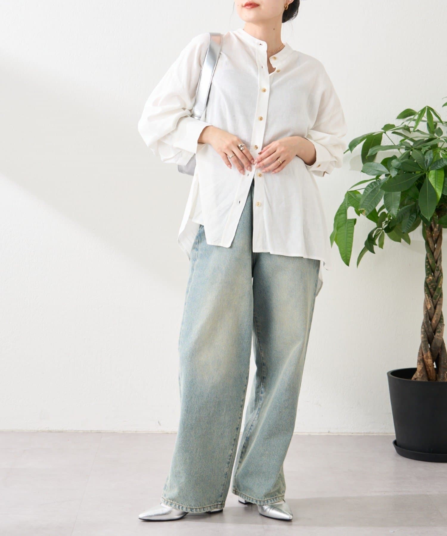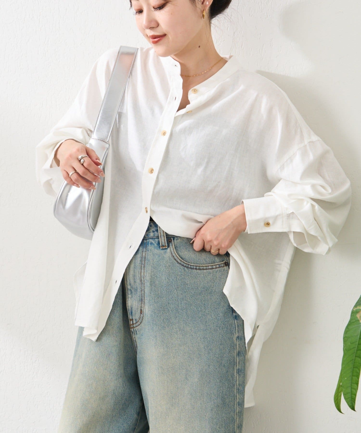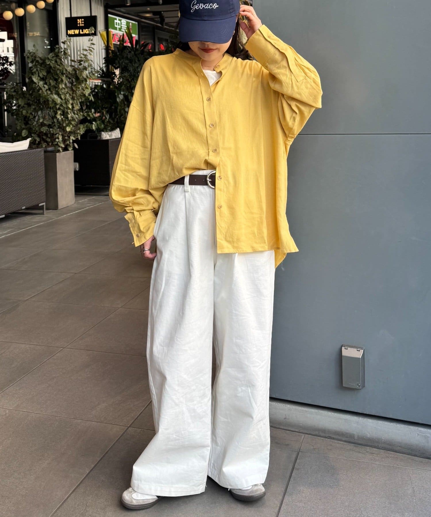 バンドカラーは顔周りをすっきり見せてくれ、レイヤードスタイルにも使いやすいデザインです!