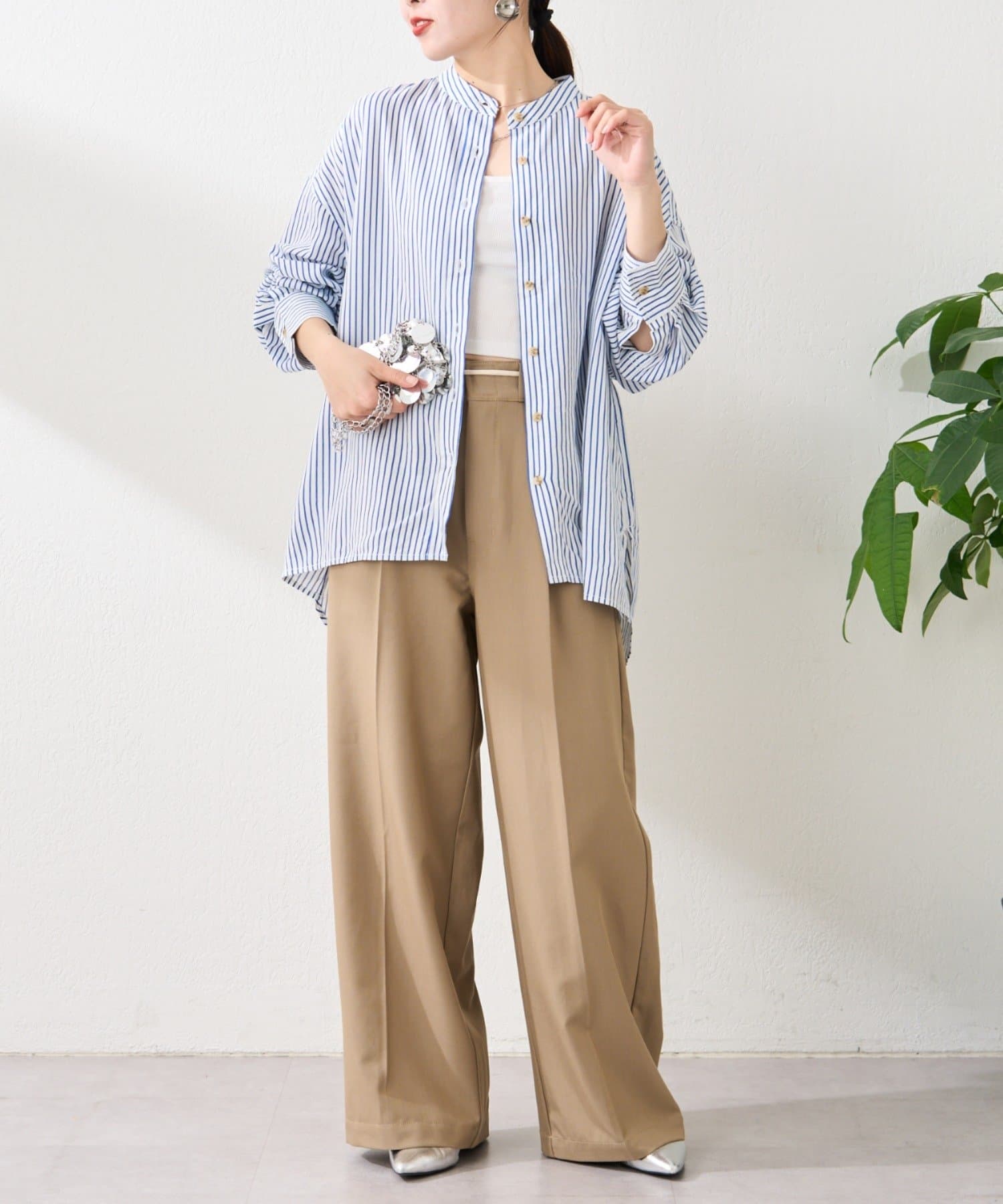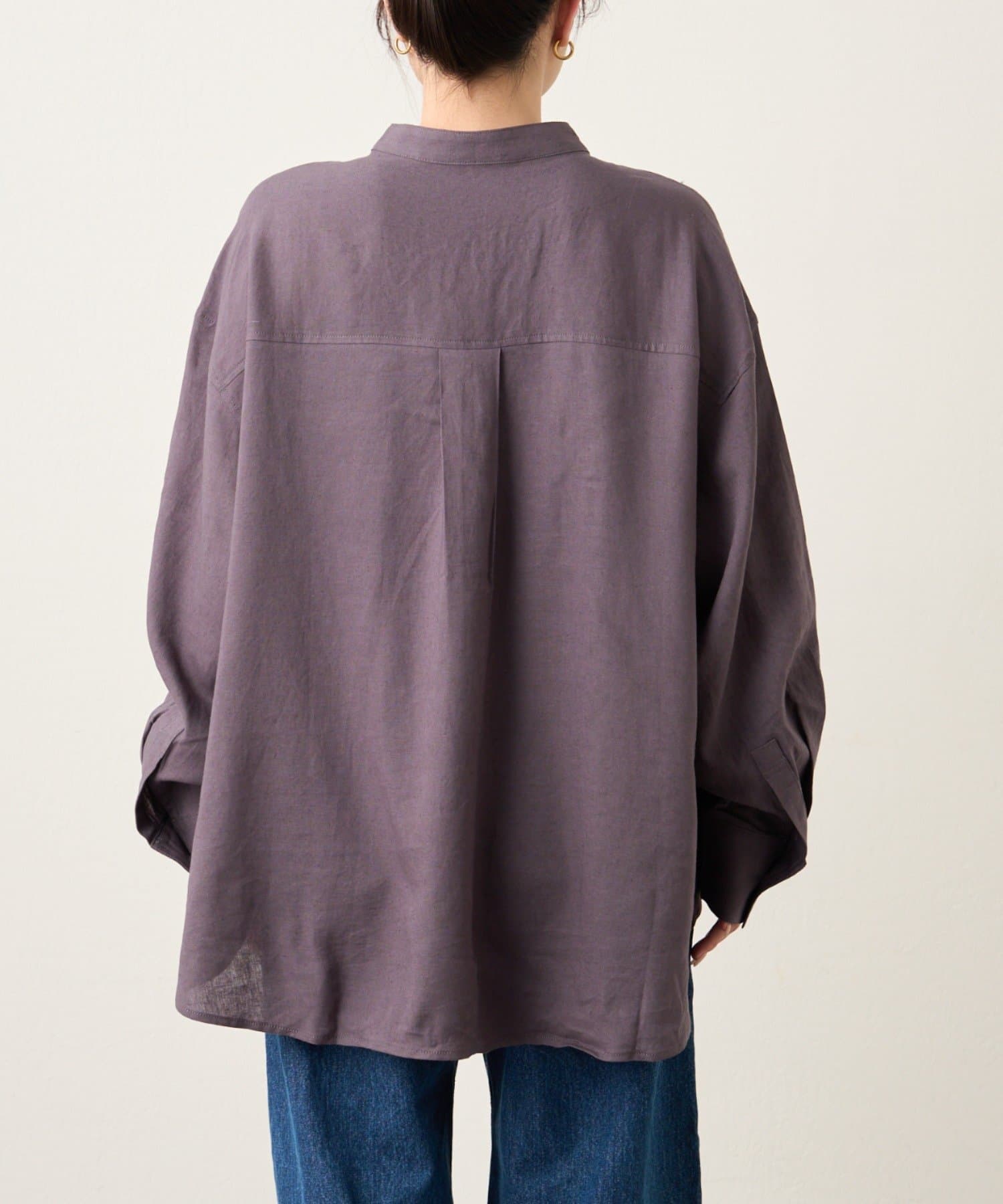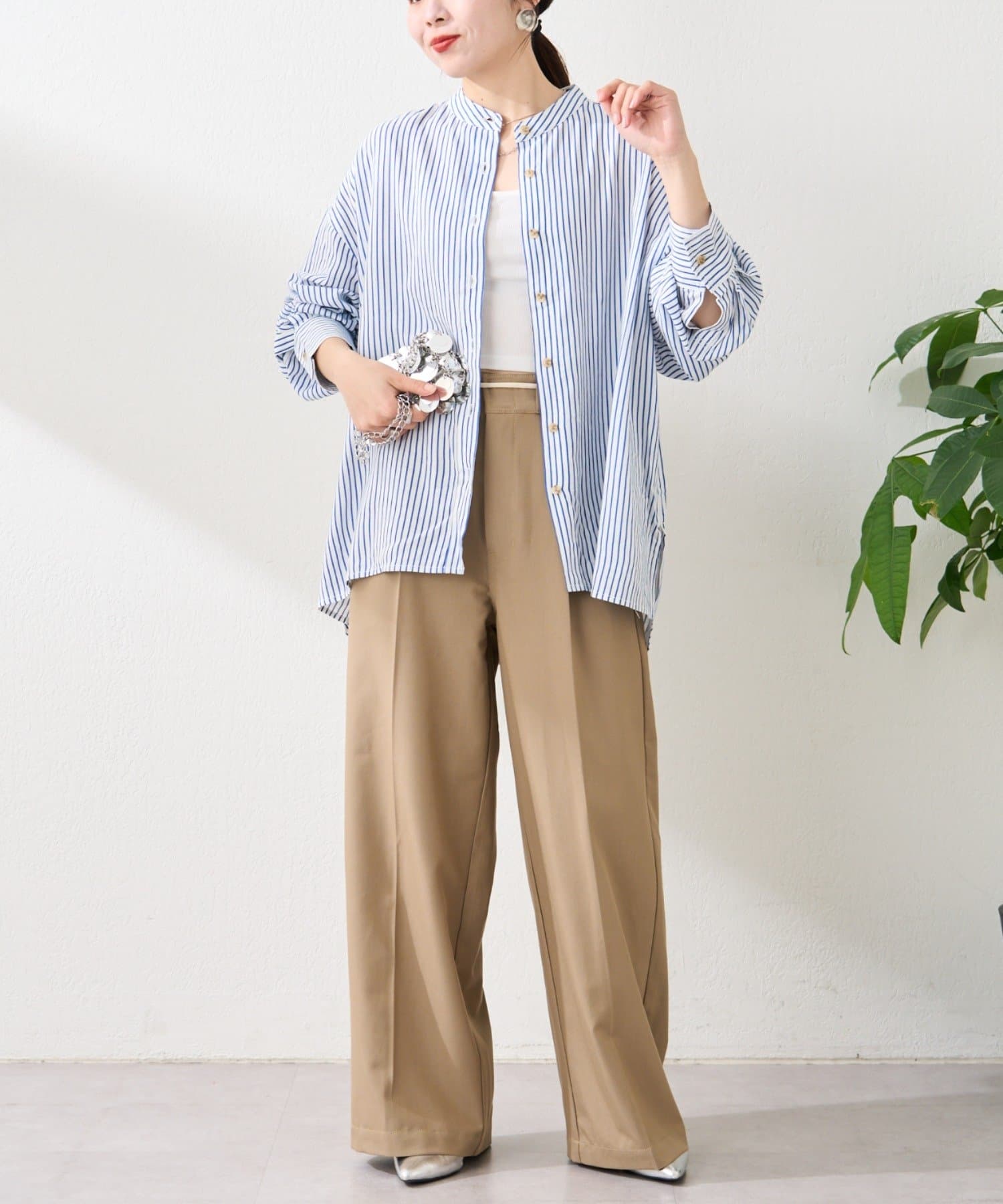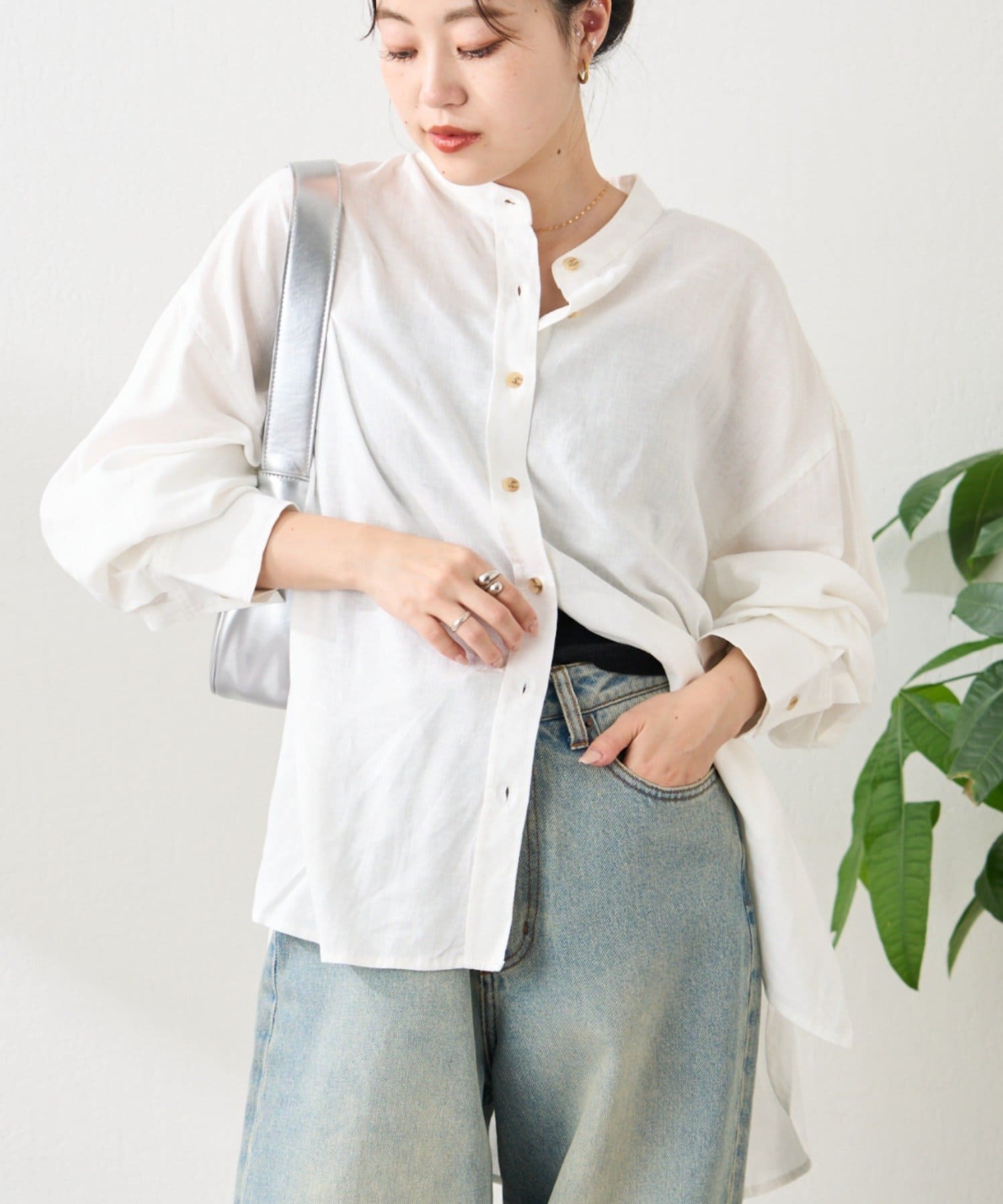 バンドカラーは顔周りをすっきり見せてくれ、レイヤードスタイルにも使いやすいデザインです!