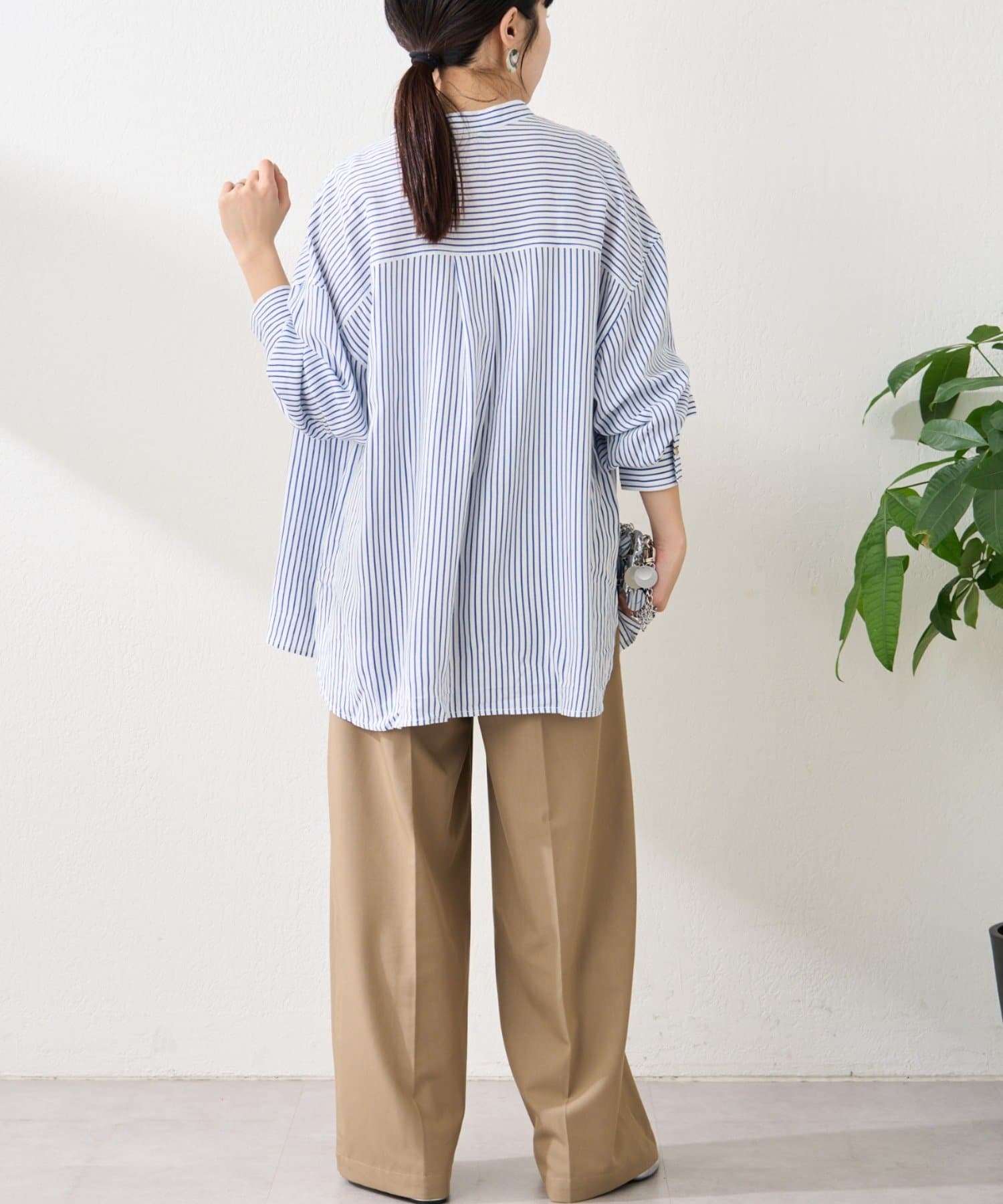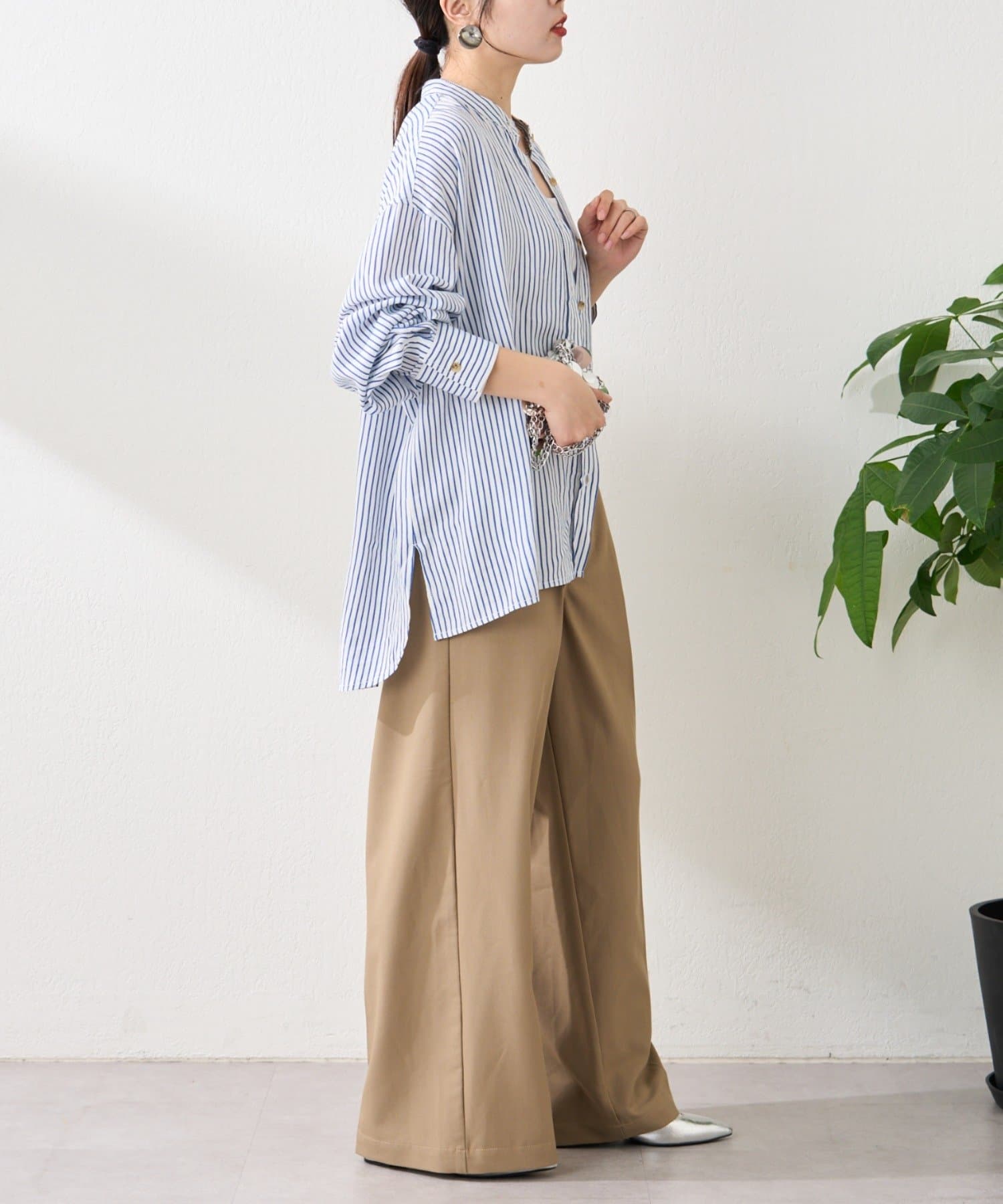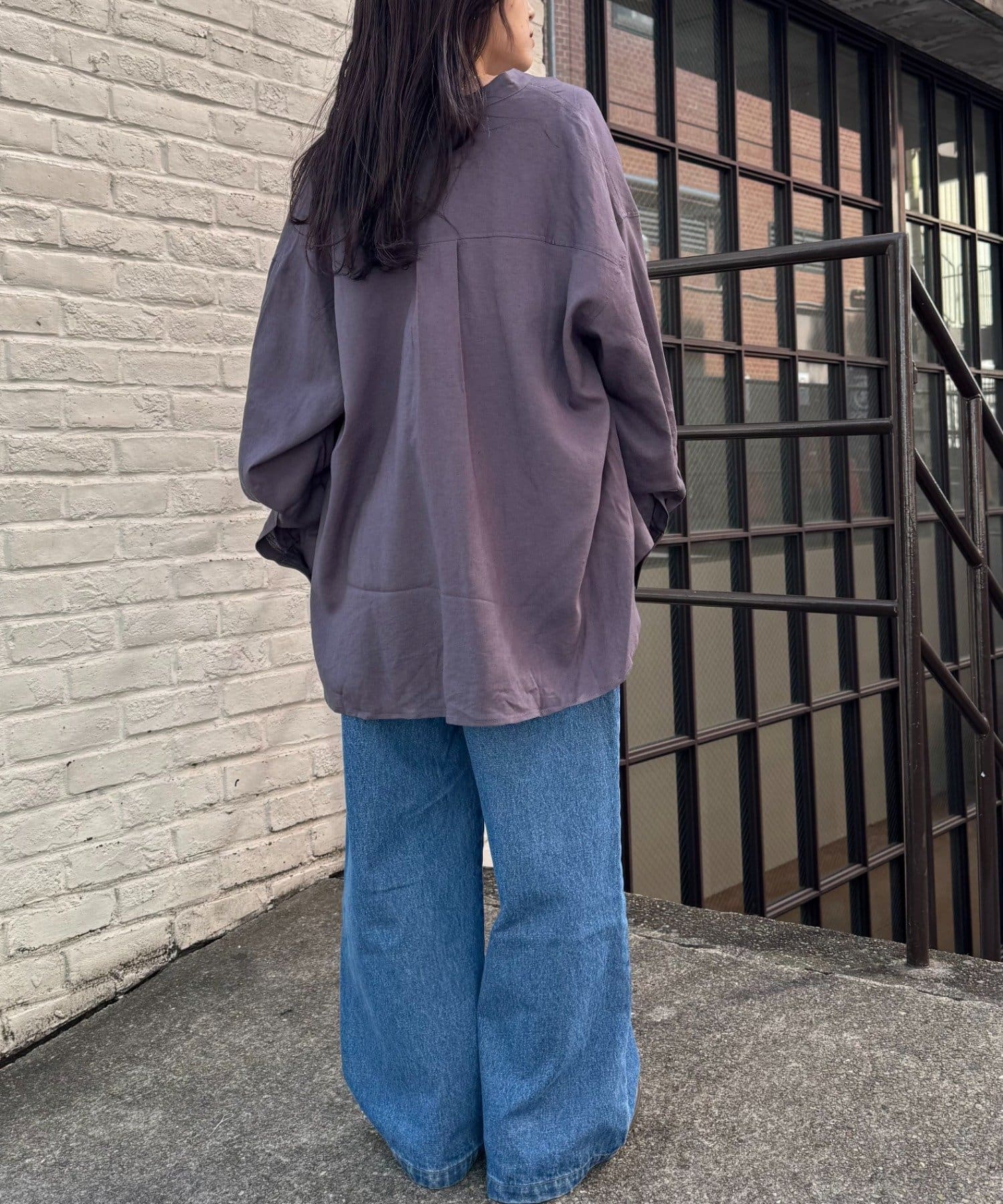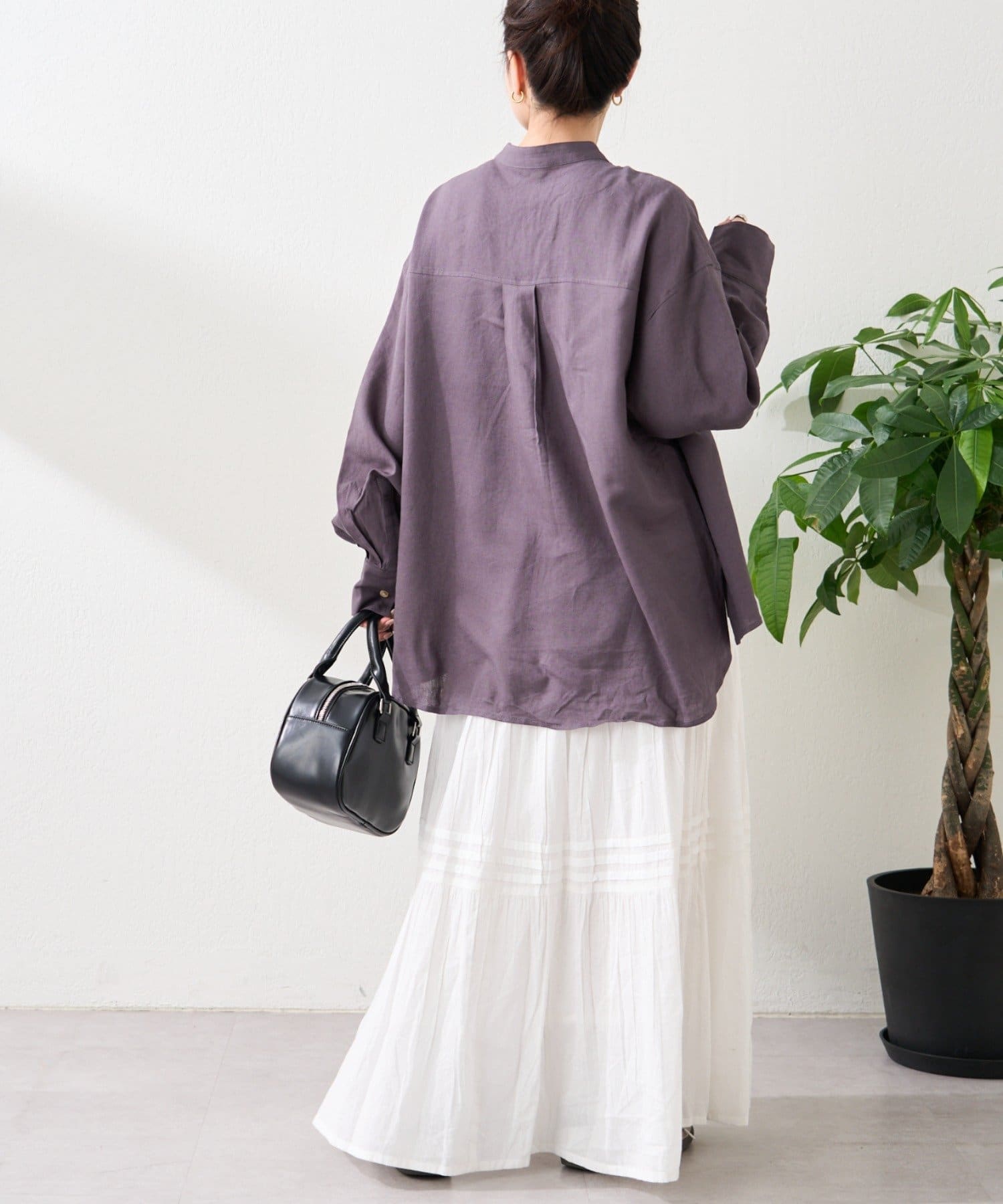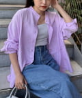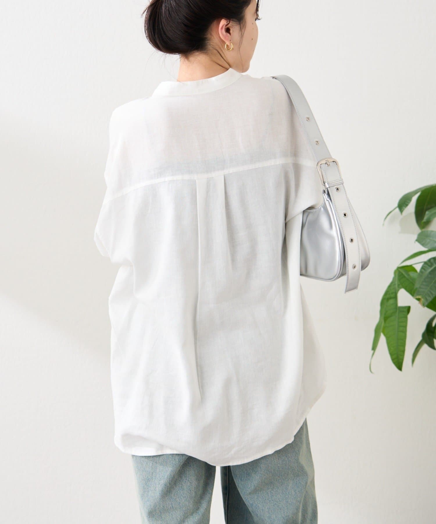 バンドカラーは顔周りをすっきり見せてくれ、レイヤードスタイルにも使いやすいデザインです!