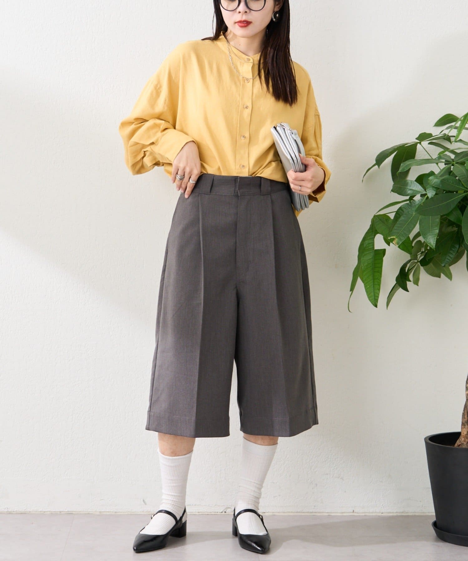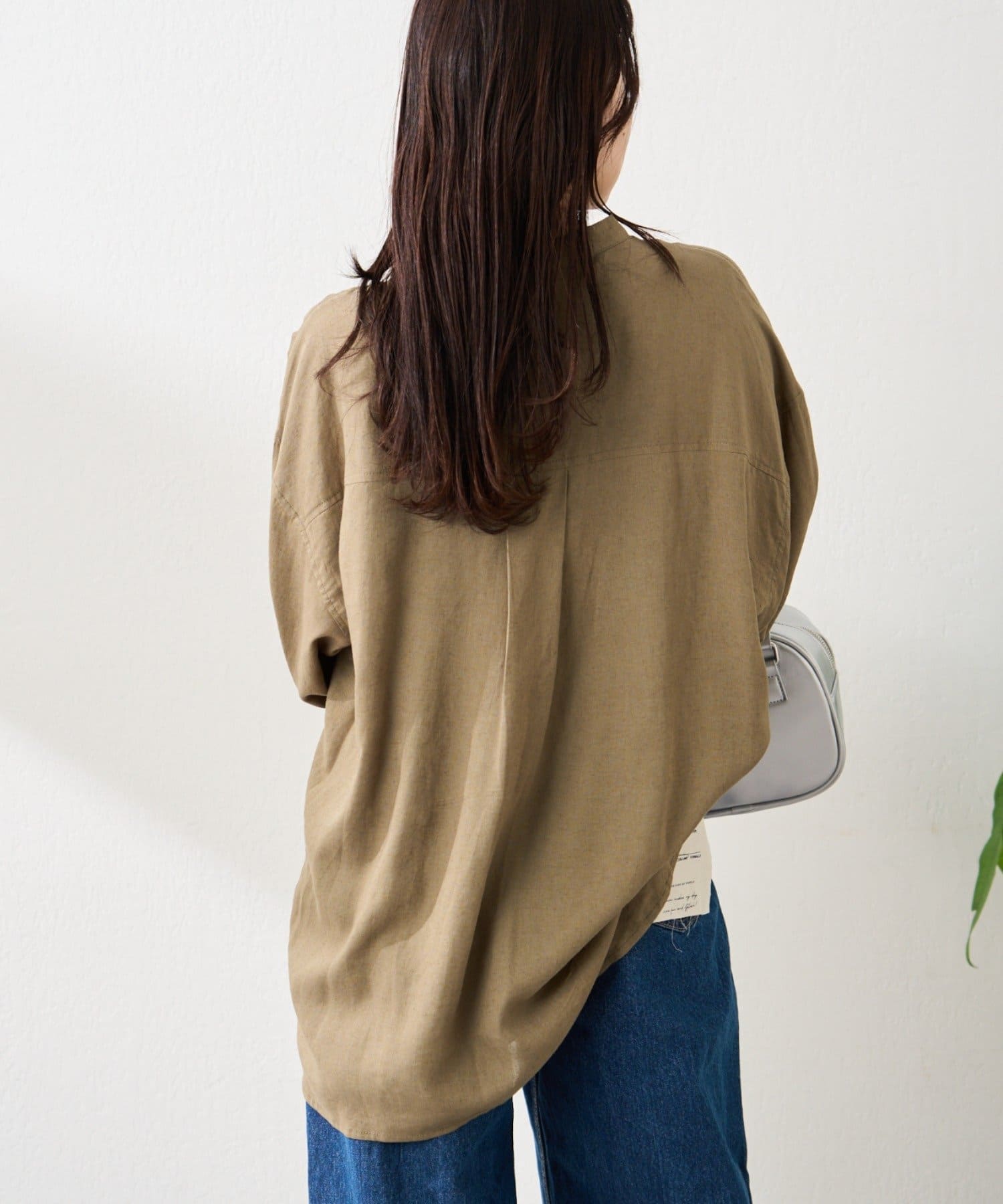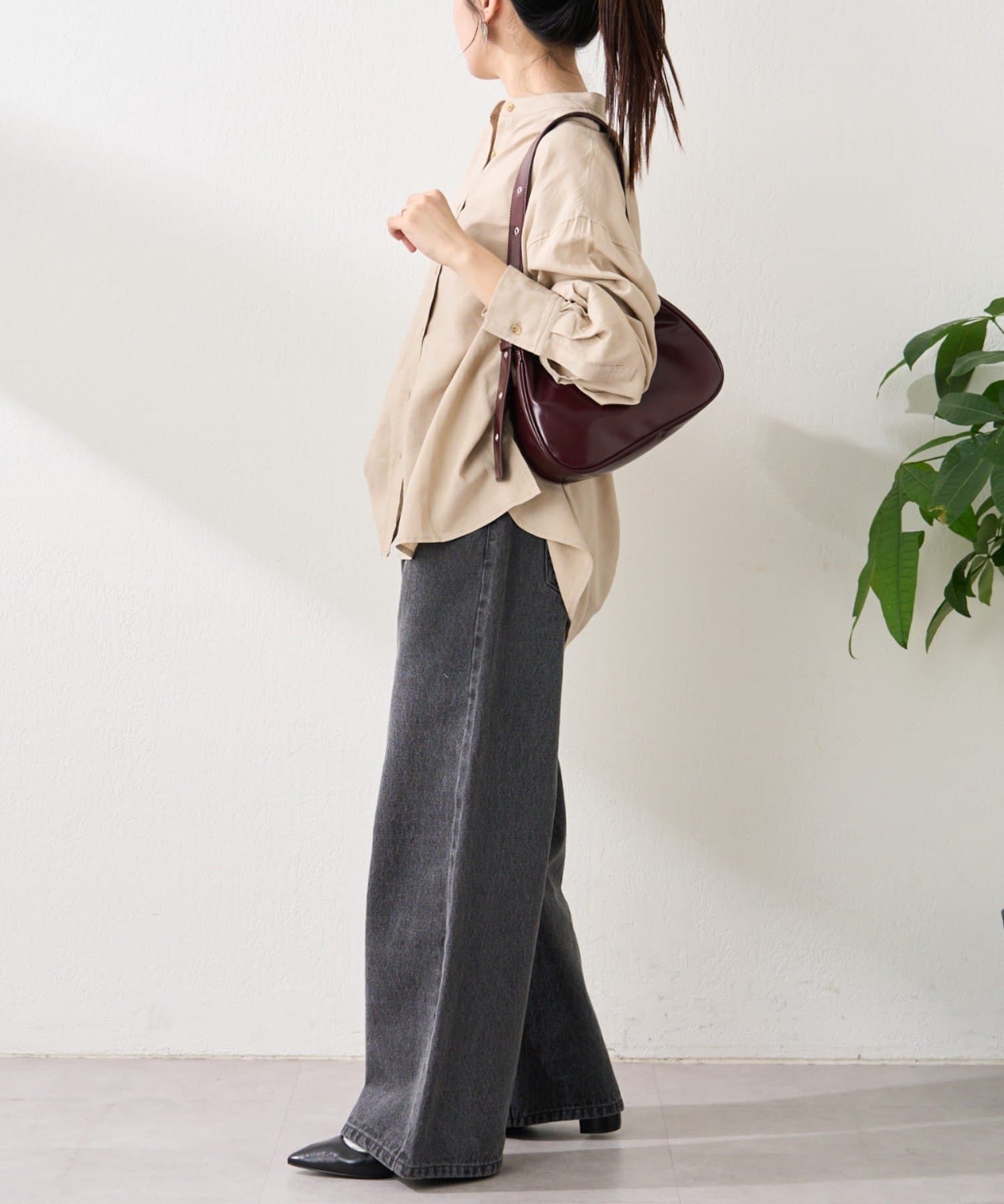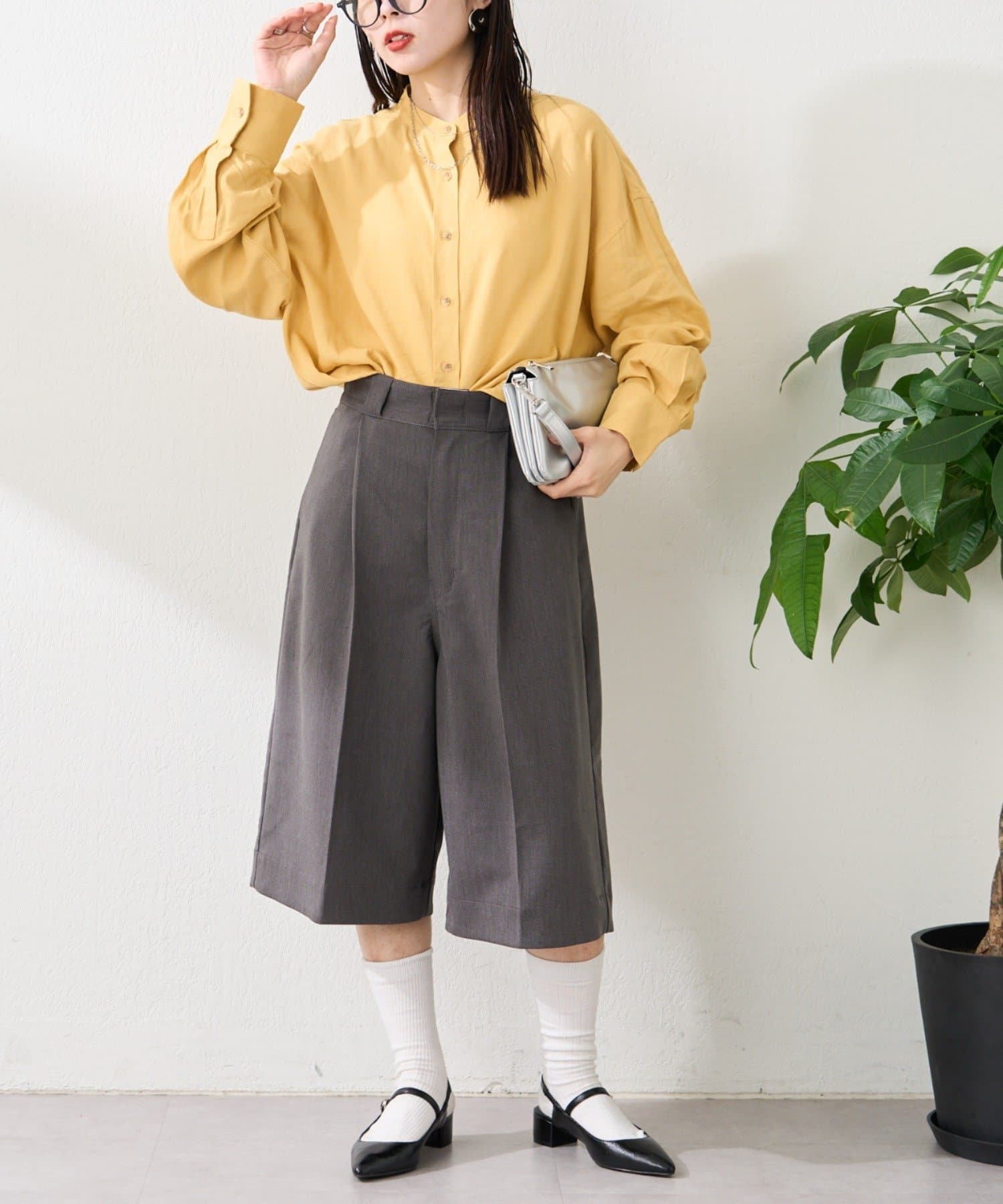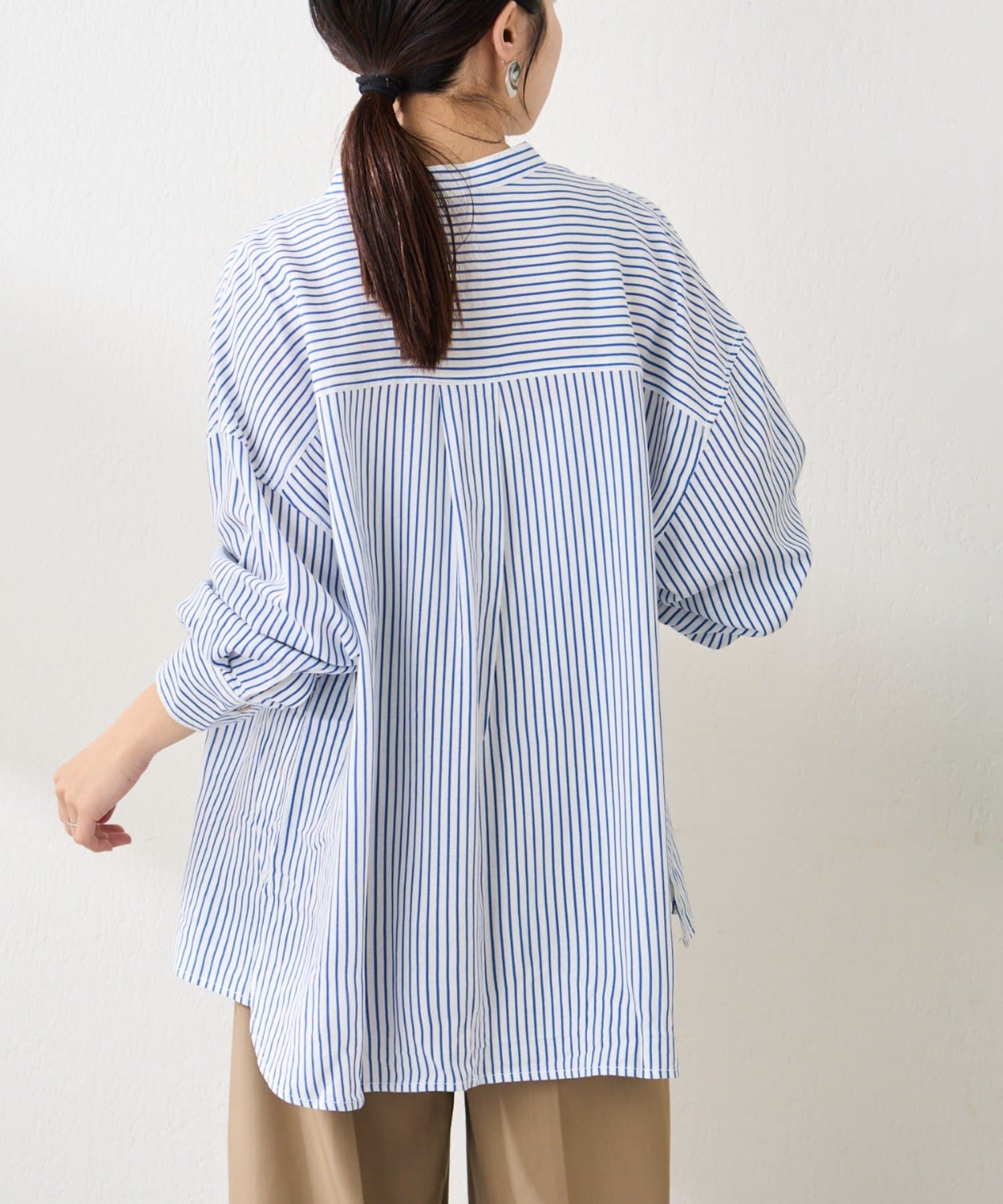 バンドカラーは顔周りをすっきり見せてくれ、レイヤードスタイルにも使いやすいデザインです!
