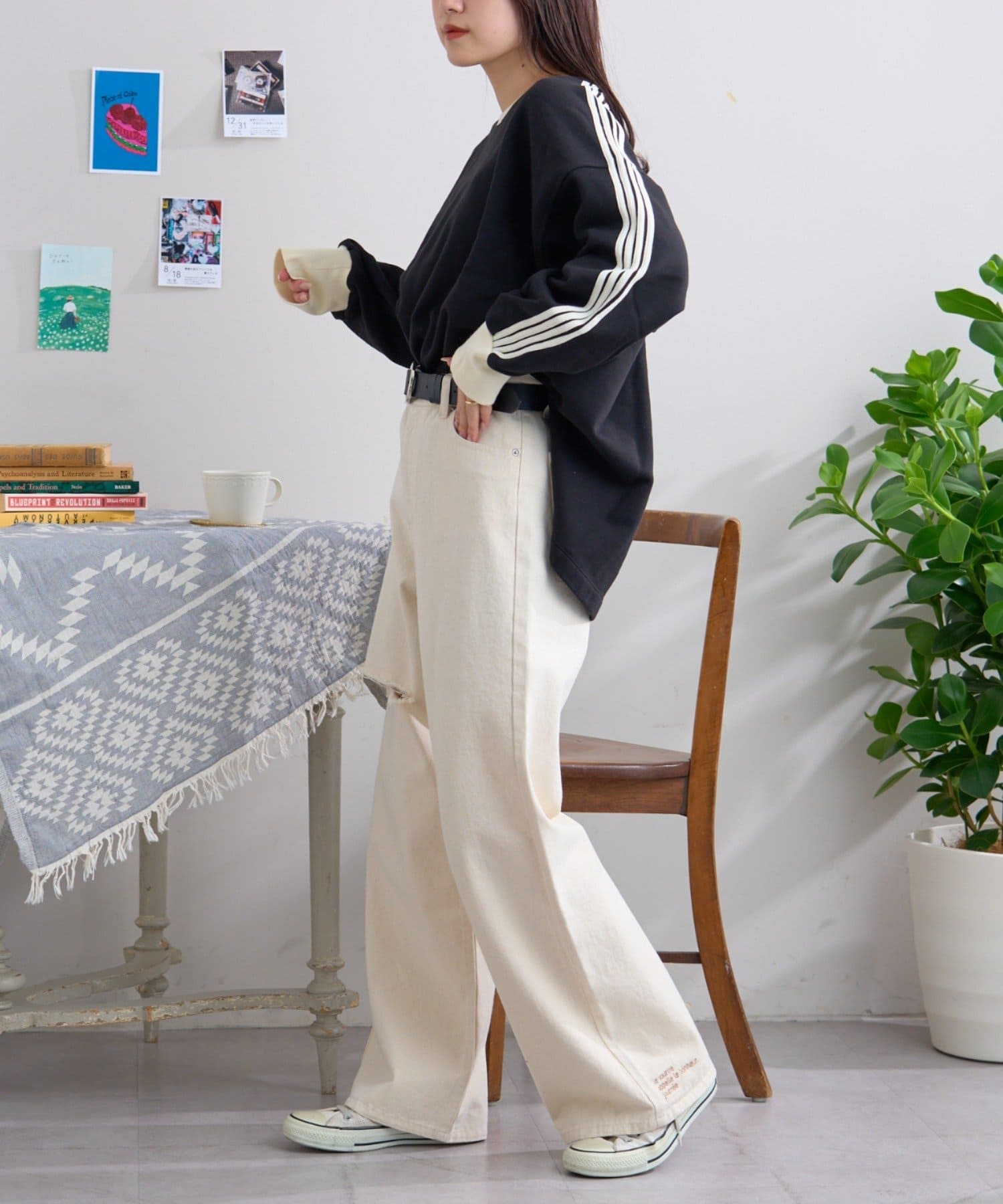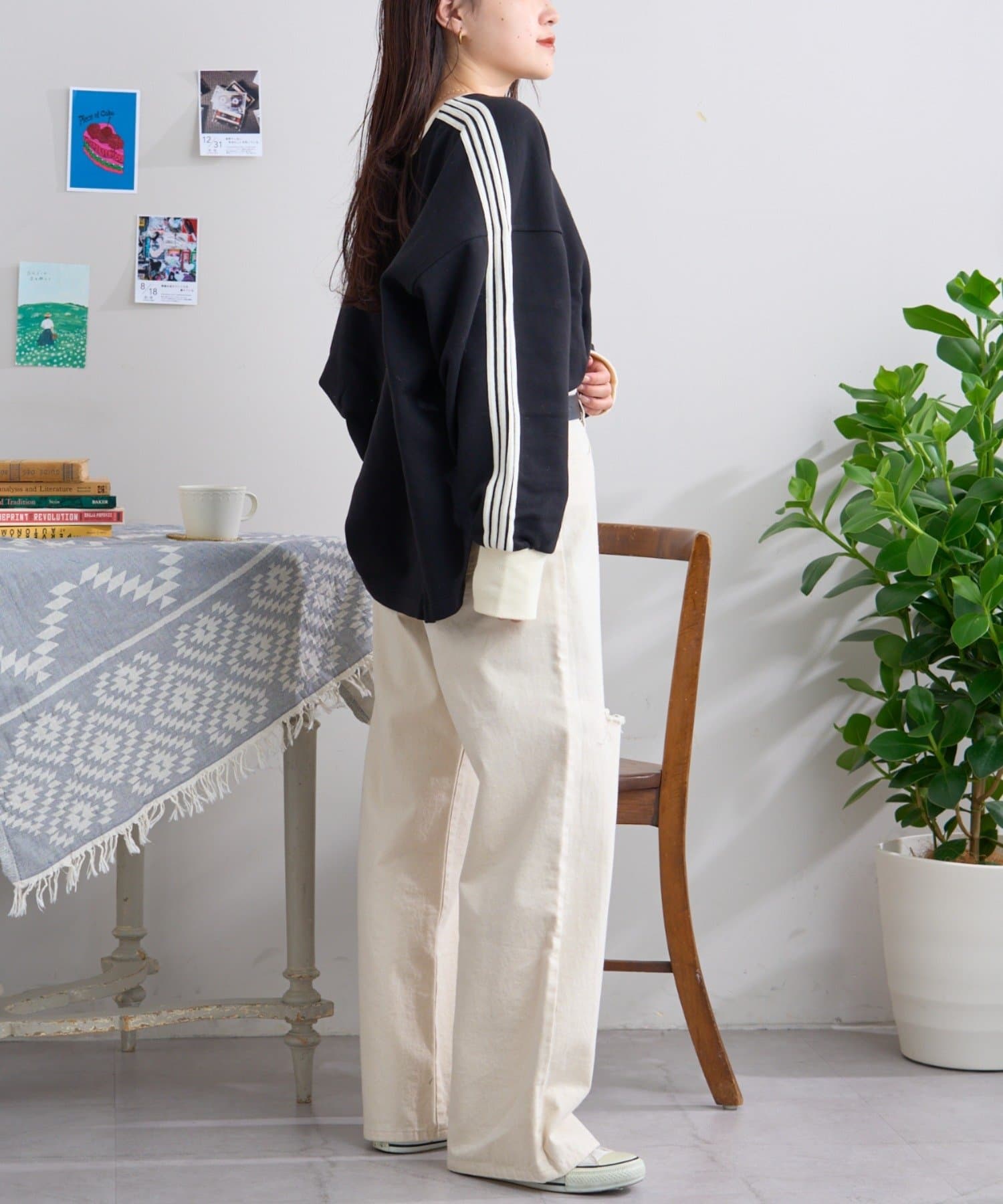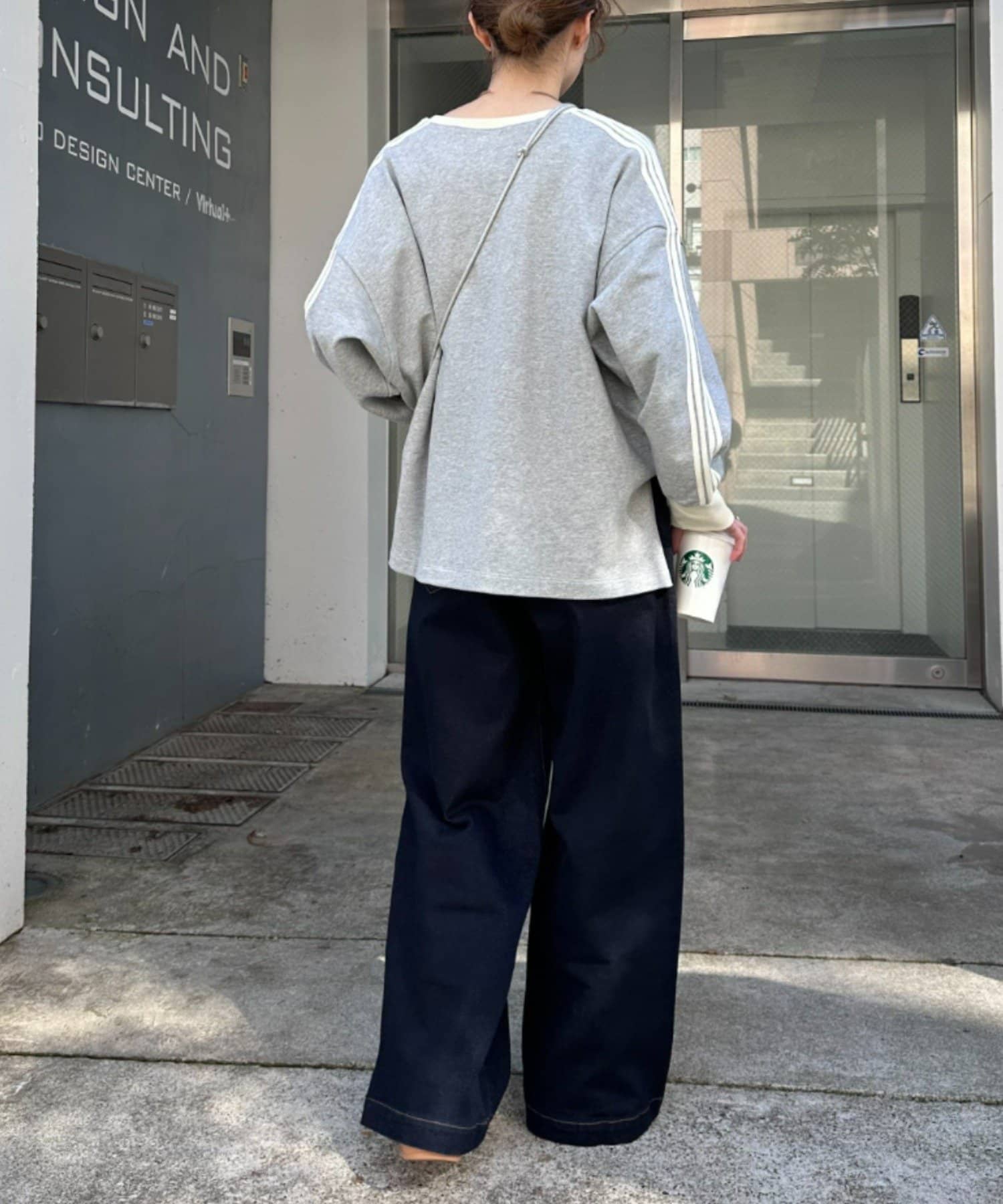 メンズライクな印象のワイドパンツやハーフパンツとも相性抜群です♩