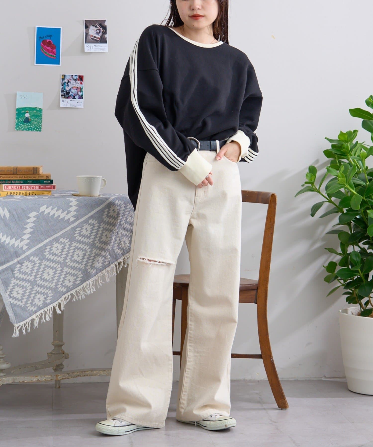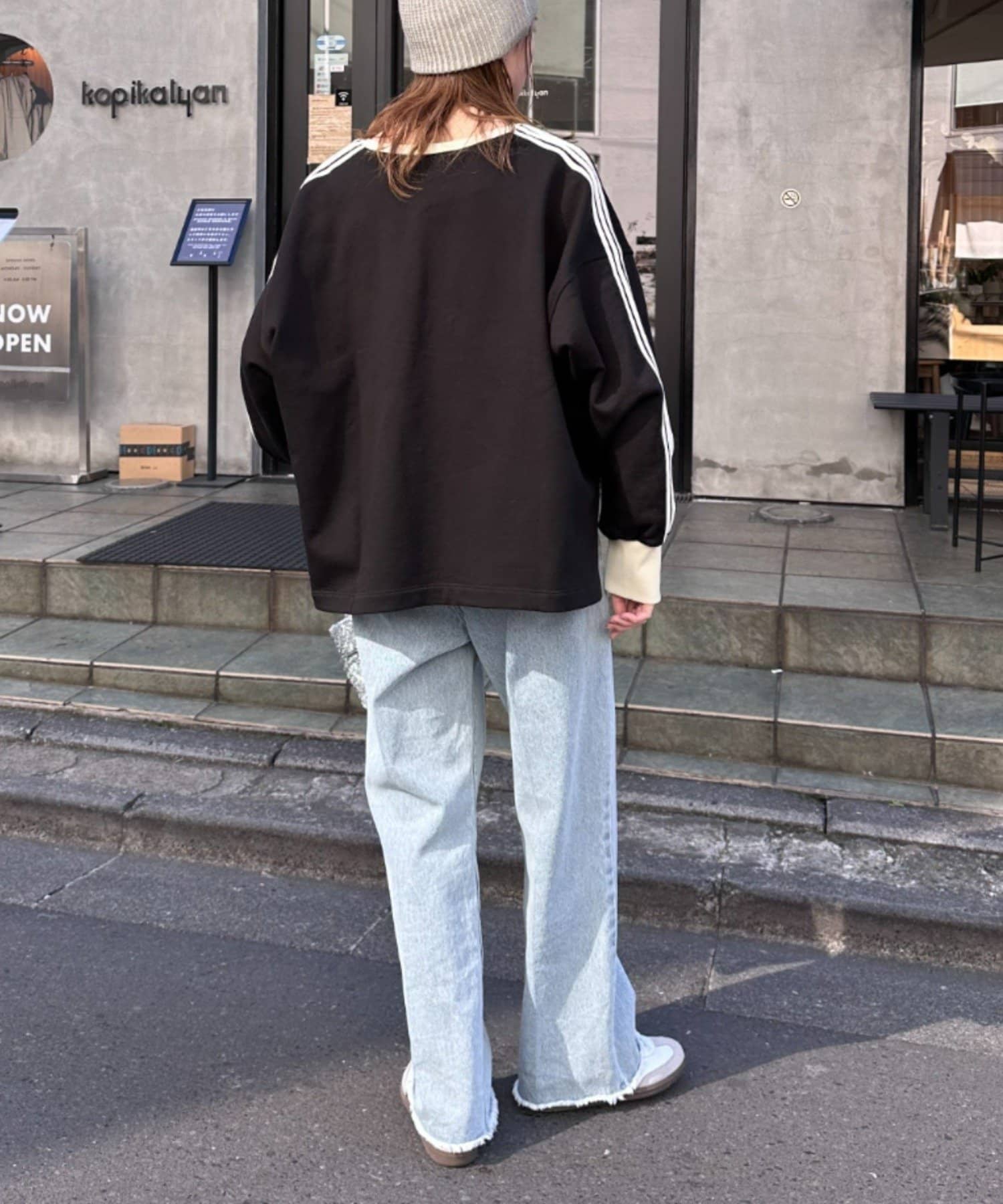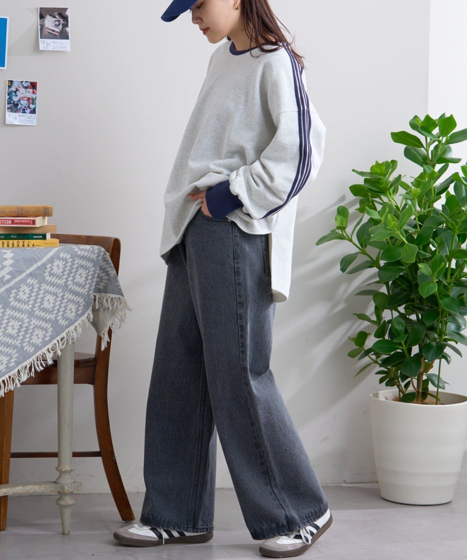 メンズライクな印象のワイドパンツやハーフパンツとも相性抜群です♩