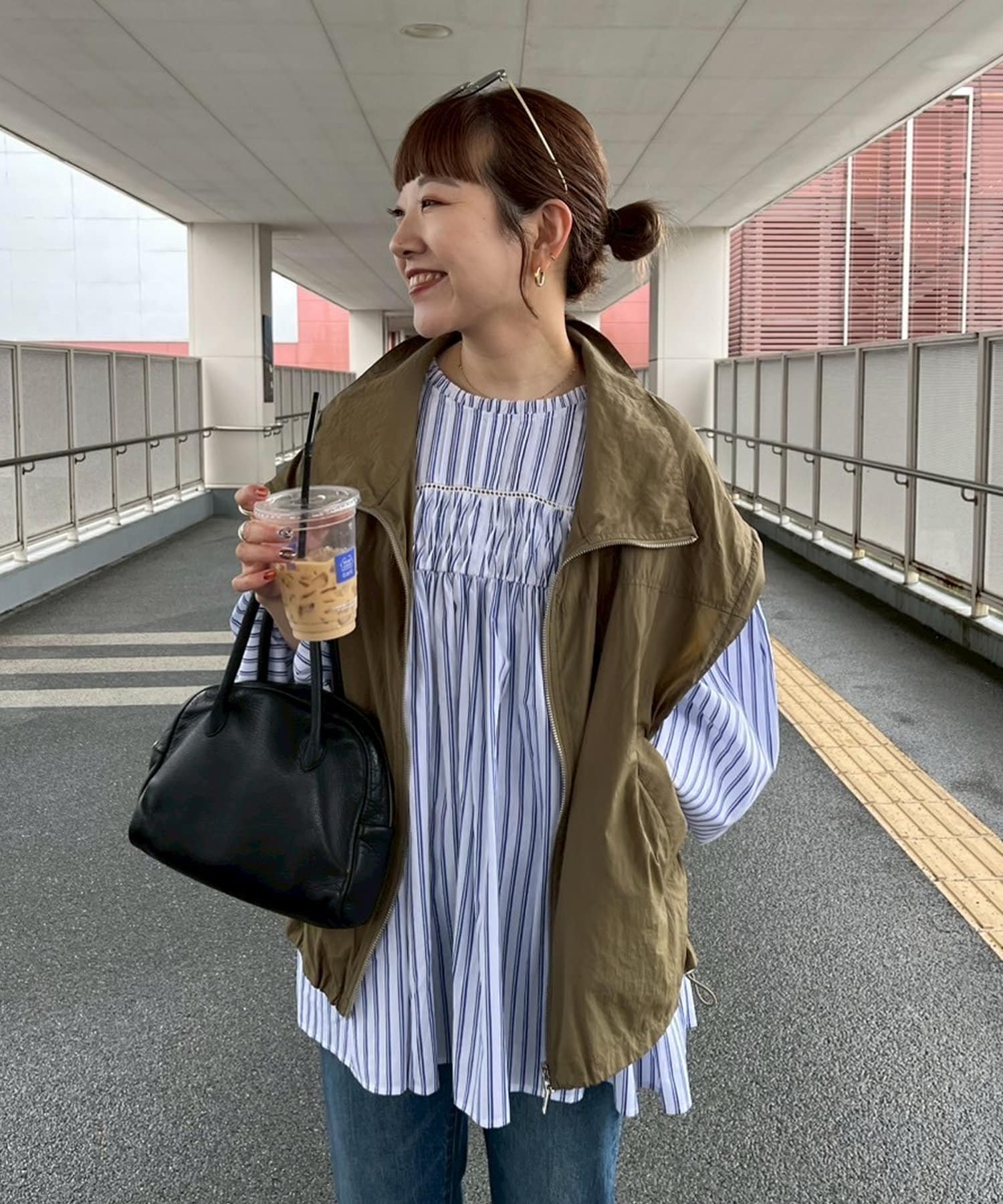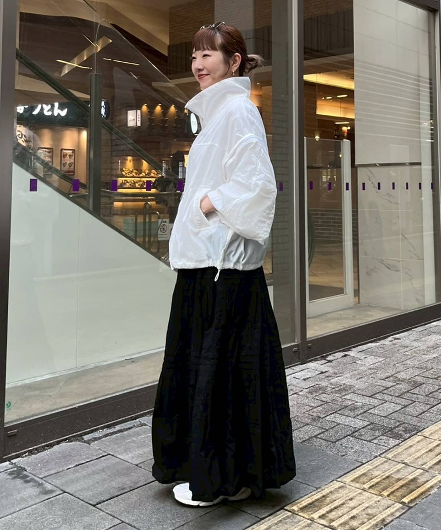 スタンドカラーが苦手な方でも、折り曲げれば襟っぽくも着られるデザインです◎