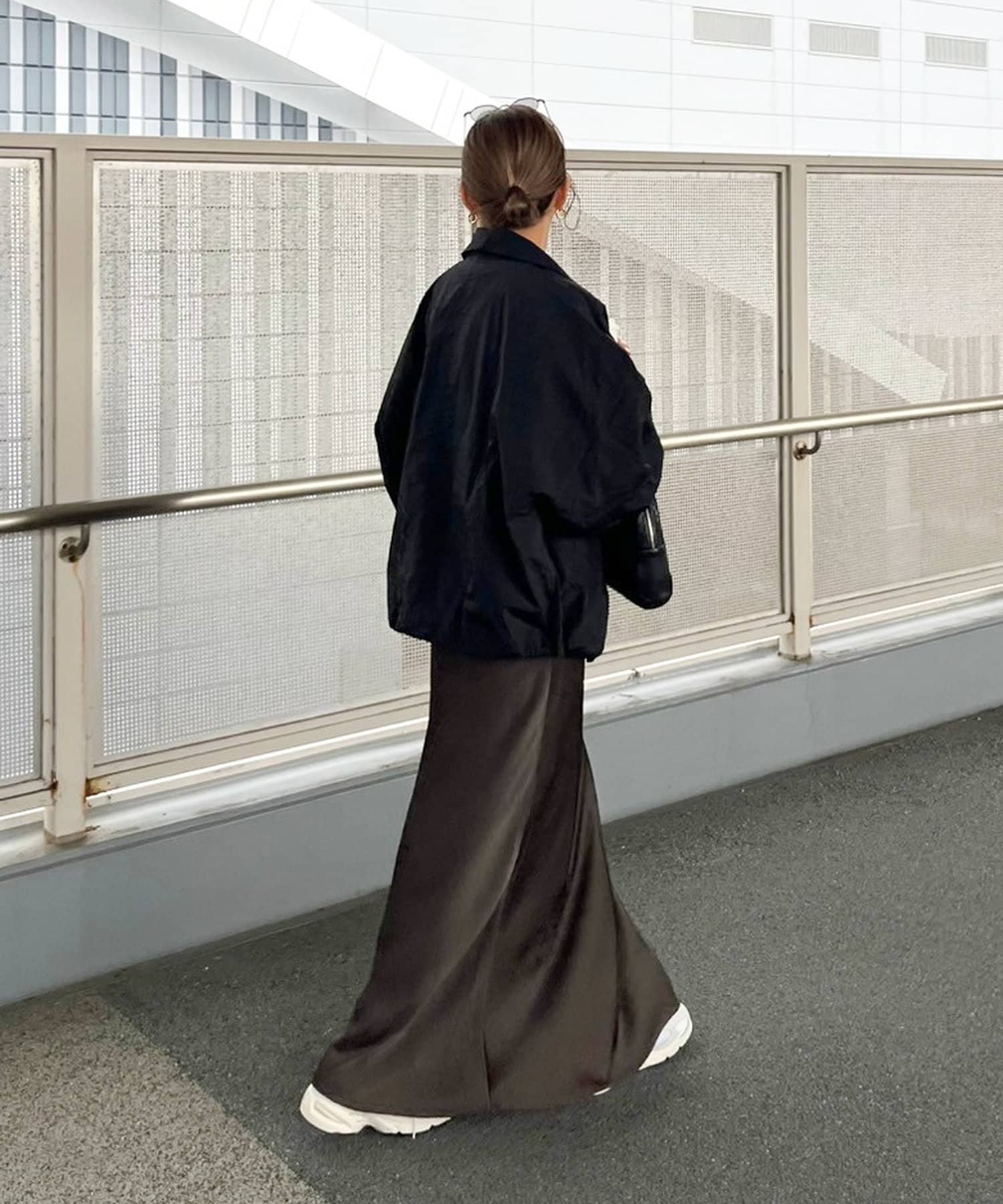 バックには縦ラインの切り替えを入れることで、後ろ姿もすっきりと見えが叶います。