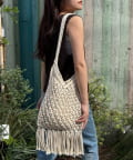 ざっくりと編まれたマクラメが涼しげな印象に。