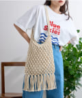 【GOOD HOLIDAY】カラビナ付きマクラメフリンジBAG