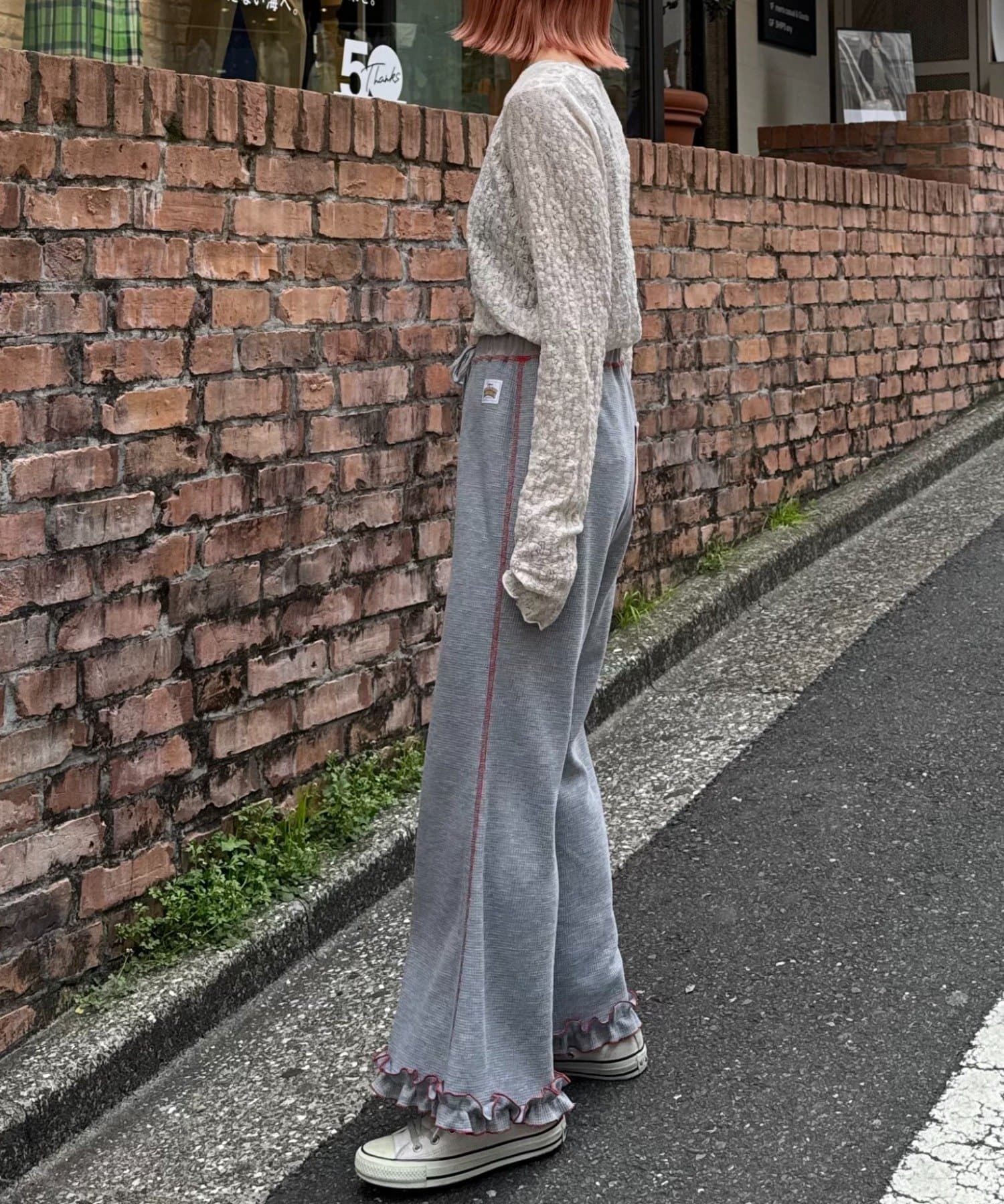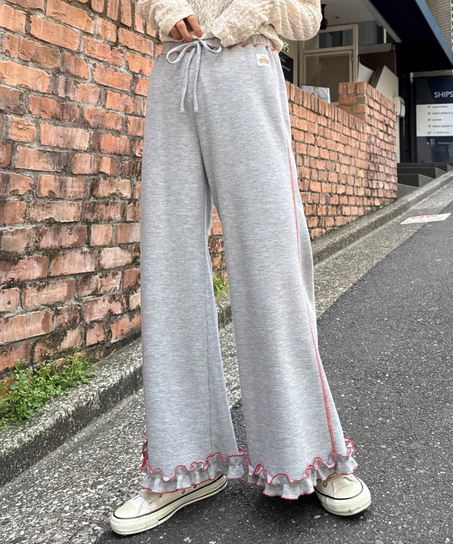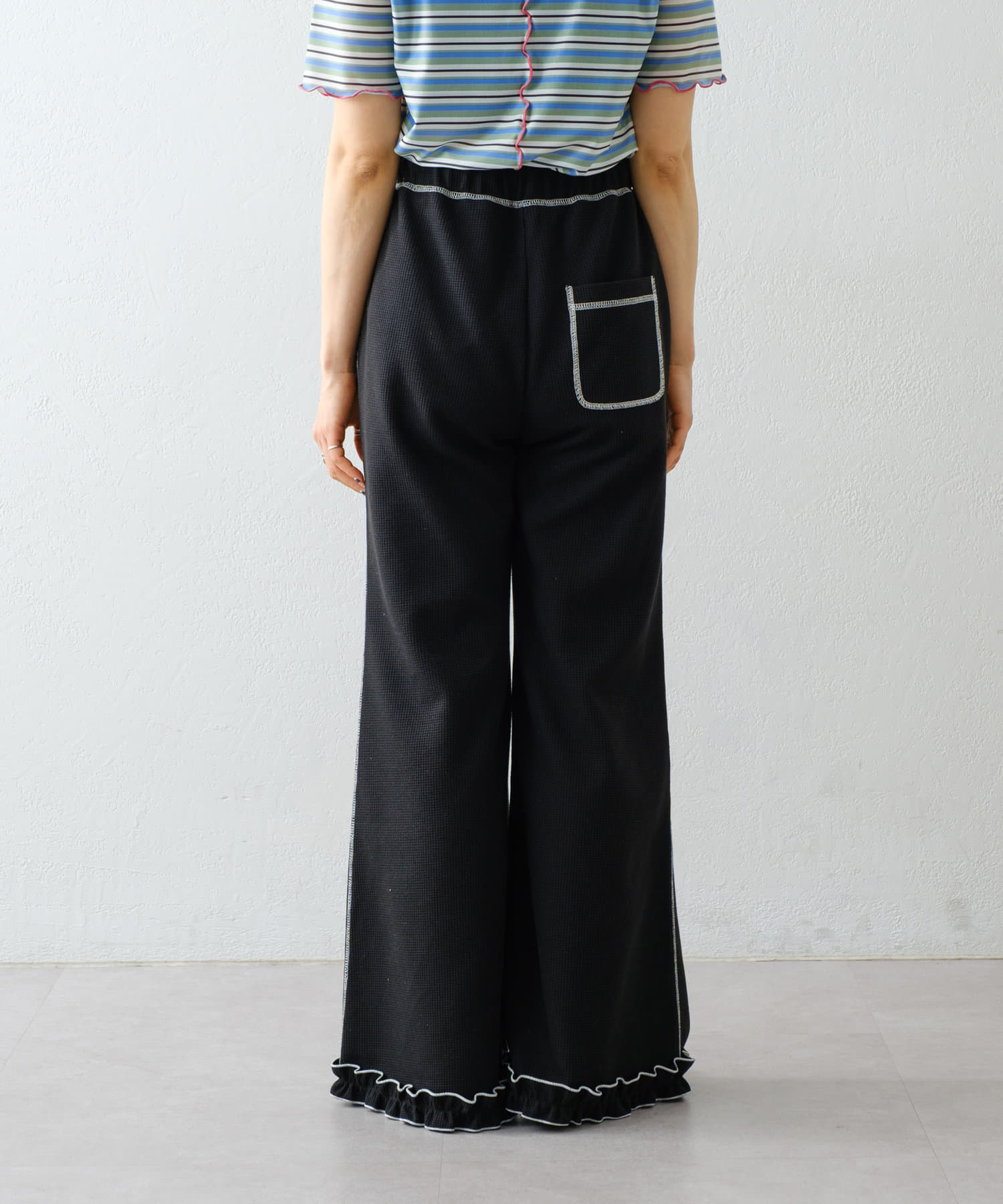 SSの定番、ワッフル生地にフリルをプラス!履き心地とデザイン性どちらも叶えるパンツができました♪