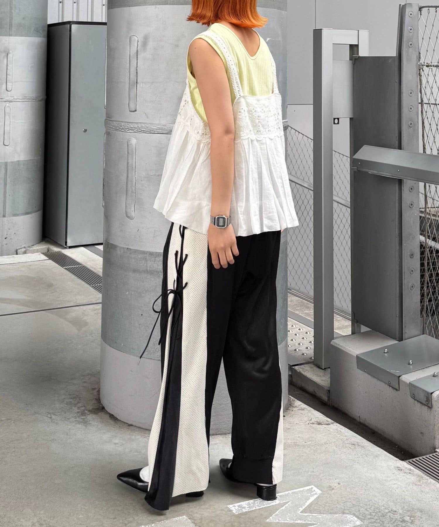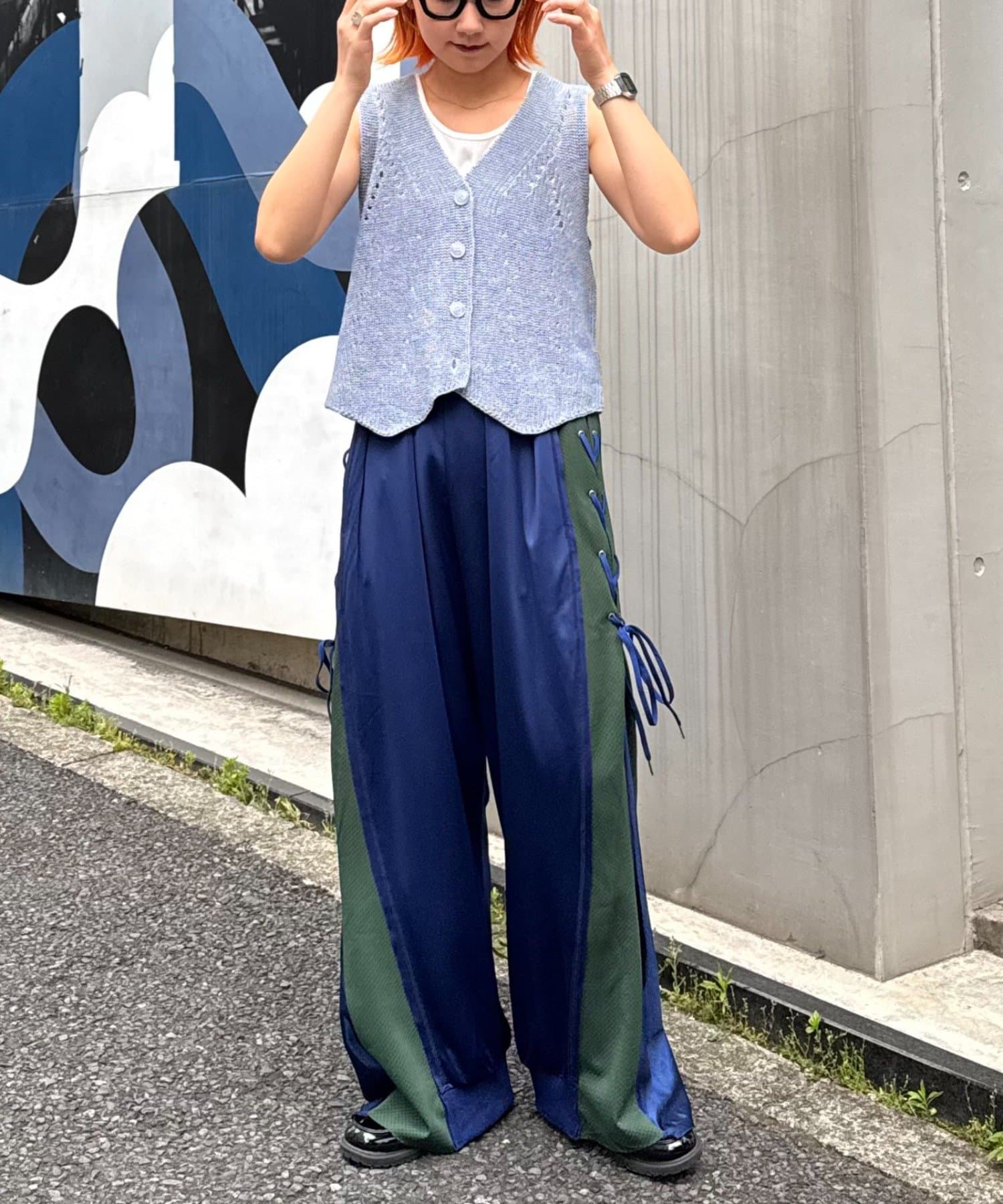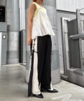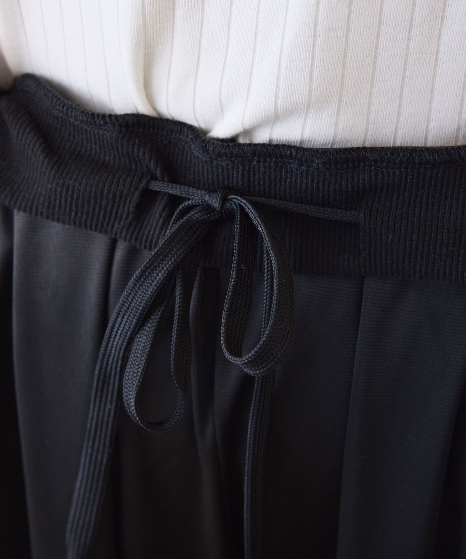 ウエストの紐は内側につけているのでタックインやショート丈のトップス合わせも様になります◎