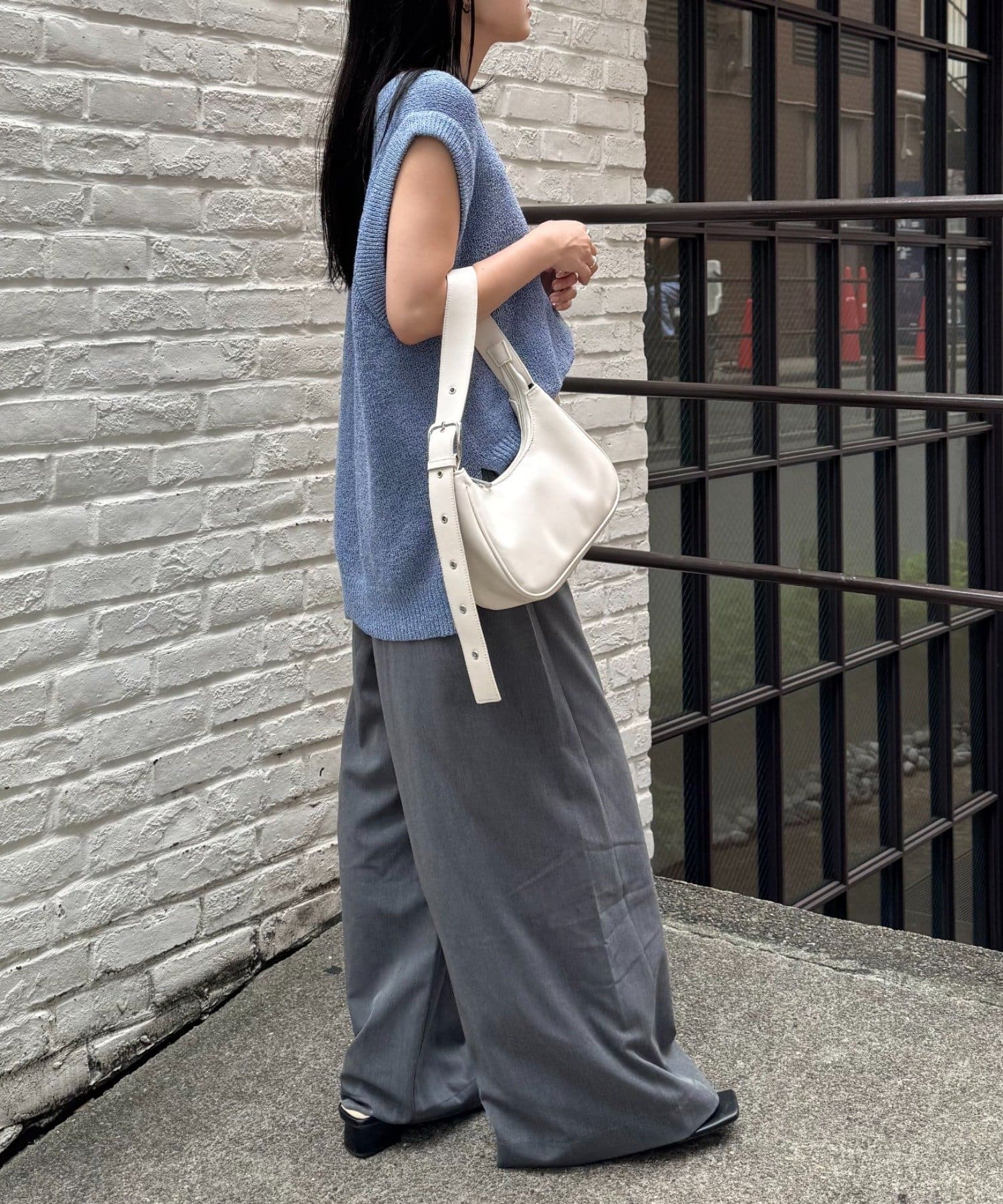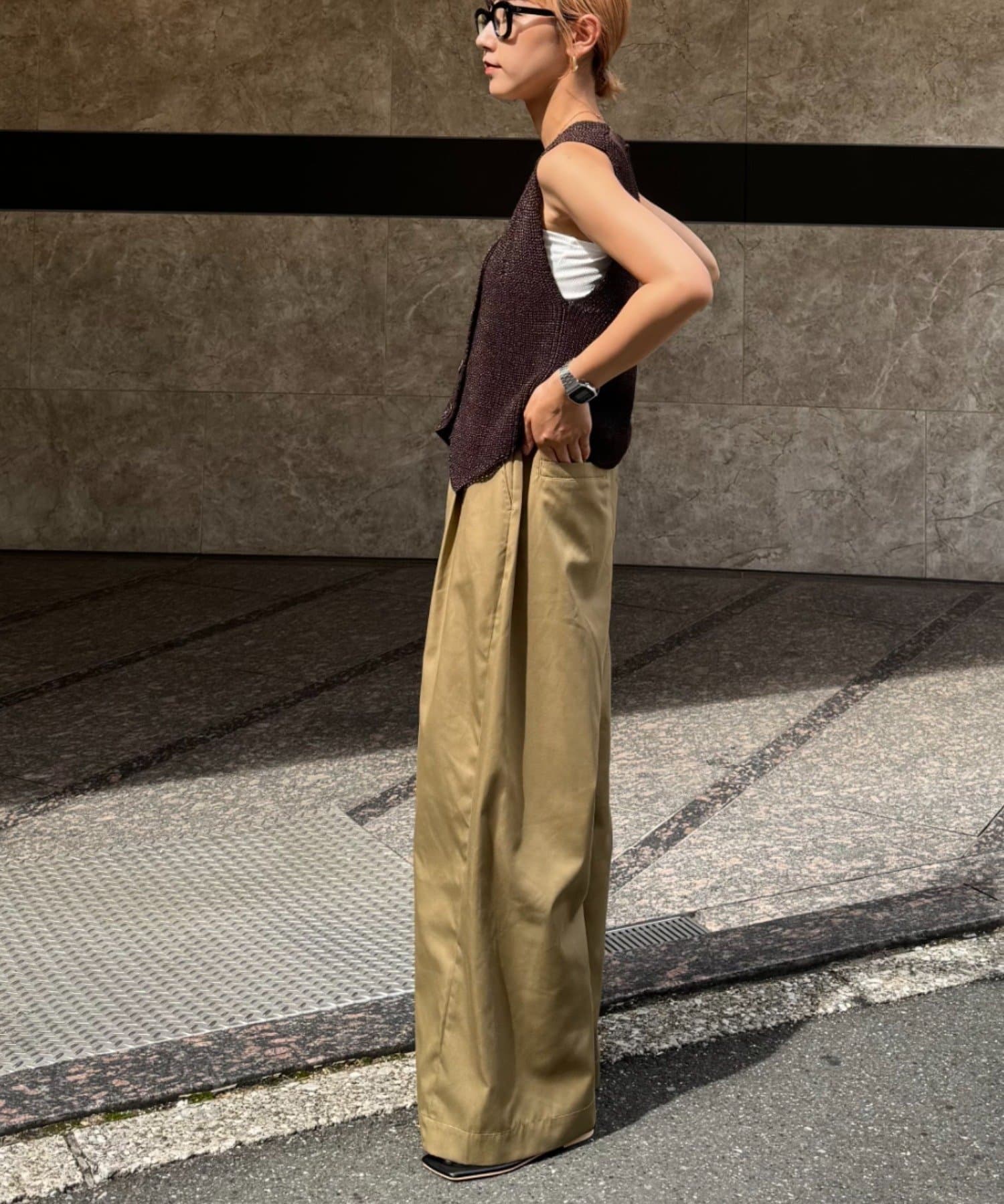 ワイドシルエットなので、少し丈が短いトップスとも相性抜群です◎