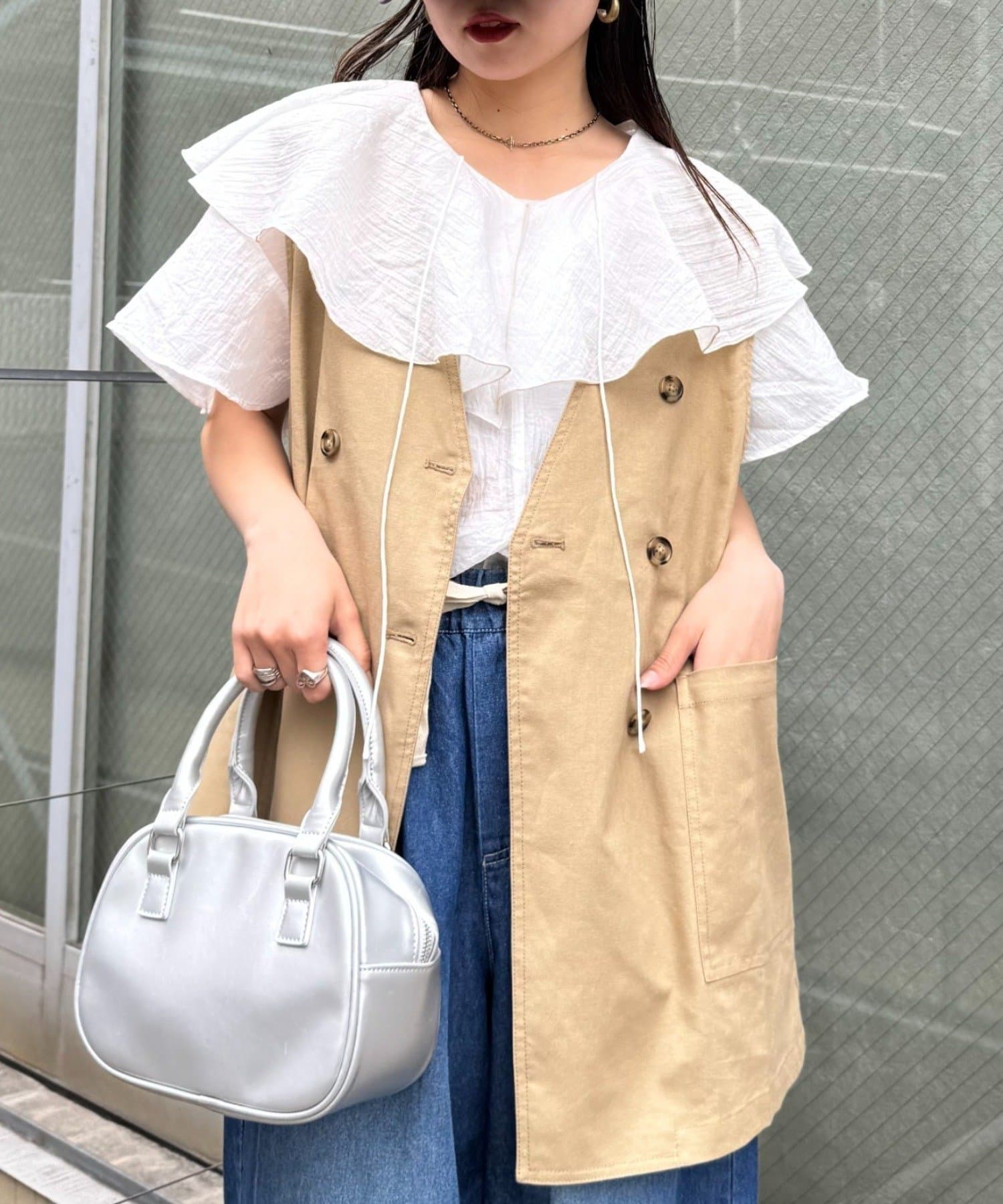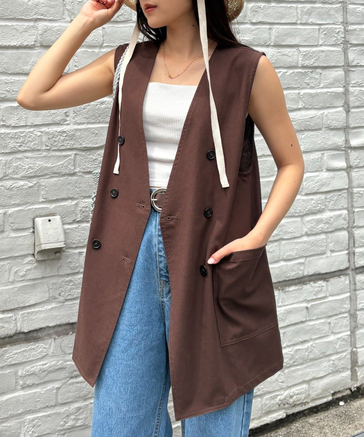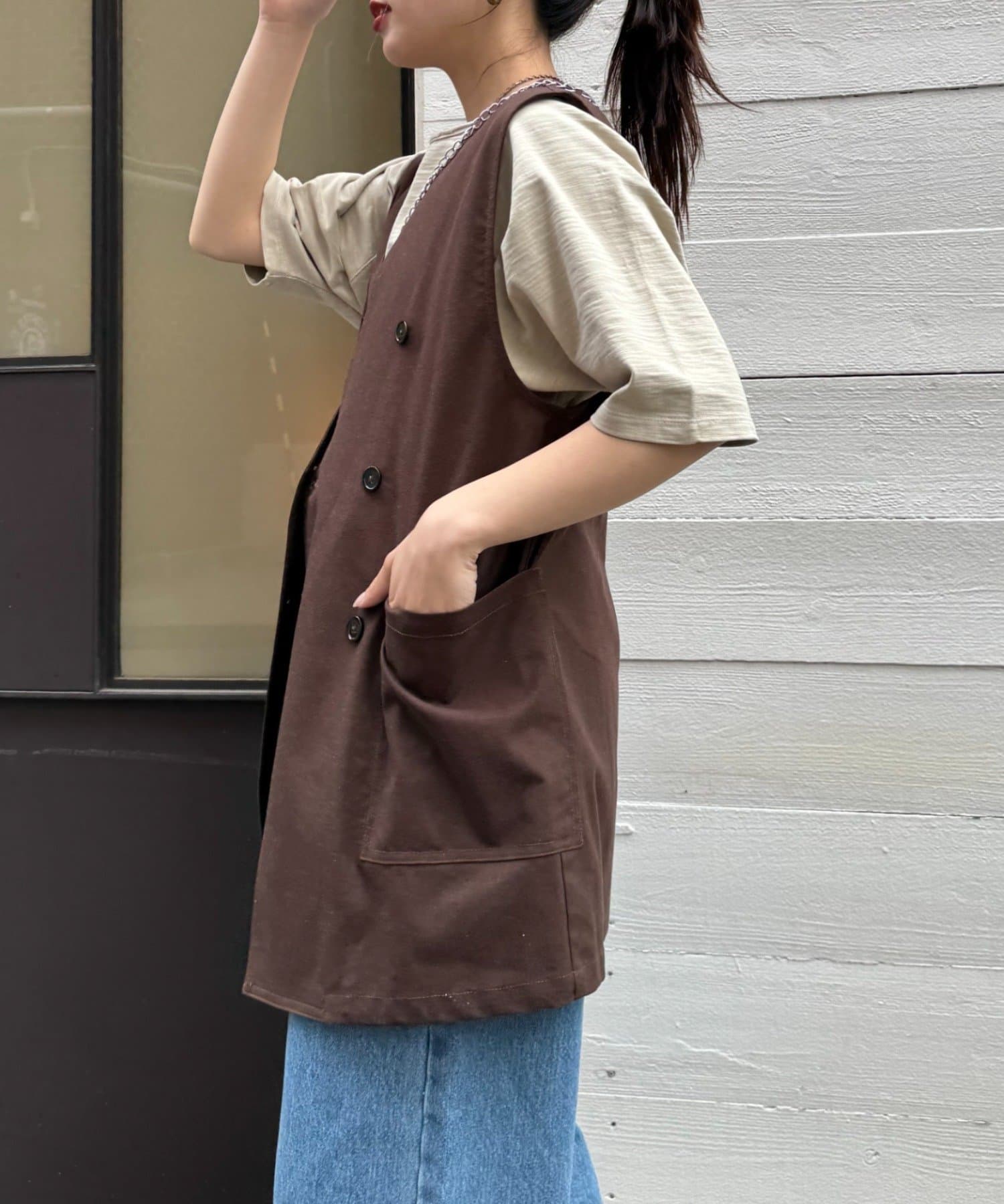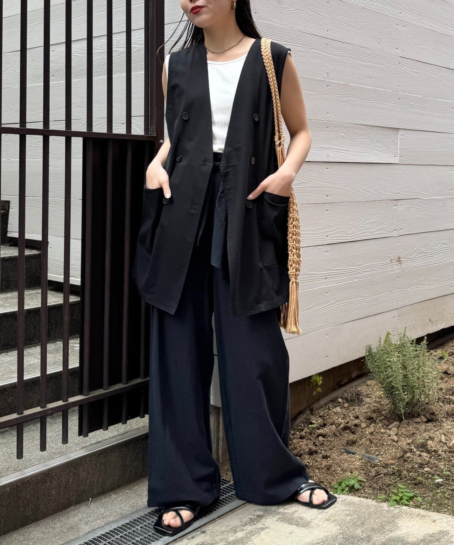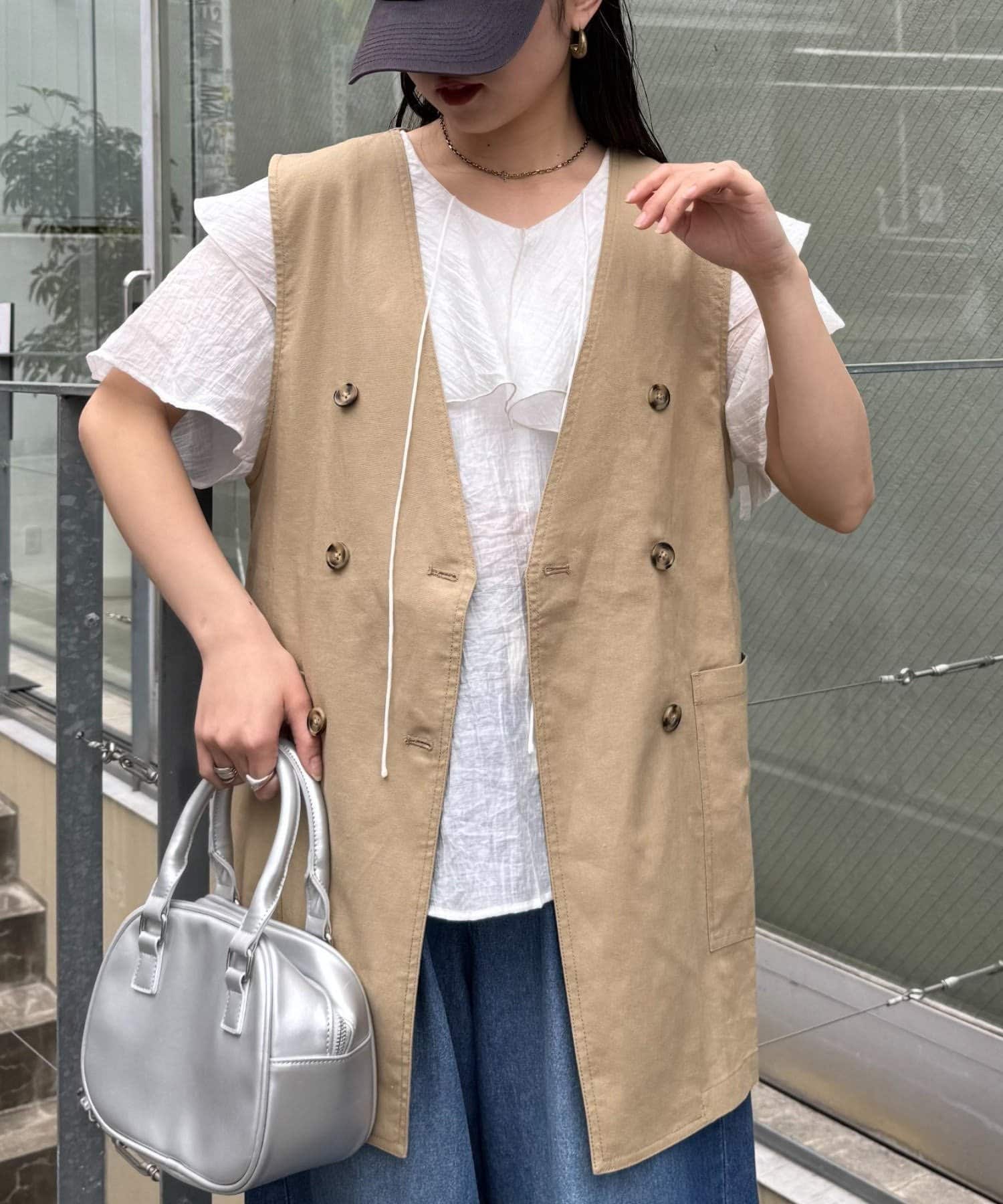程よくハリ感があり、きれいめカジュアルを演出してくれるジレベスト。