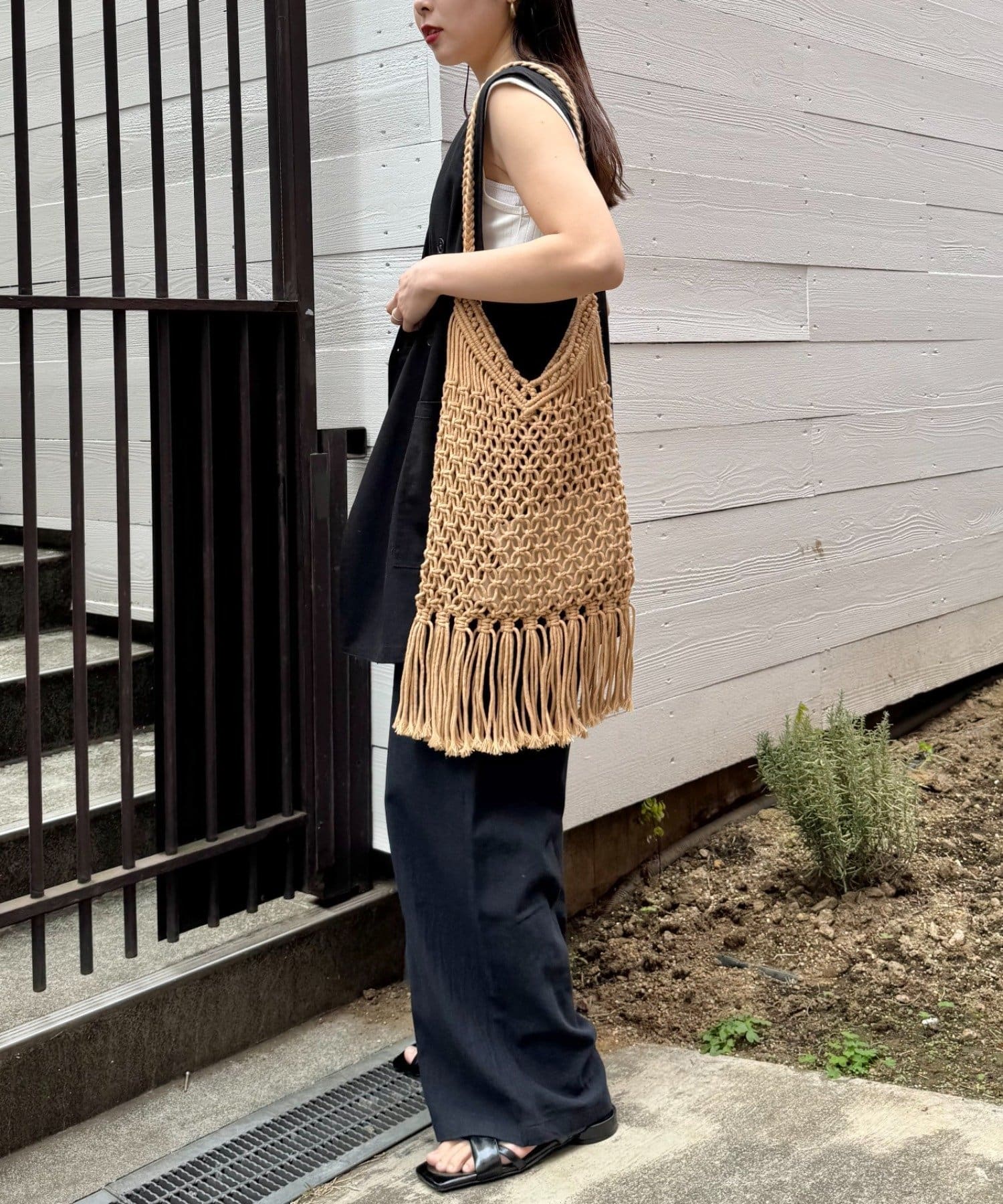 コーデが重くなりそうなブラックやブラウンも、リネン素材で涼し気に着用できます♩