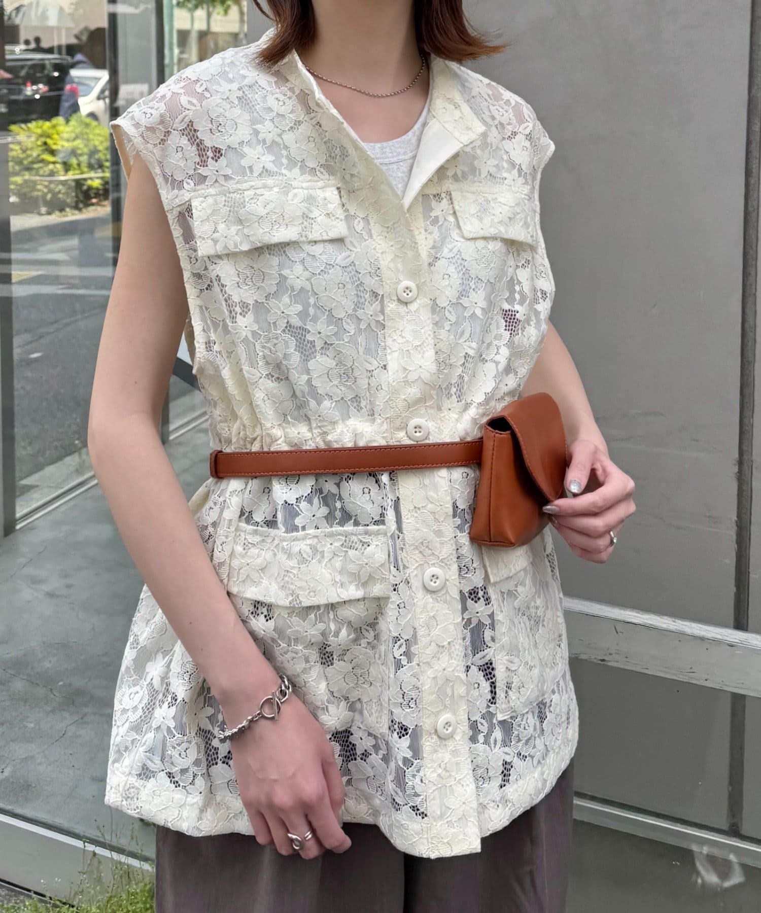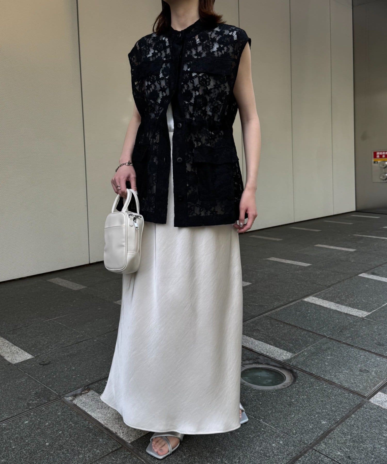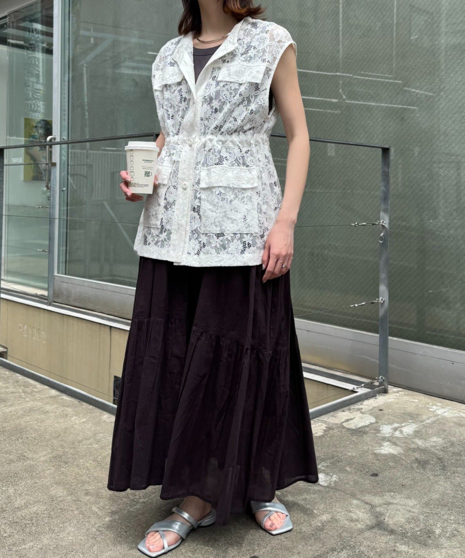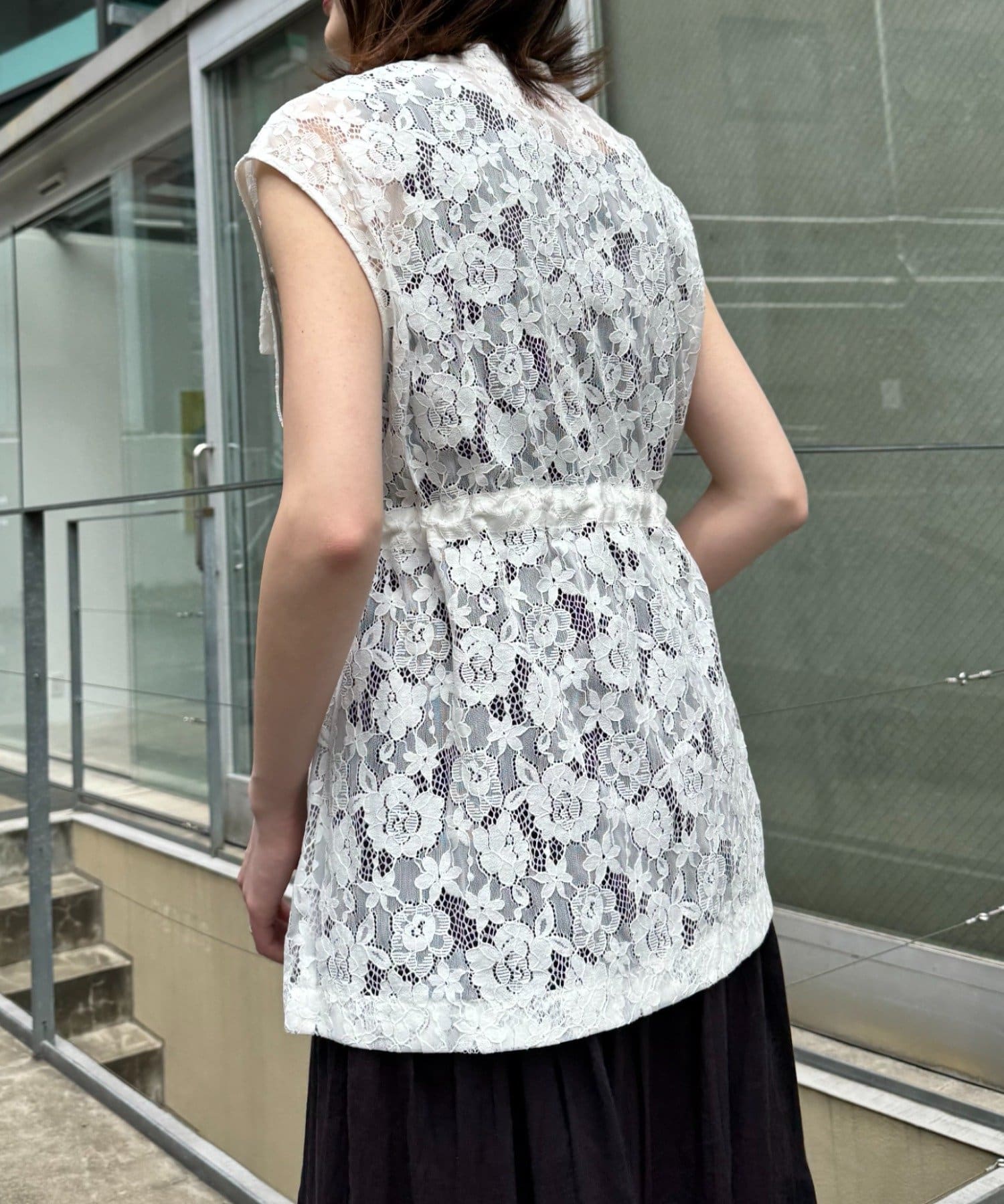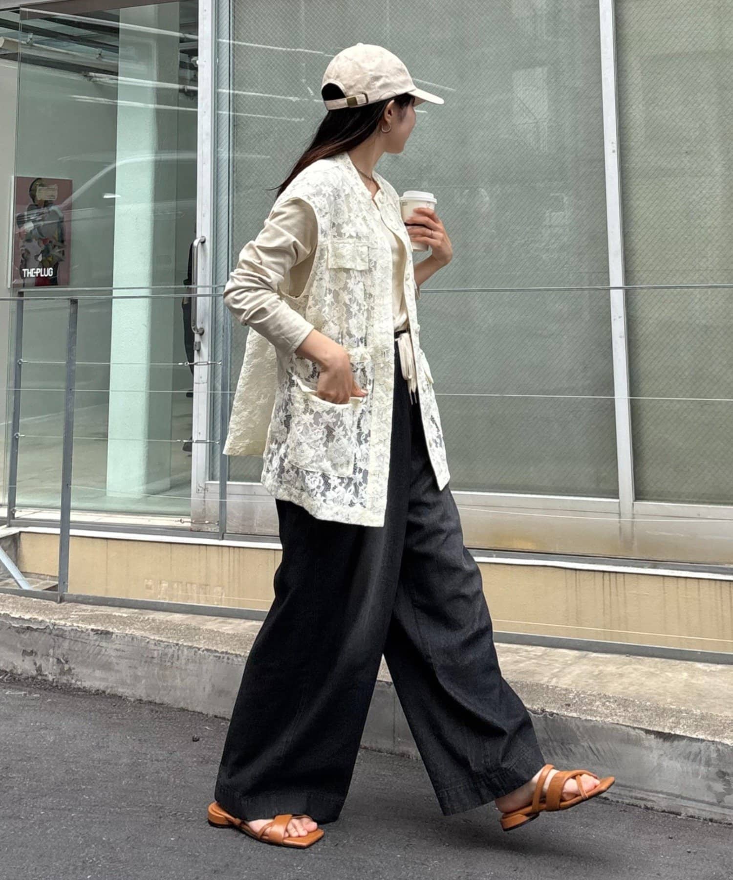 メンズライクになりがちな大きめベストを、レースで女性らしく仕上げました!