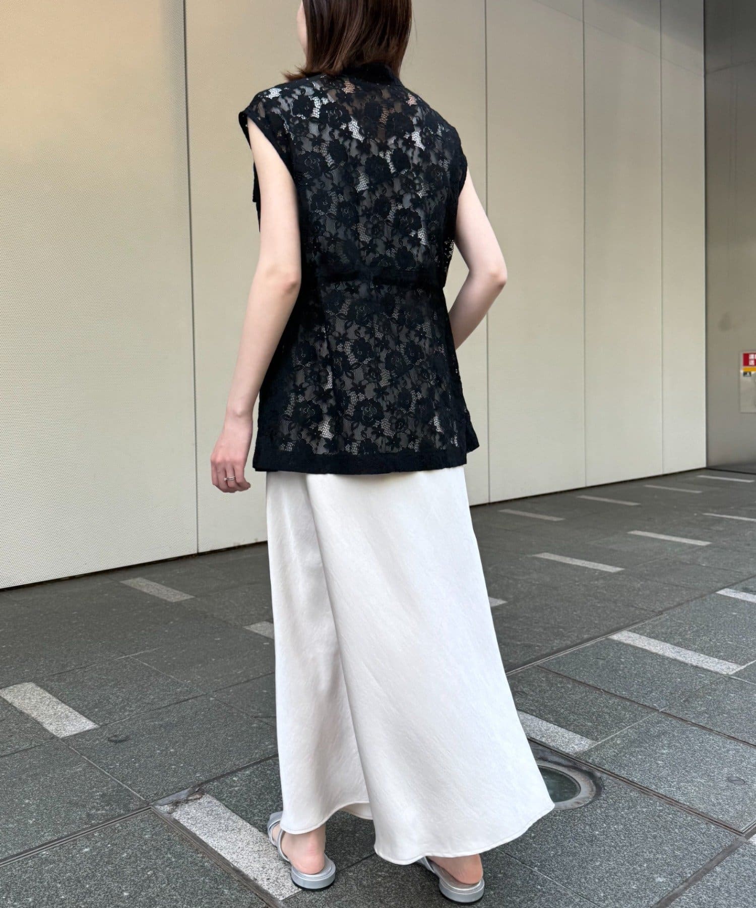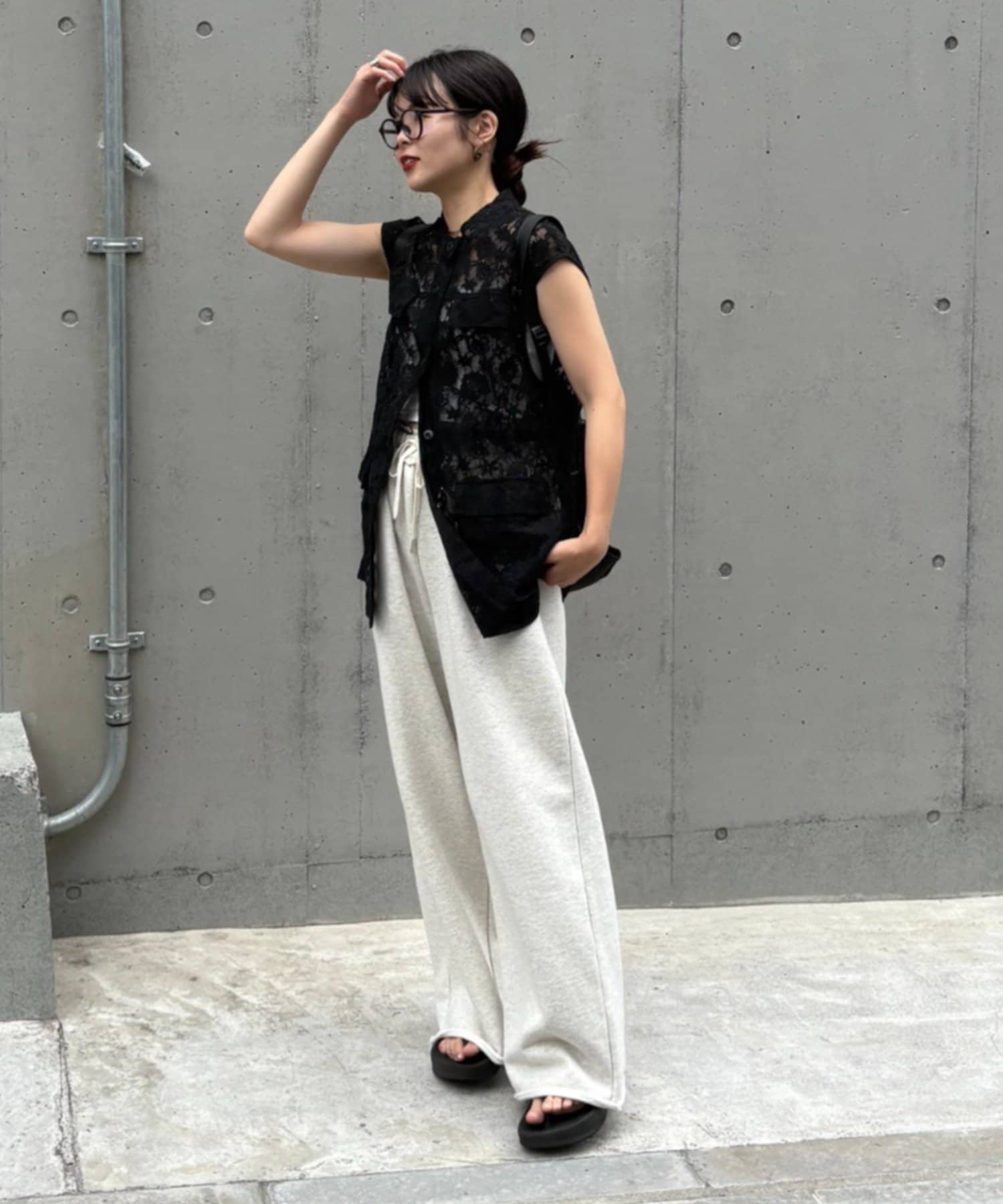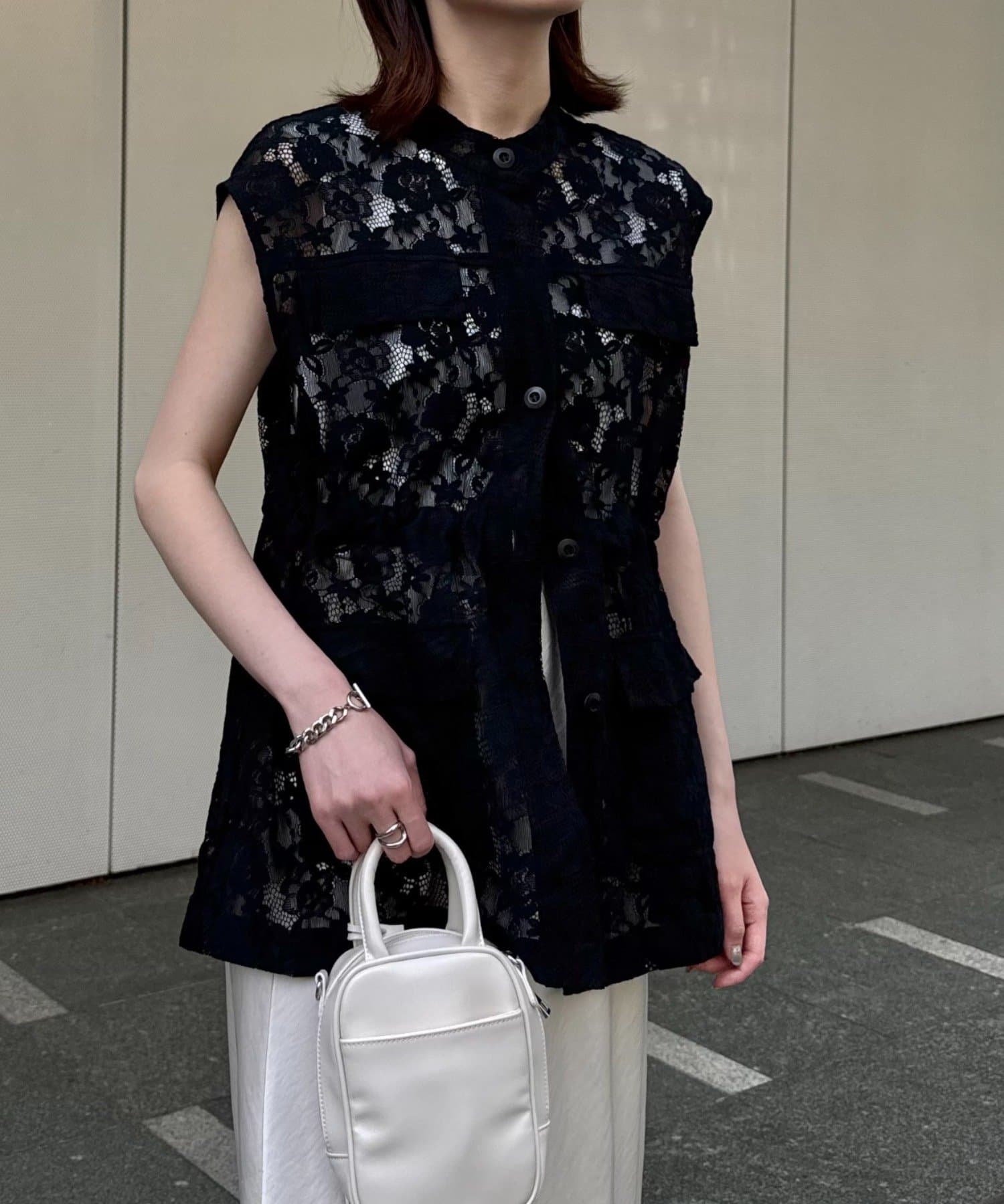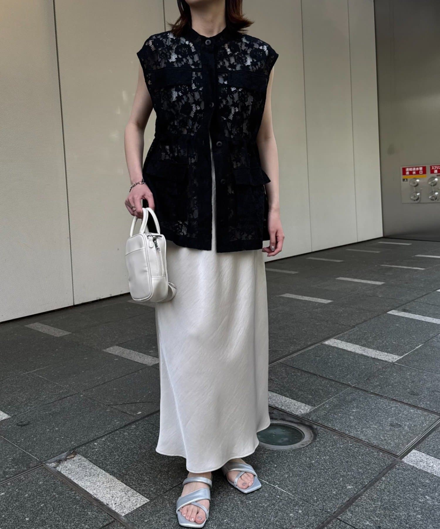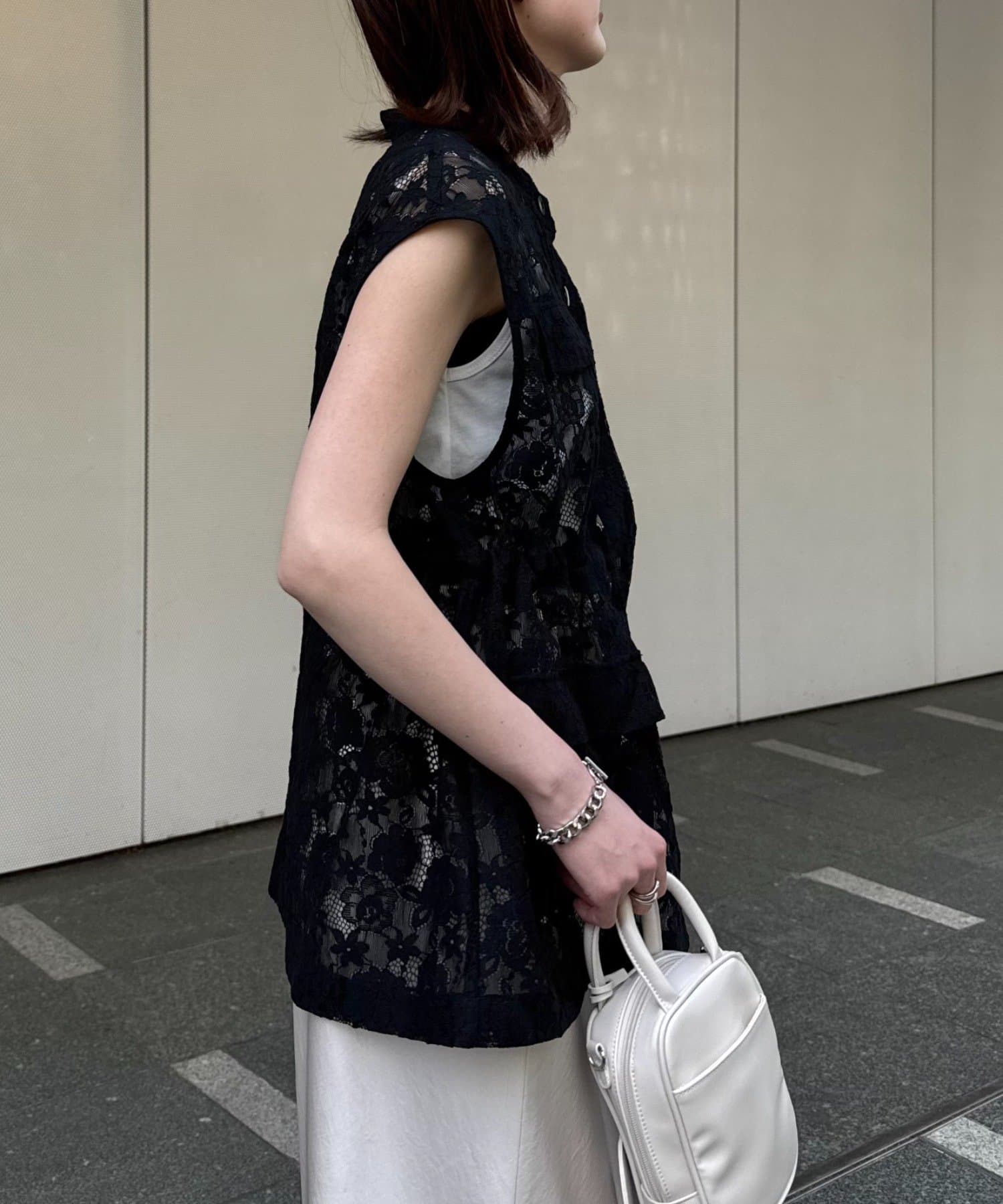 メンズライクになりがちな大きめベストを、レースで女性らしく仕上げました!