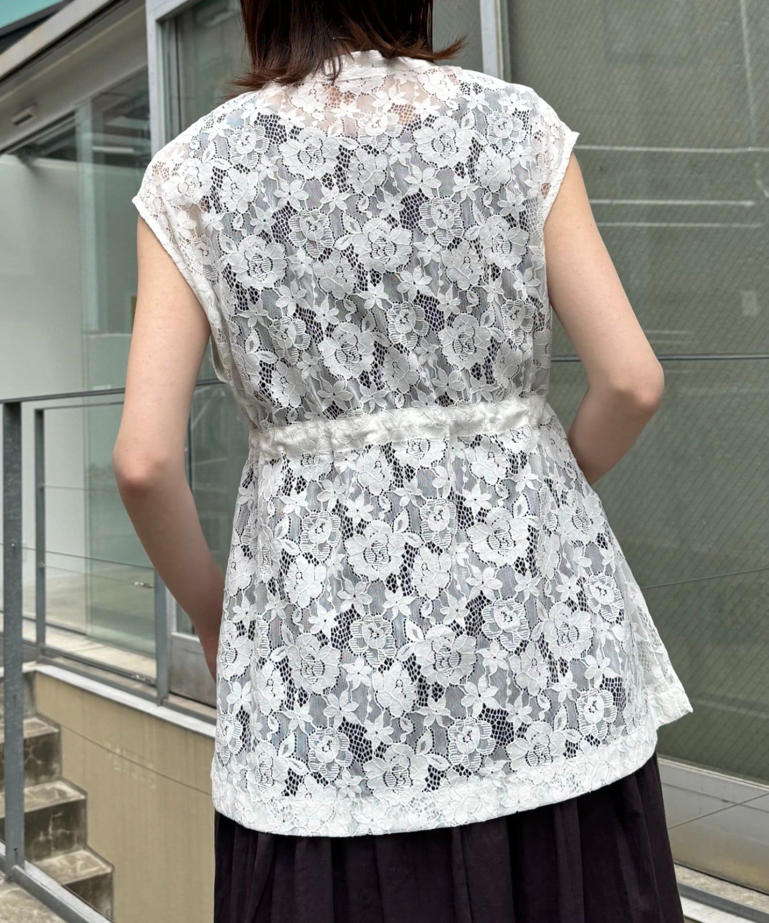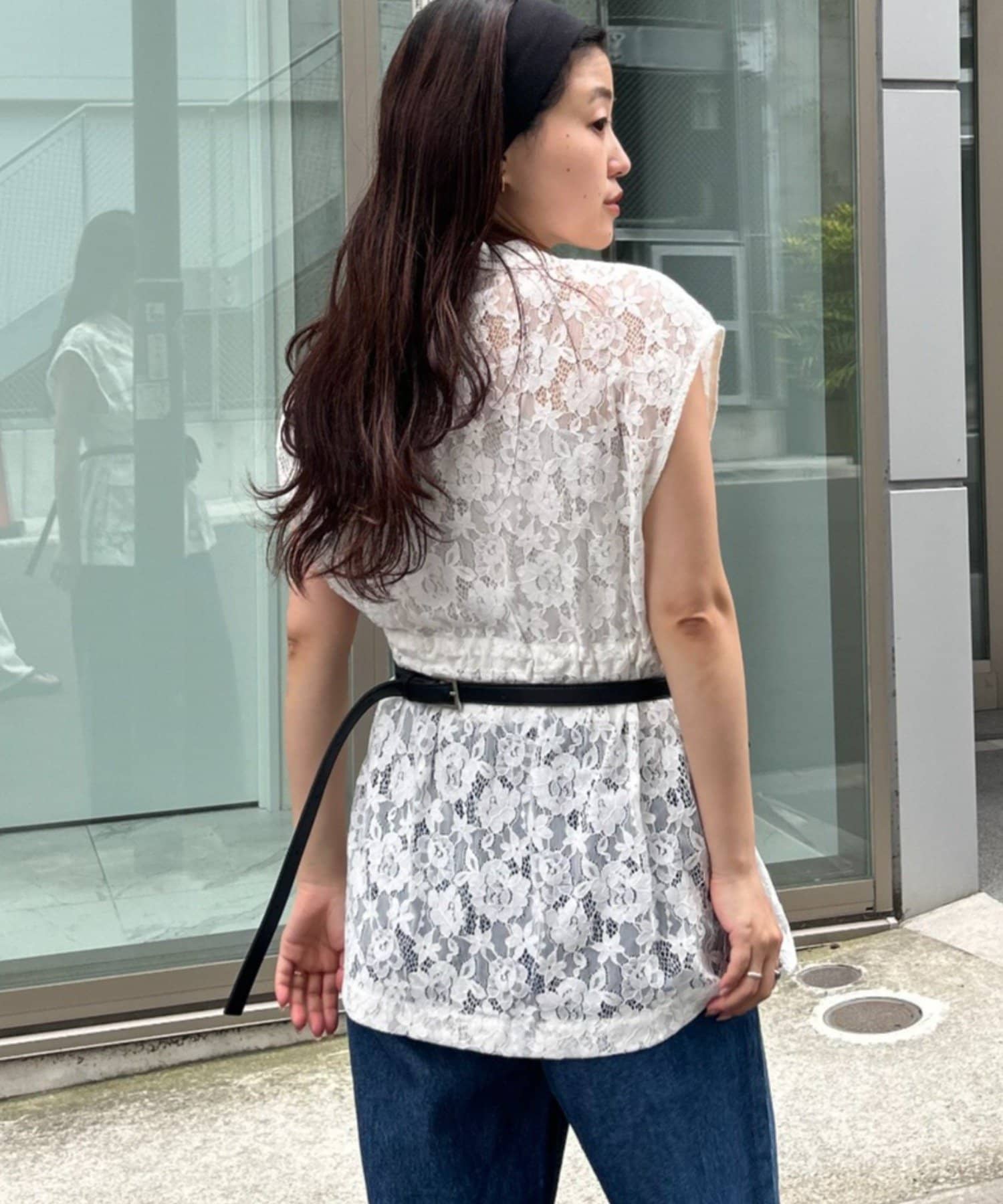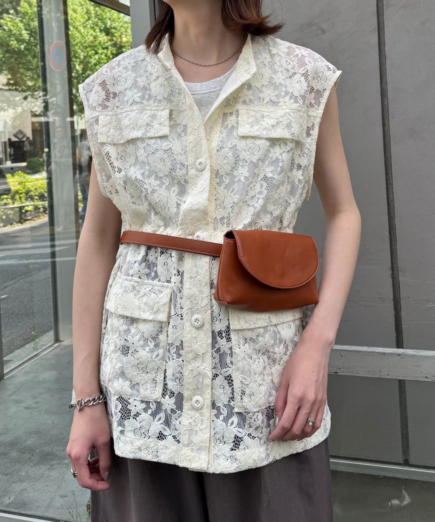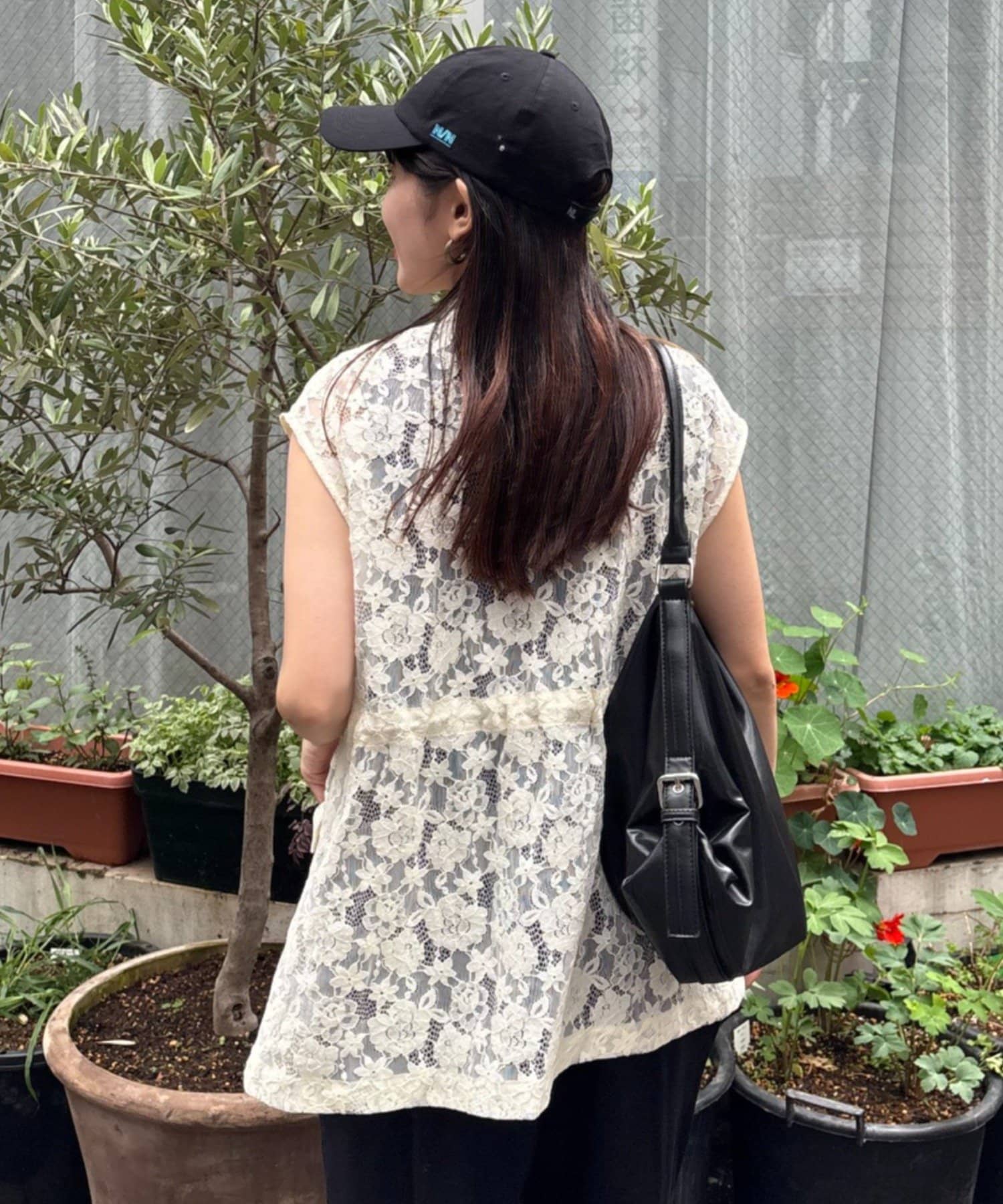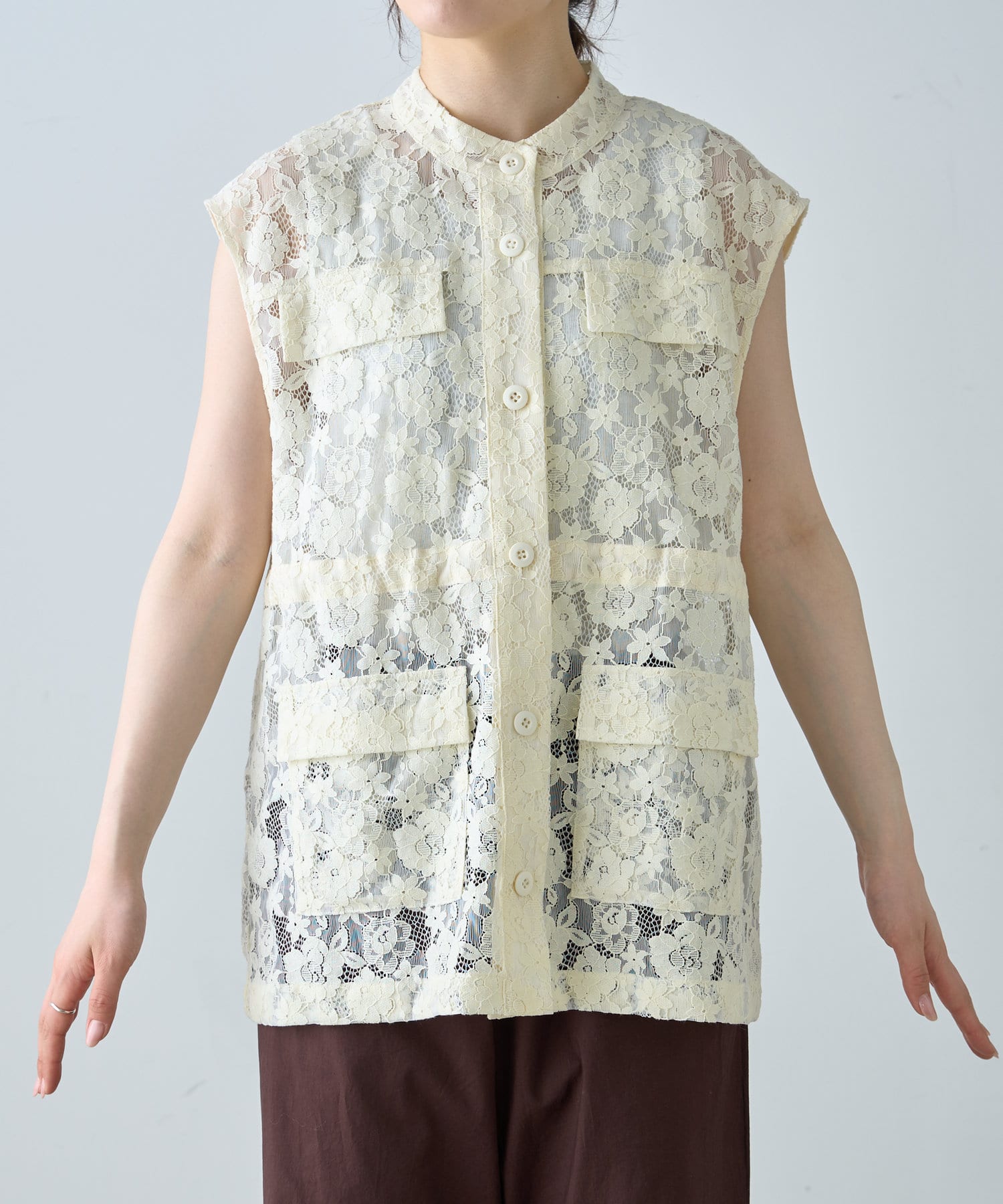 メンズライクになりがちな大きめベストを、レースで女性らしく仕上げました!