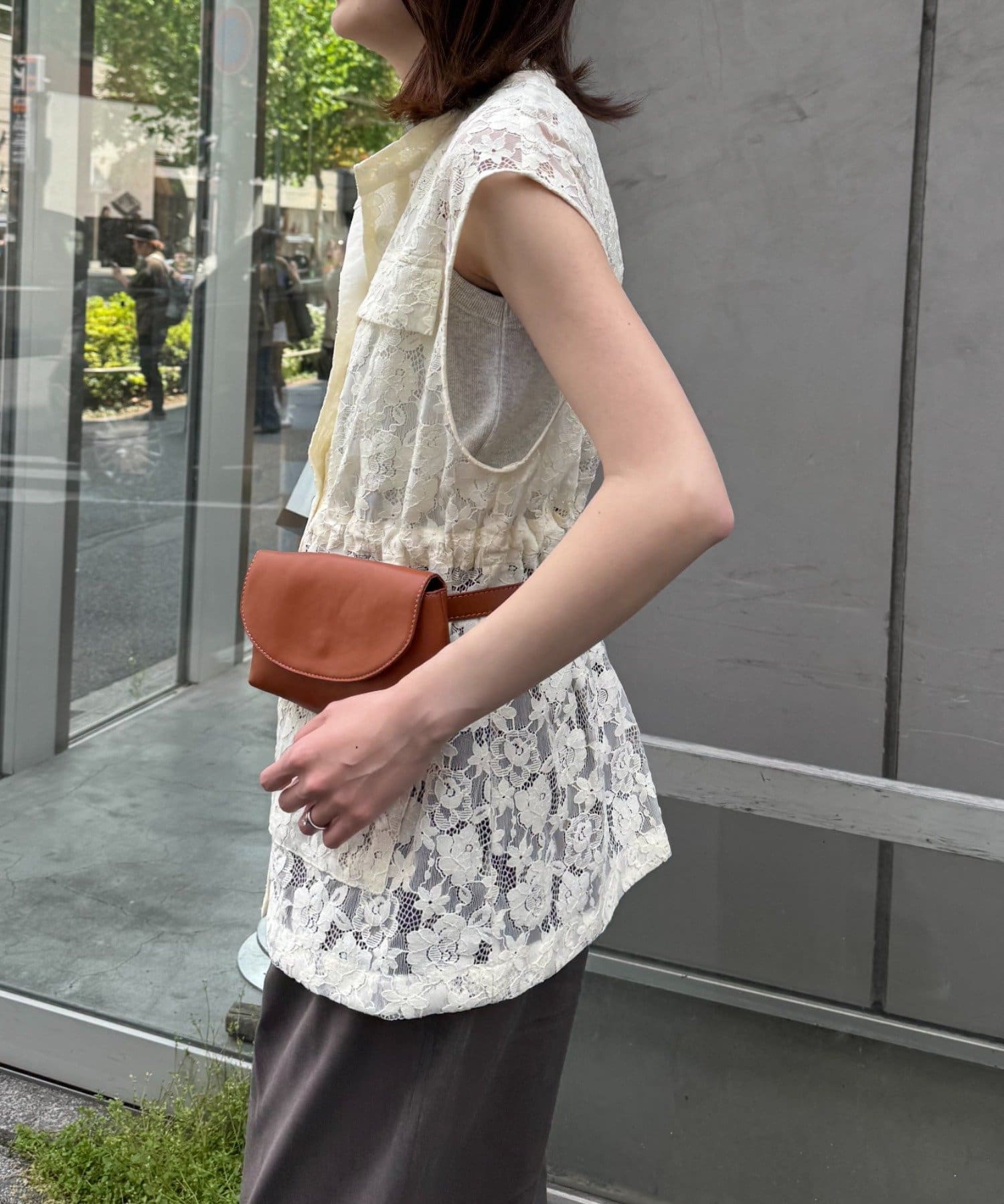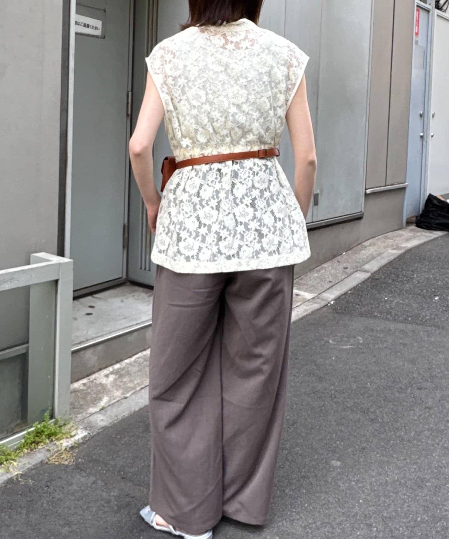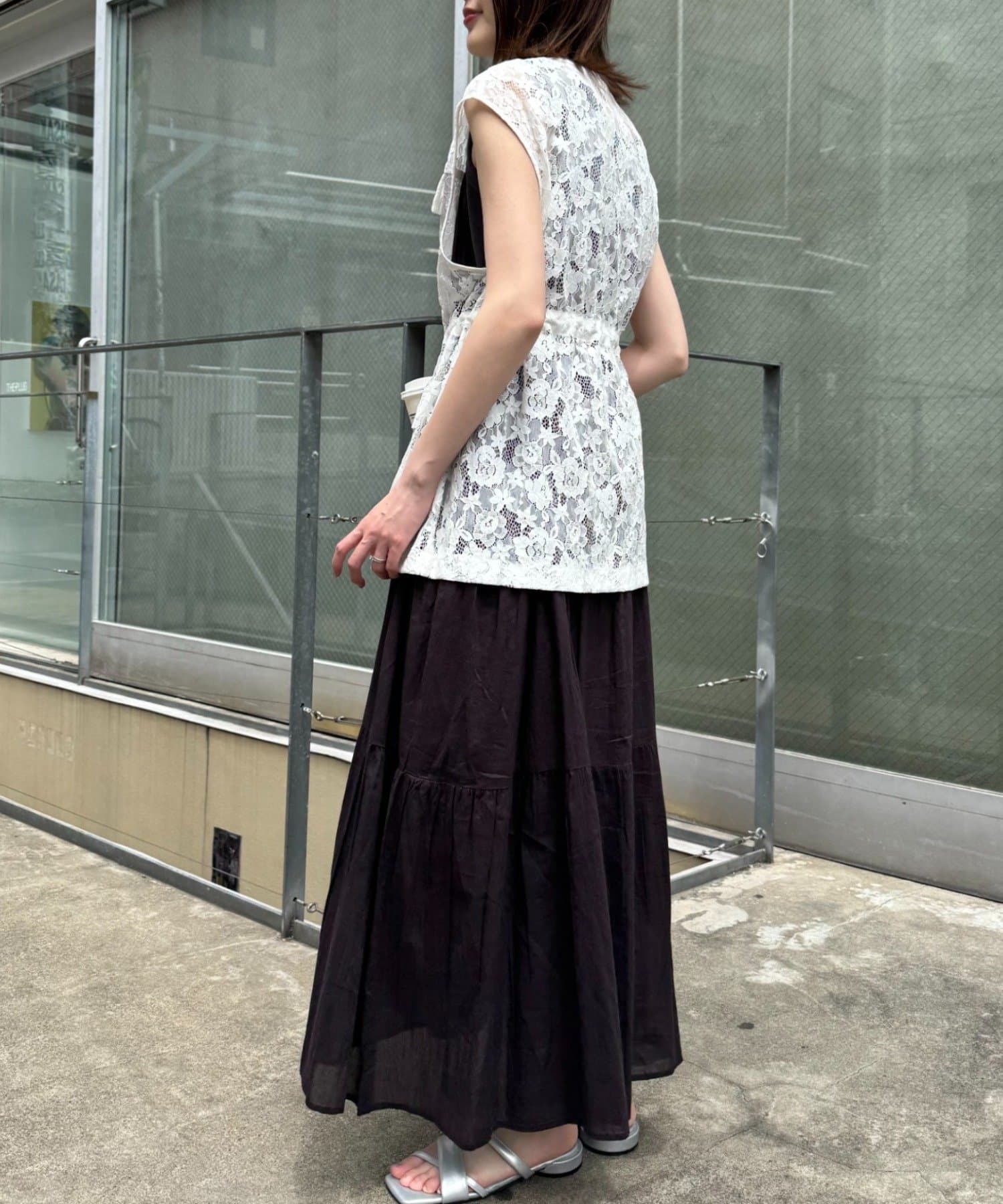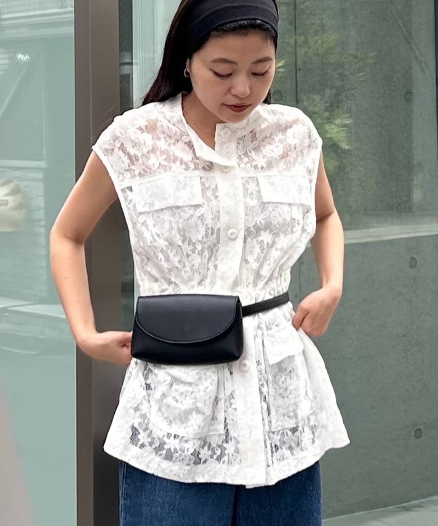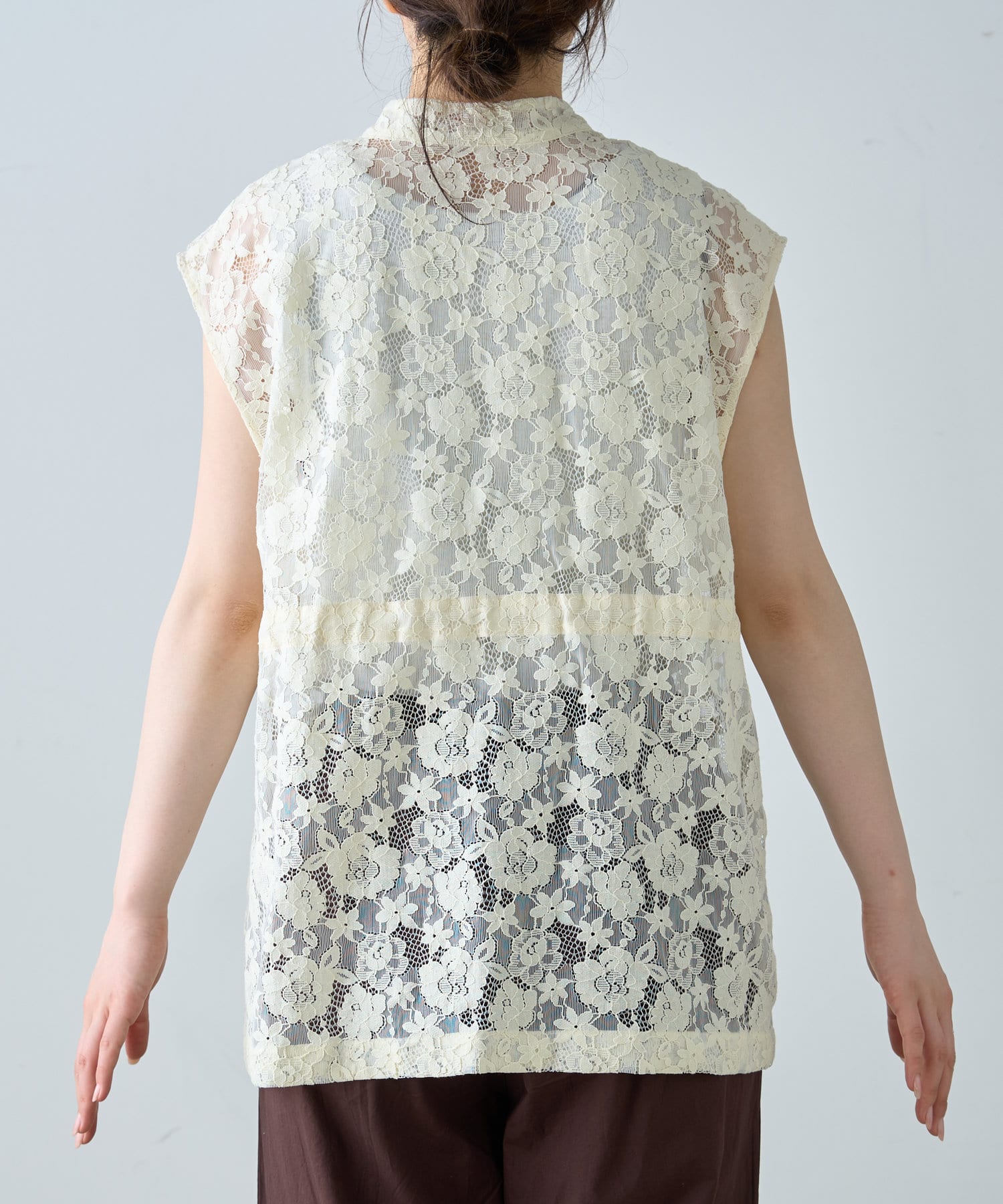 メンズライクになりがちな大きめベストを、レースで女性らしく仕上げました!