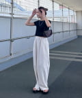 ウエストはゴム&紐デザインで、ストレスフリーな履き心地。
