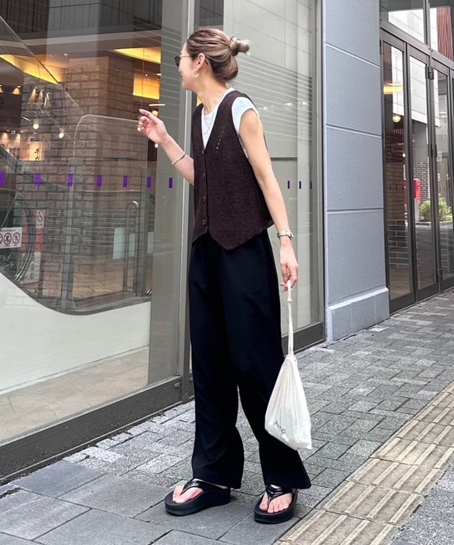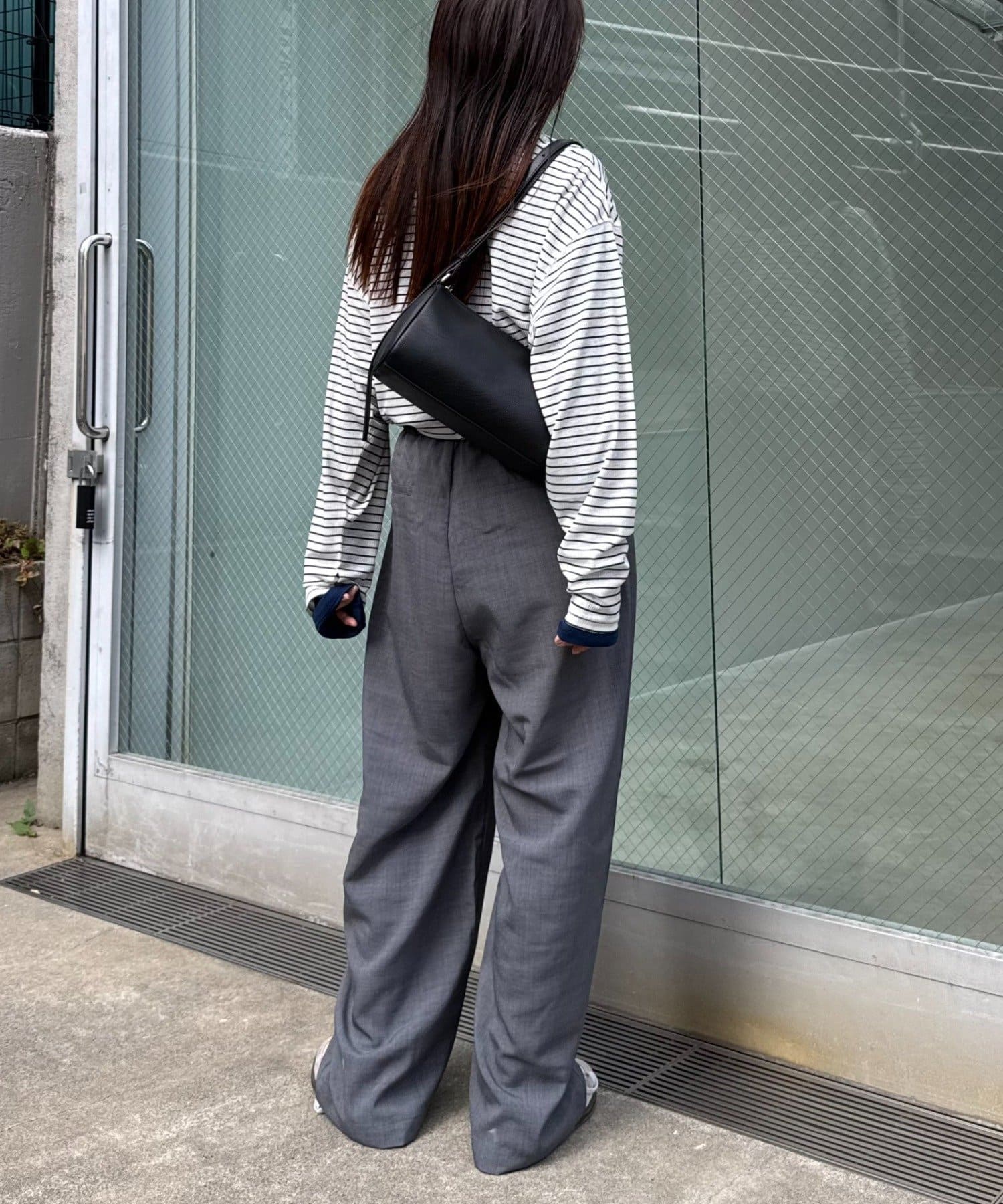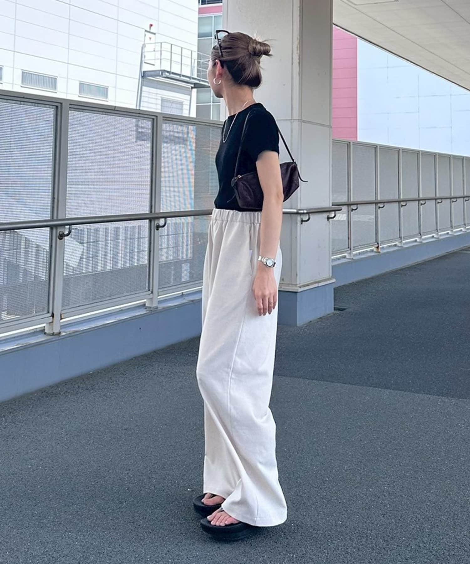 体型を拾わずに脚長効果を叶えてくれるワイドストレートシルエット。