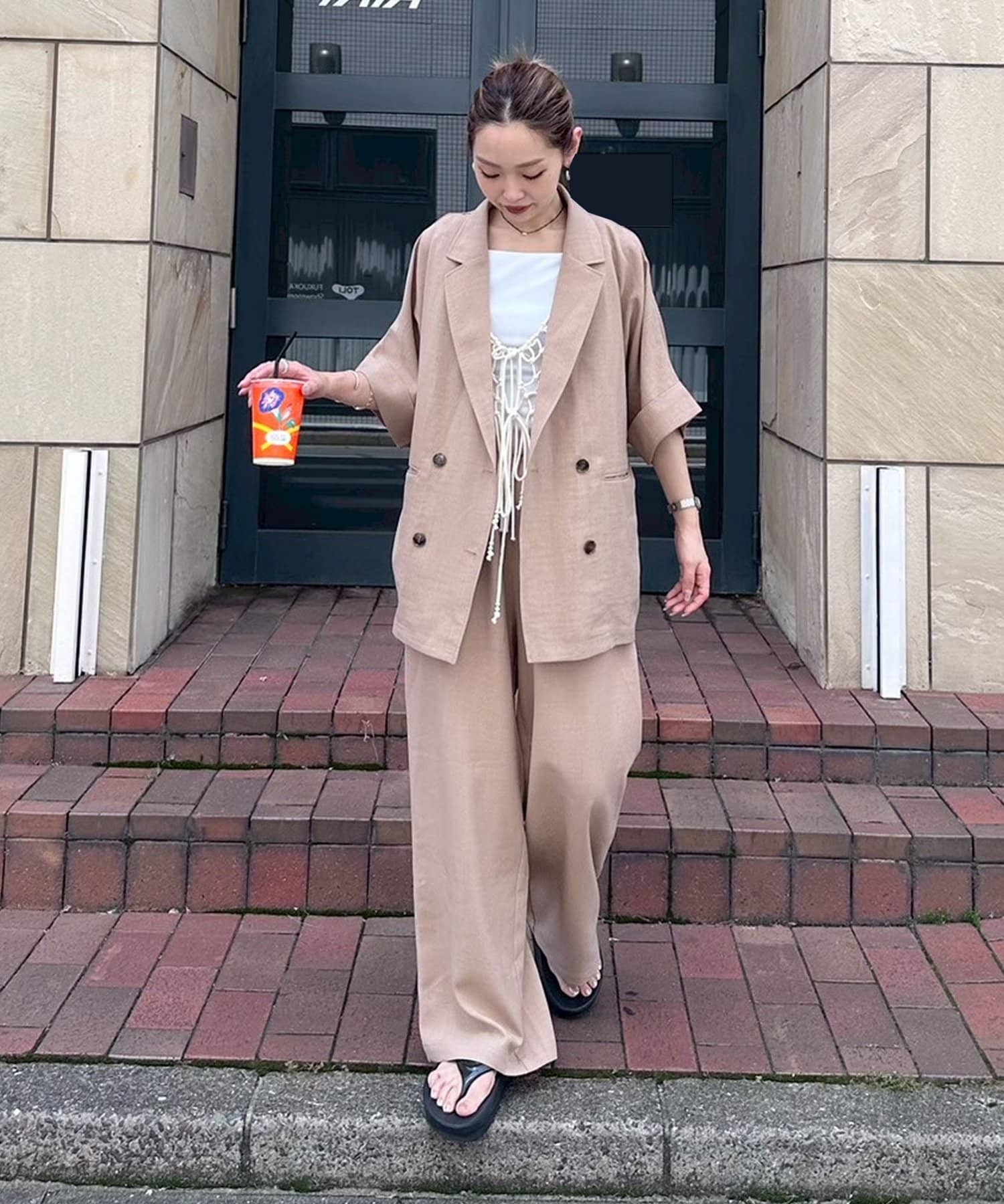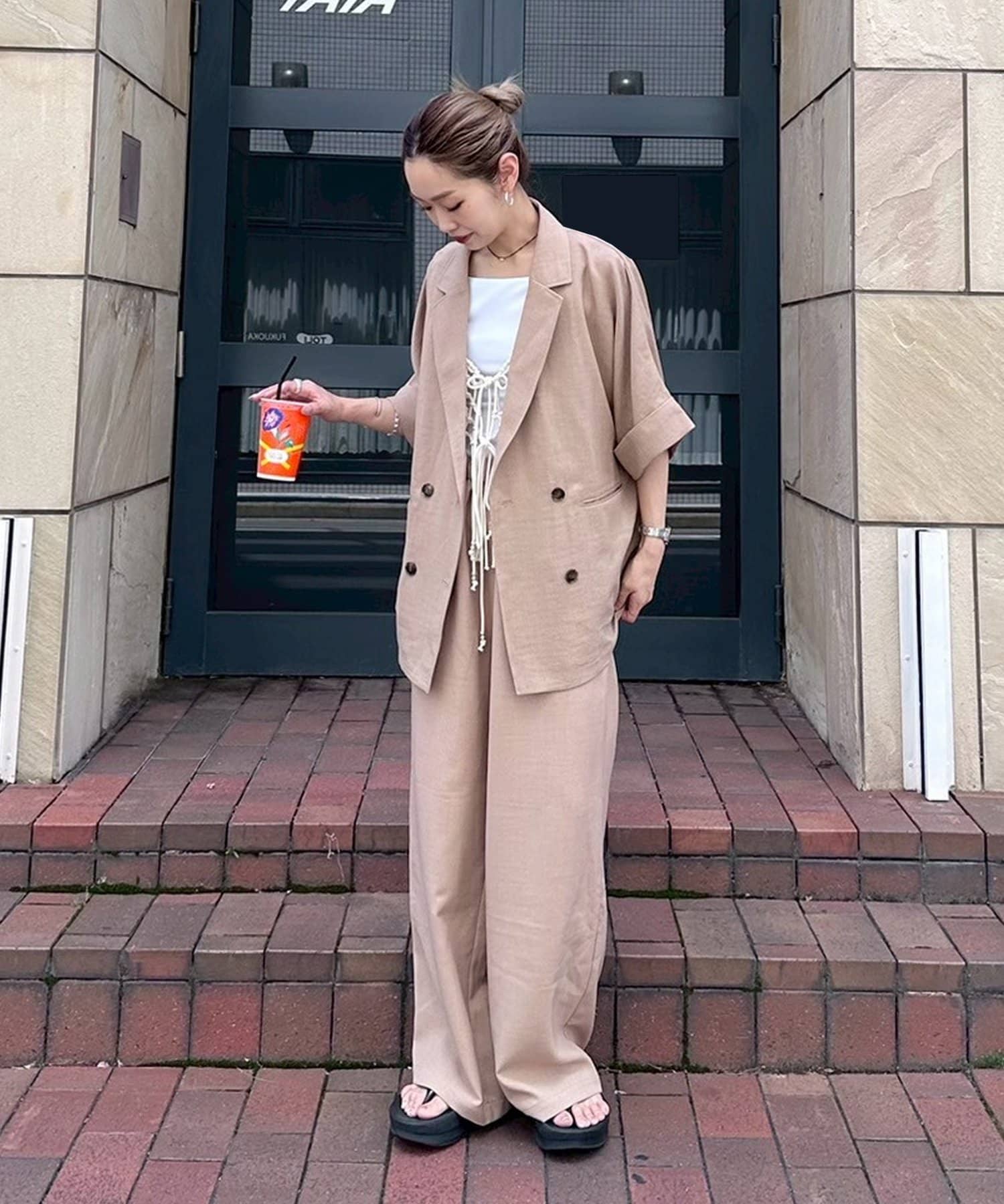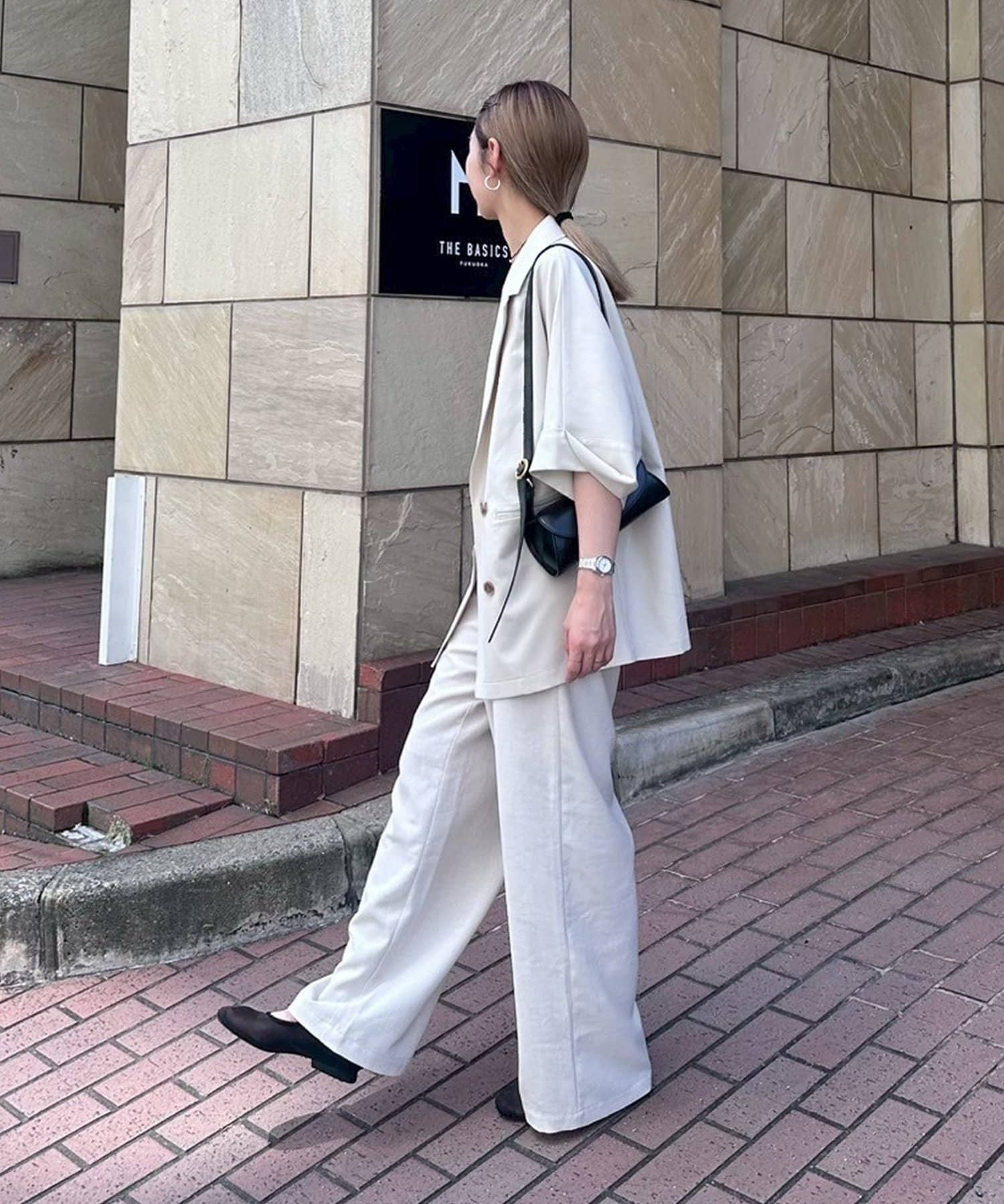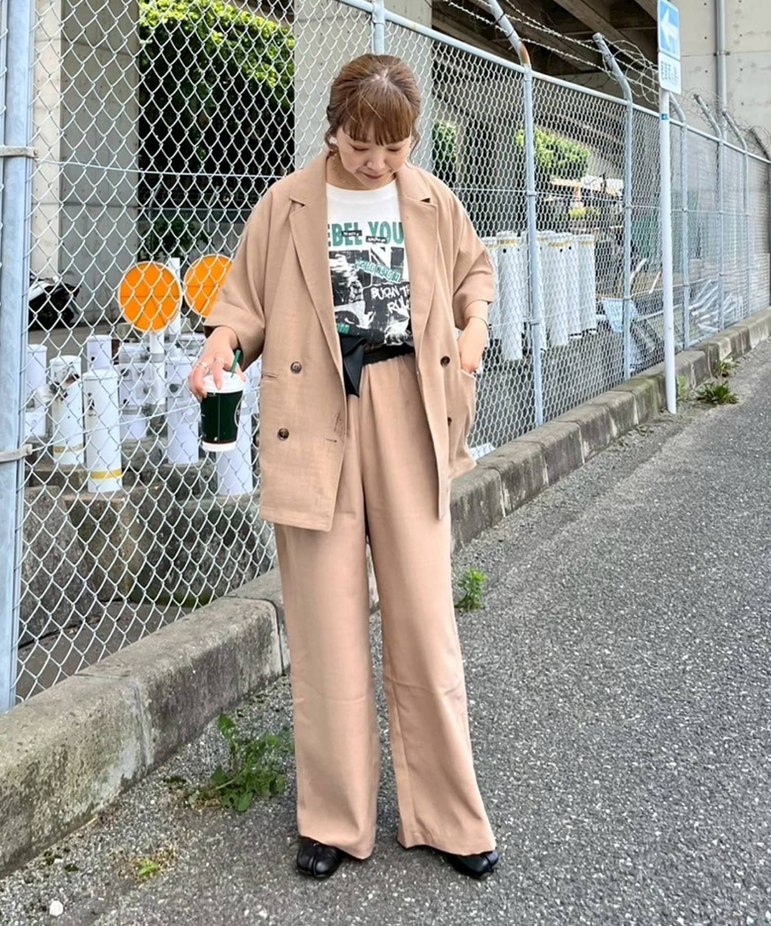 に合わせてセットアップスタイルが完成するワイドパンツが登場!