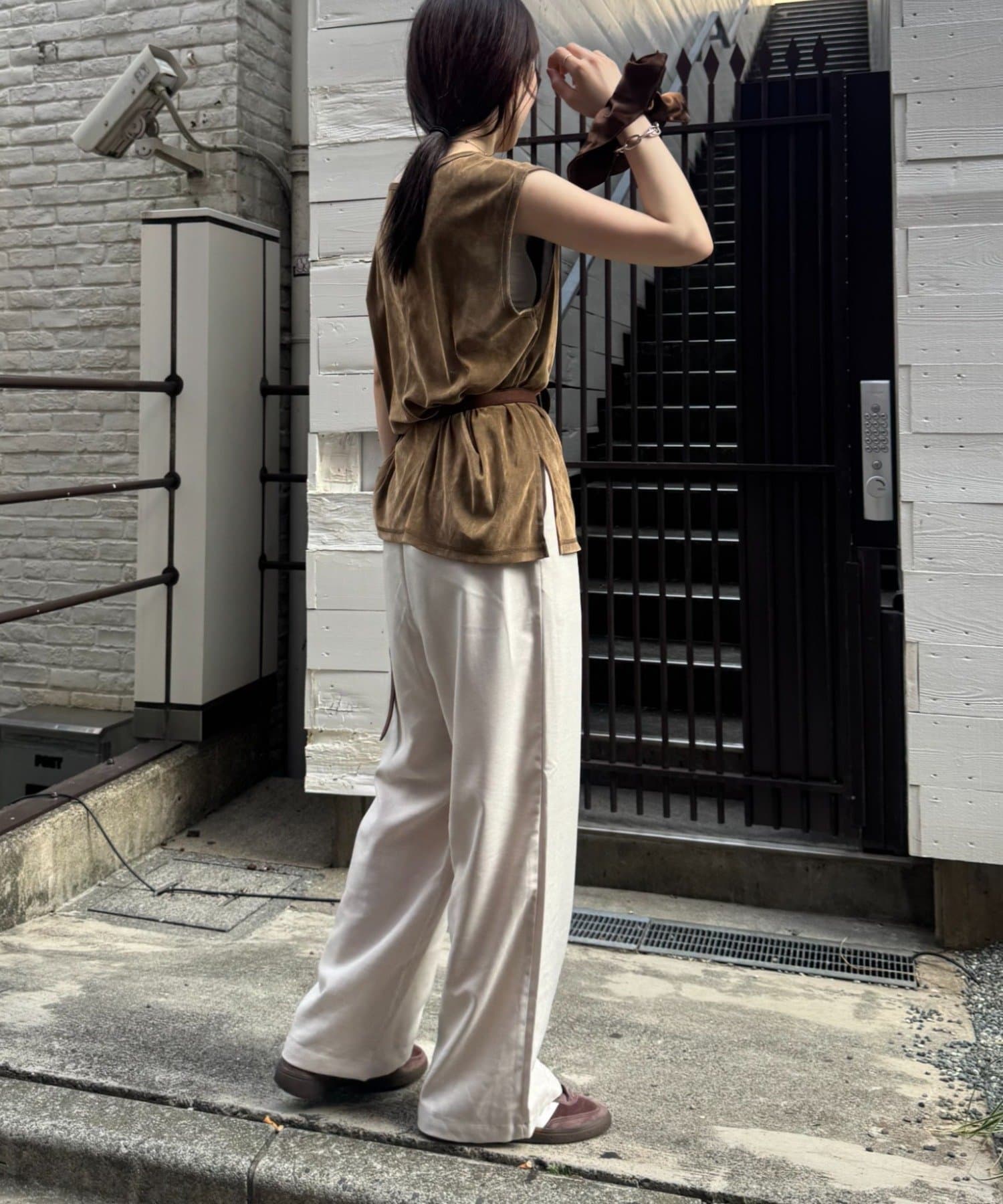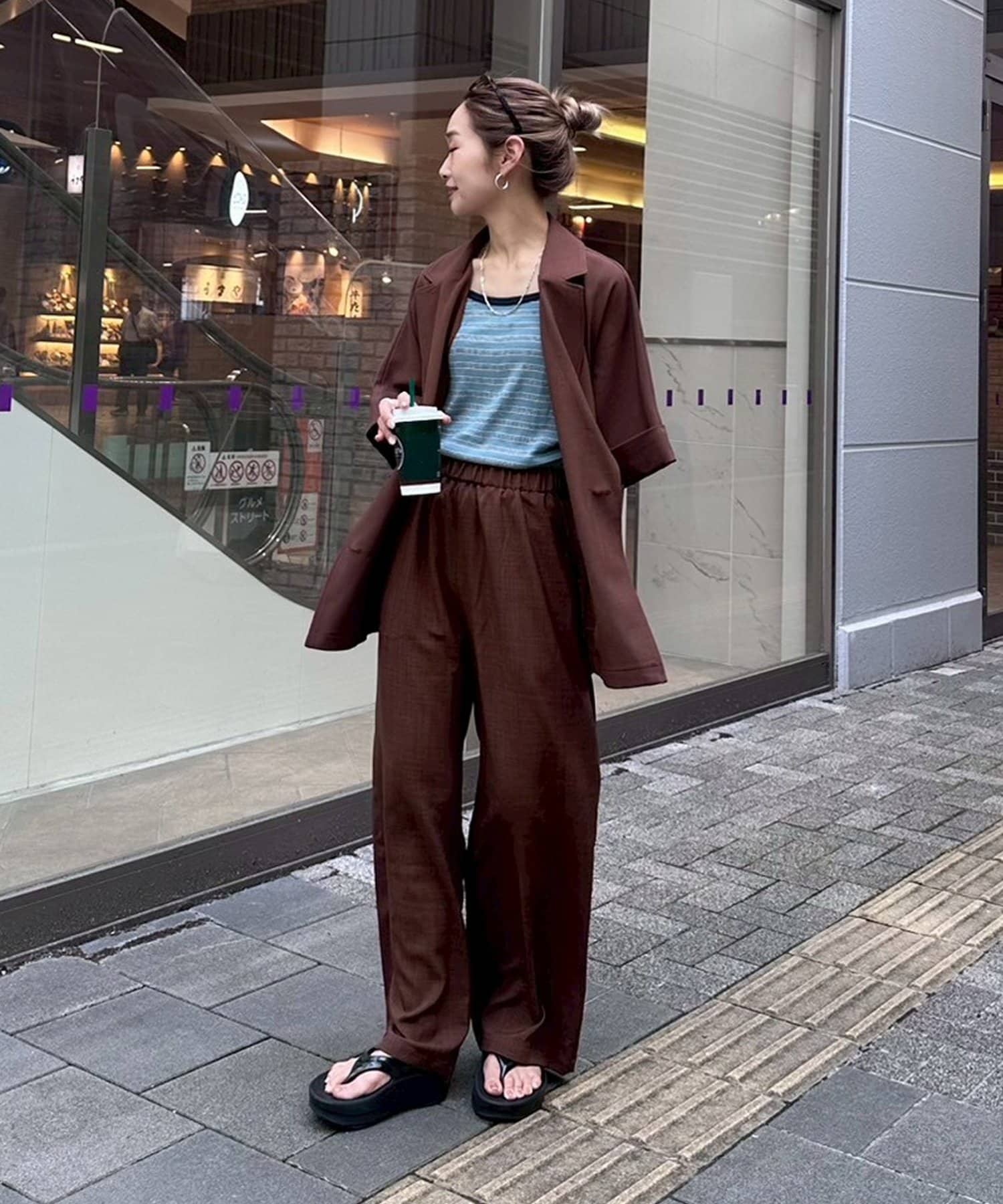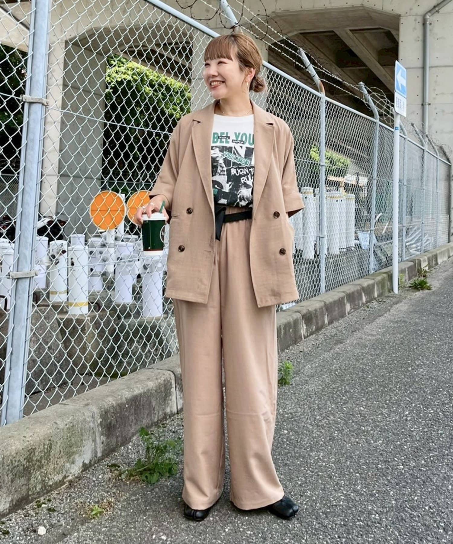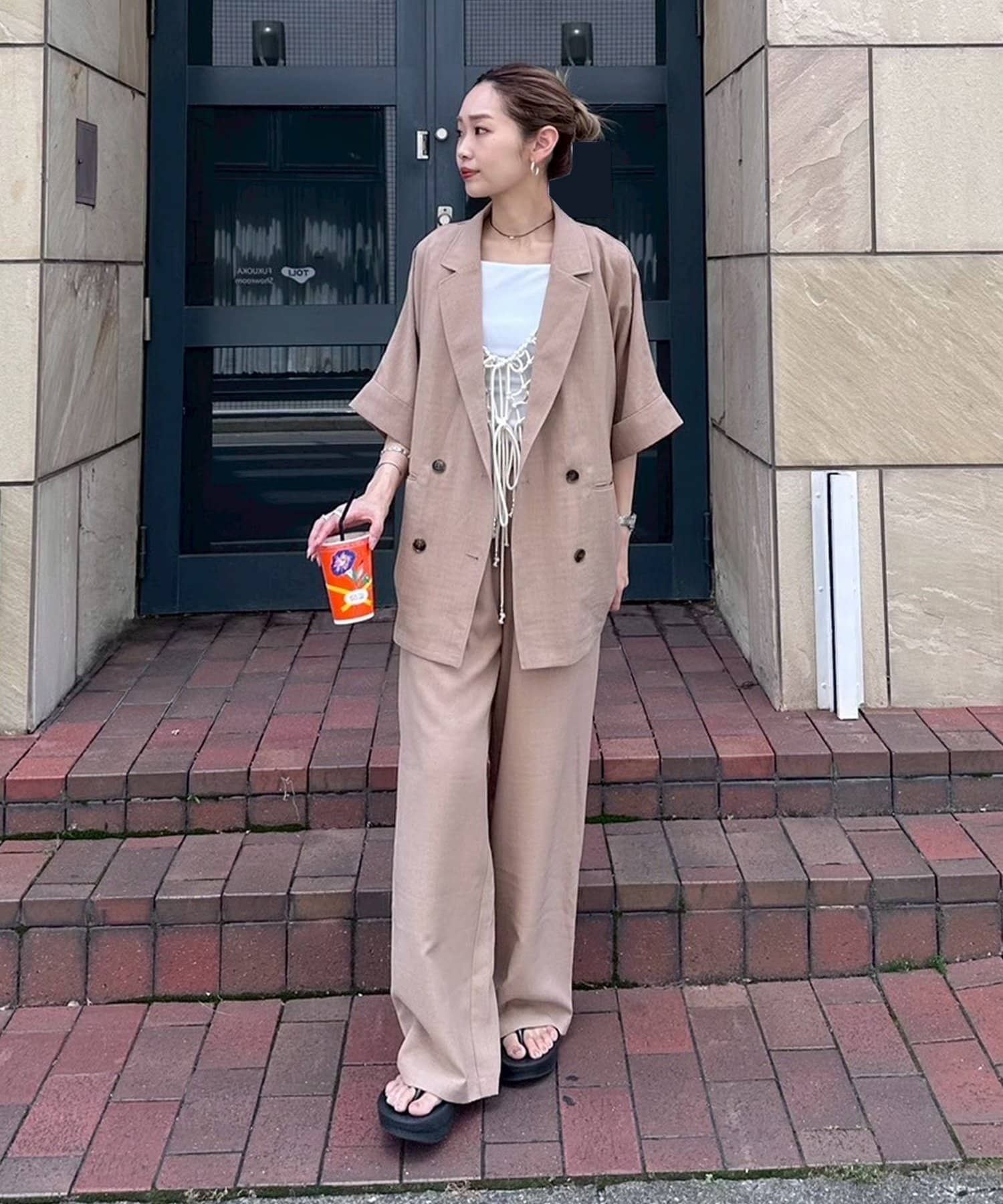 に合わせてセットアップスタイルが完成するワイドパンツが登場!