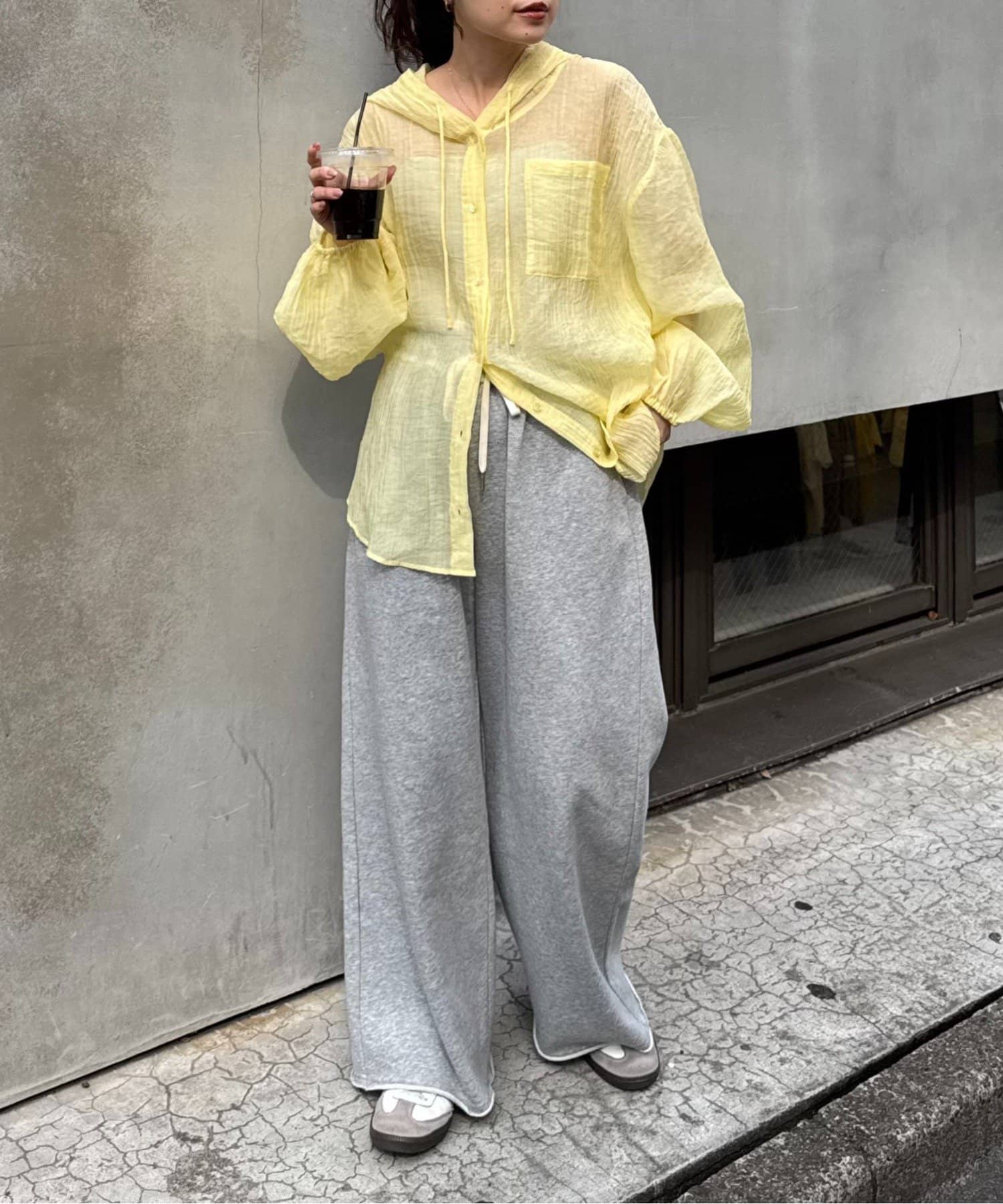 動くたびにふわっとするシルエットと程よい透け感が、女性らしさをプラス。