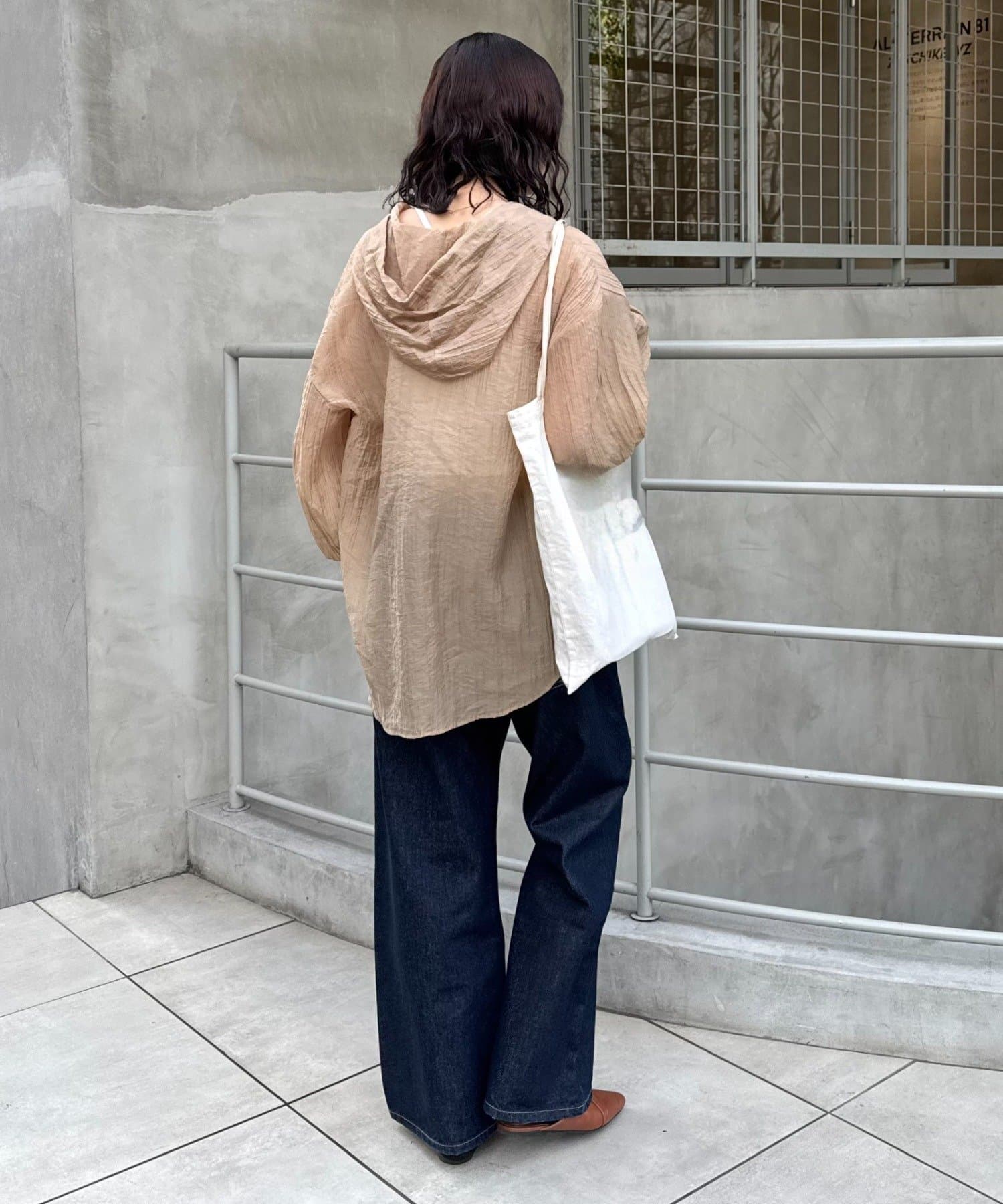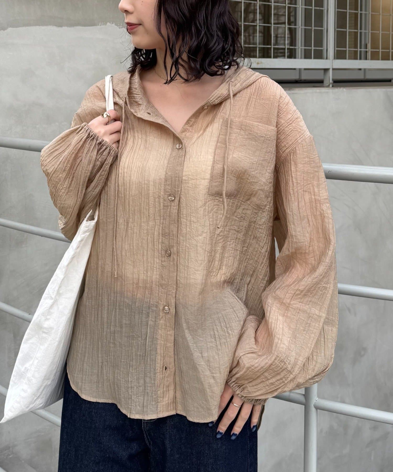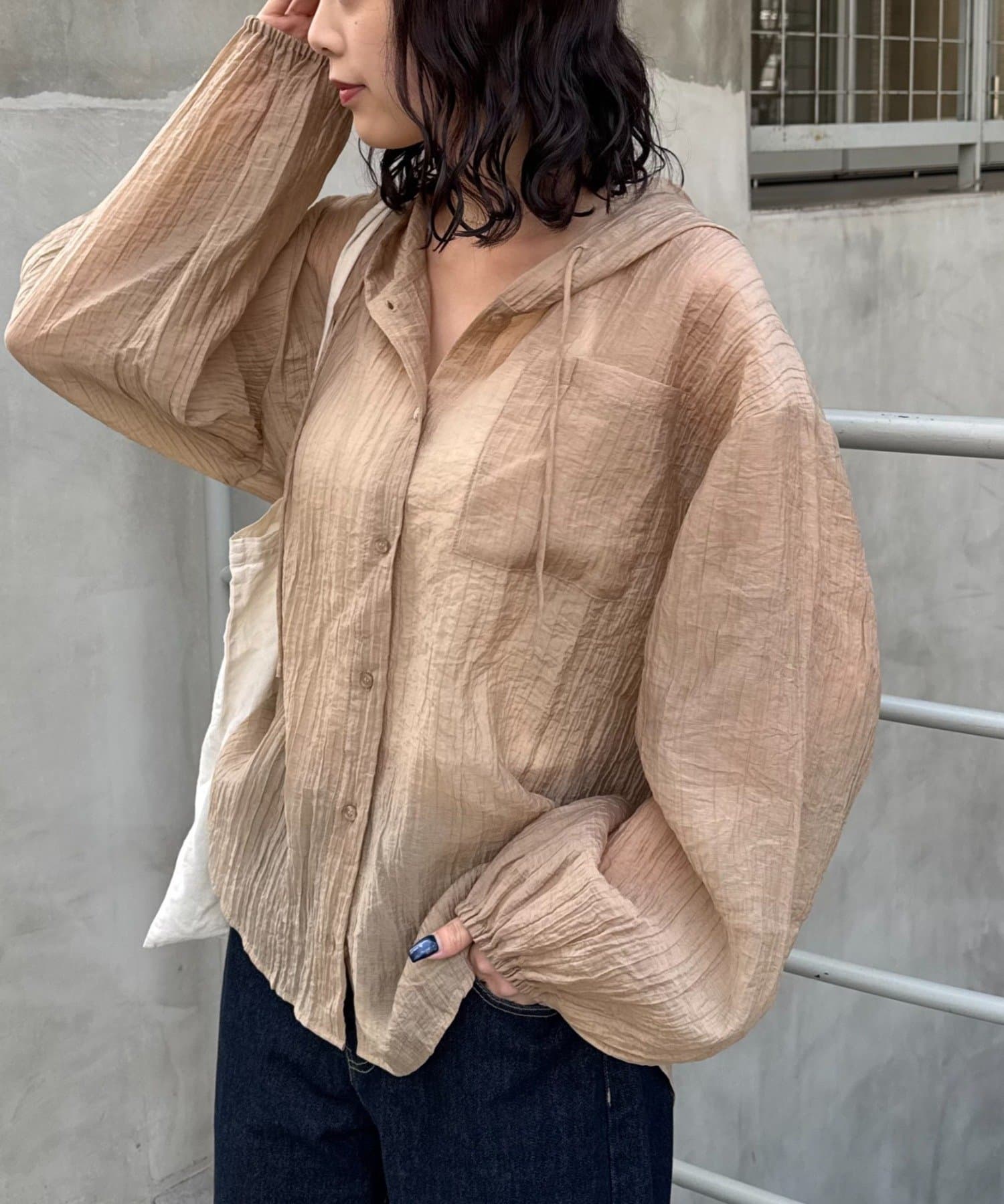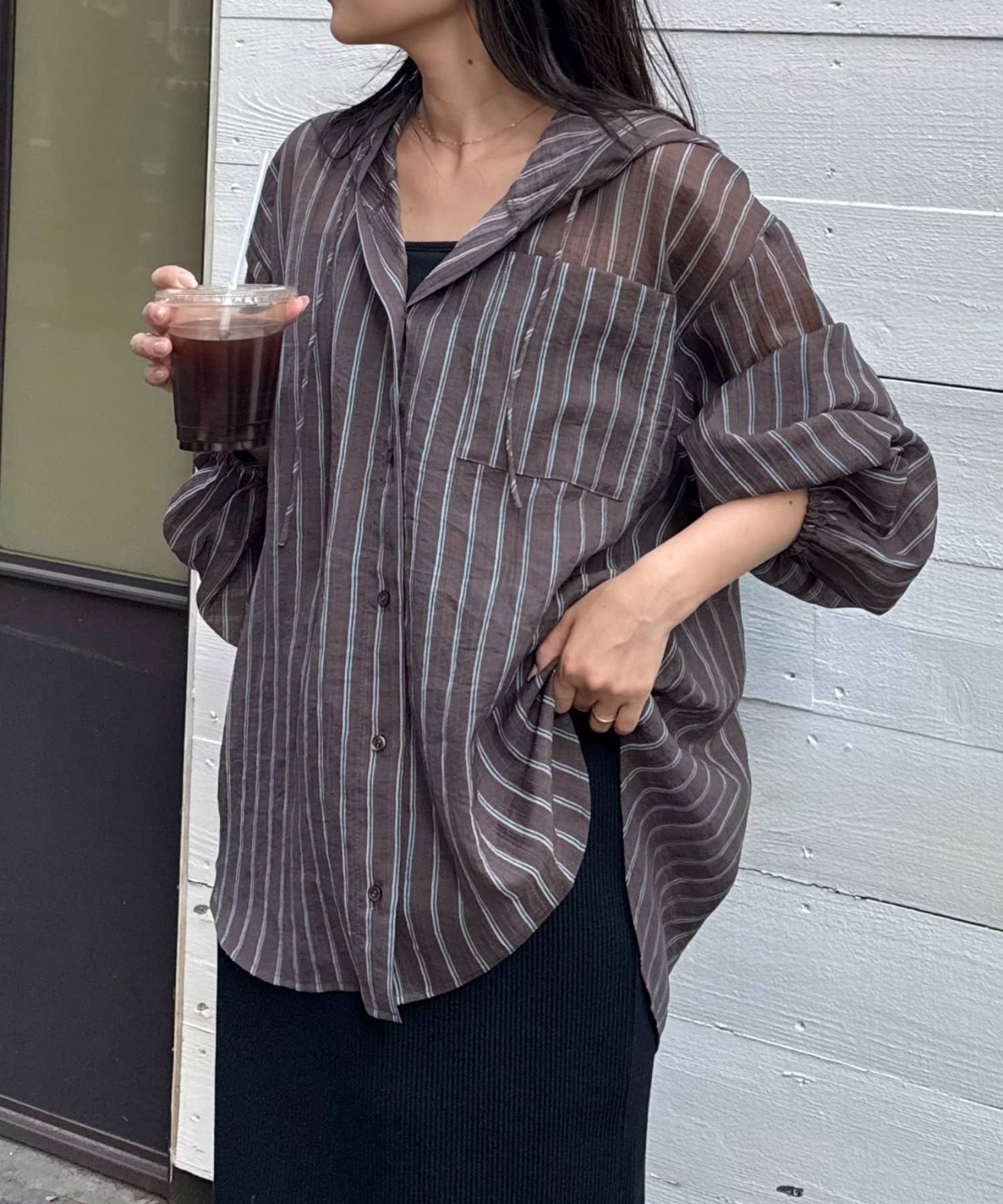 【体型カバーも叶う】フード付きシアーシャツ