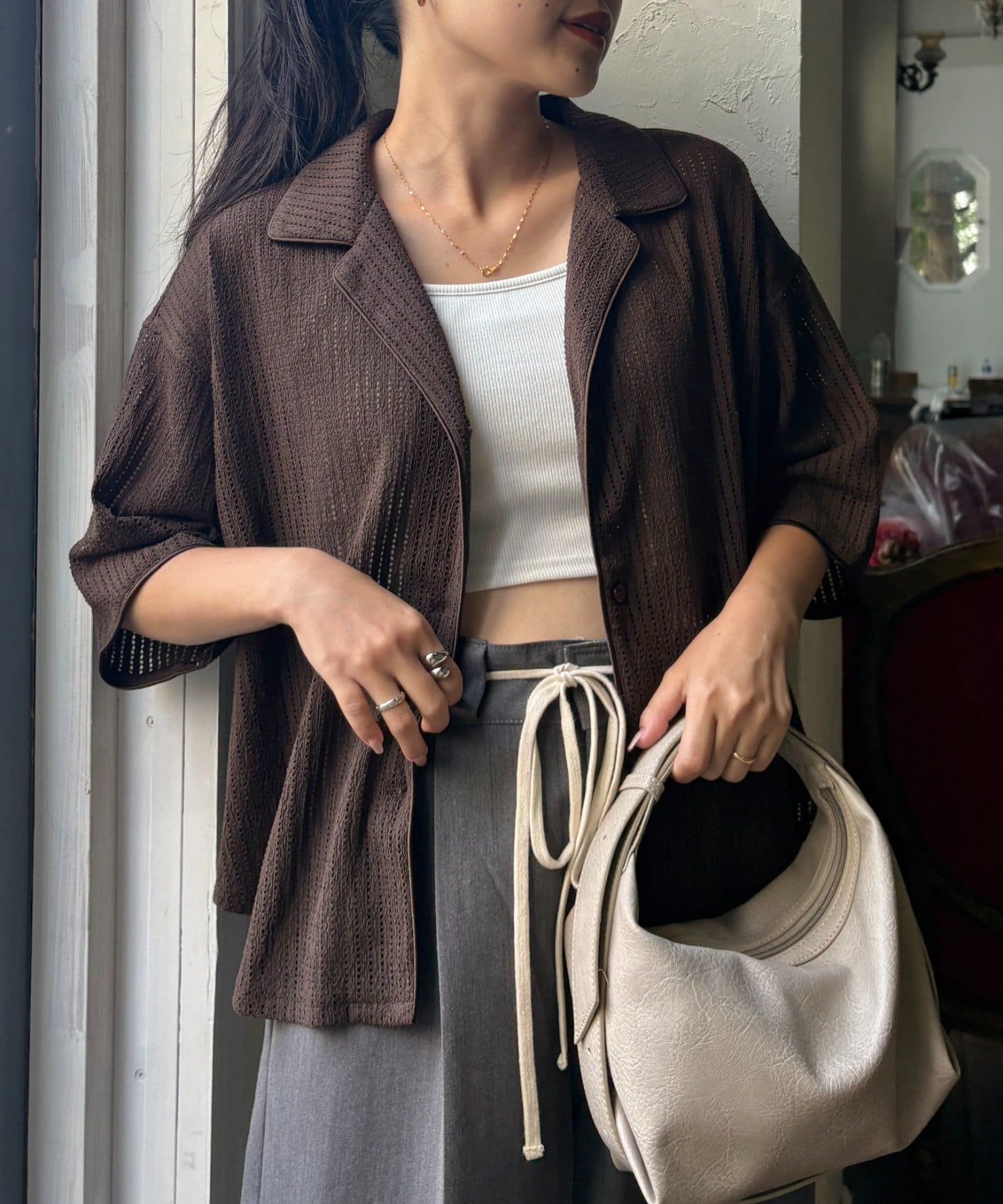 Tシャツやタンクトップに羽織るだけで、夏らしい軽やかなスタイルの完成