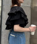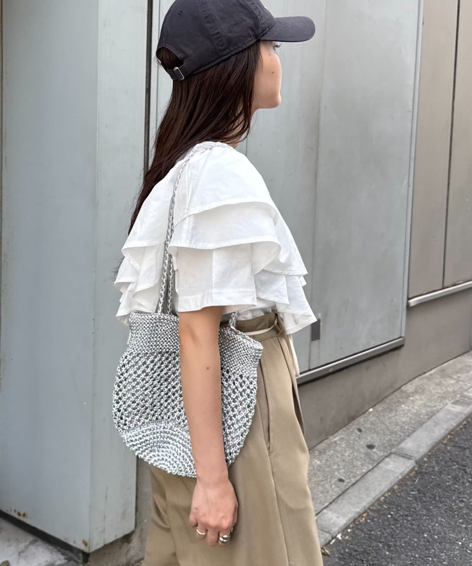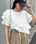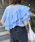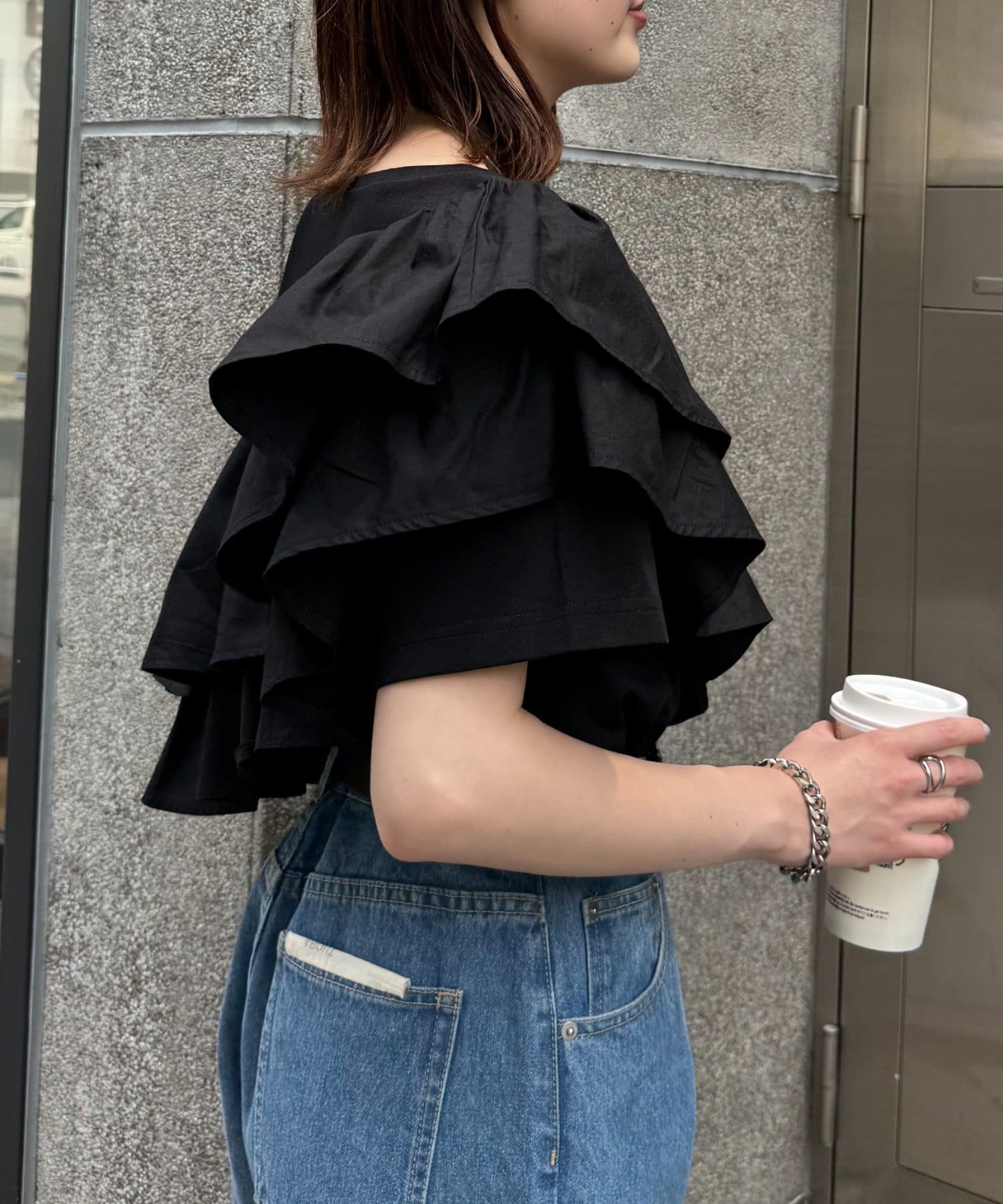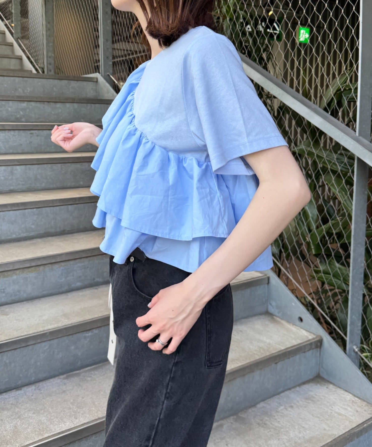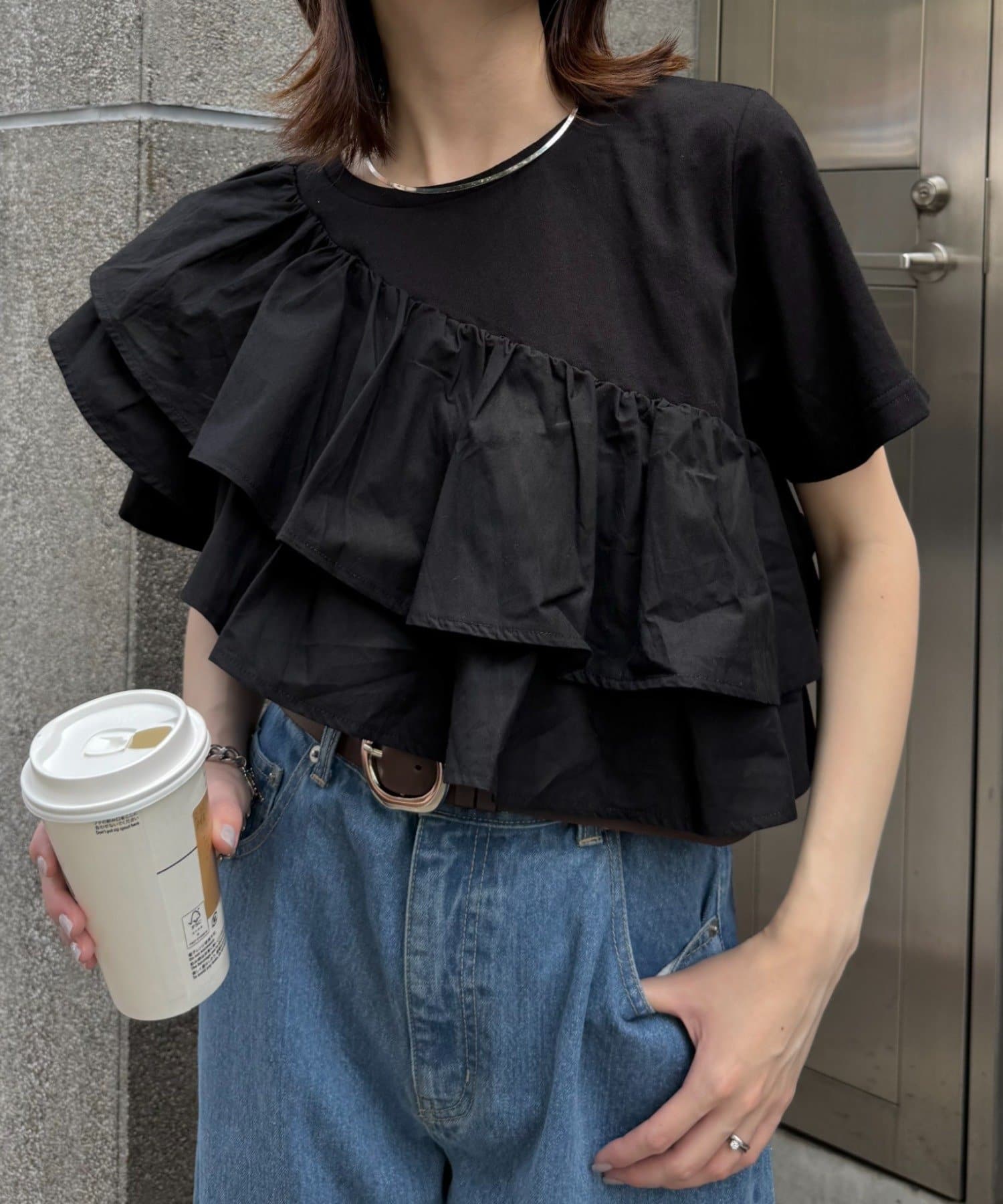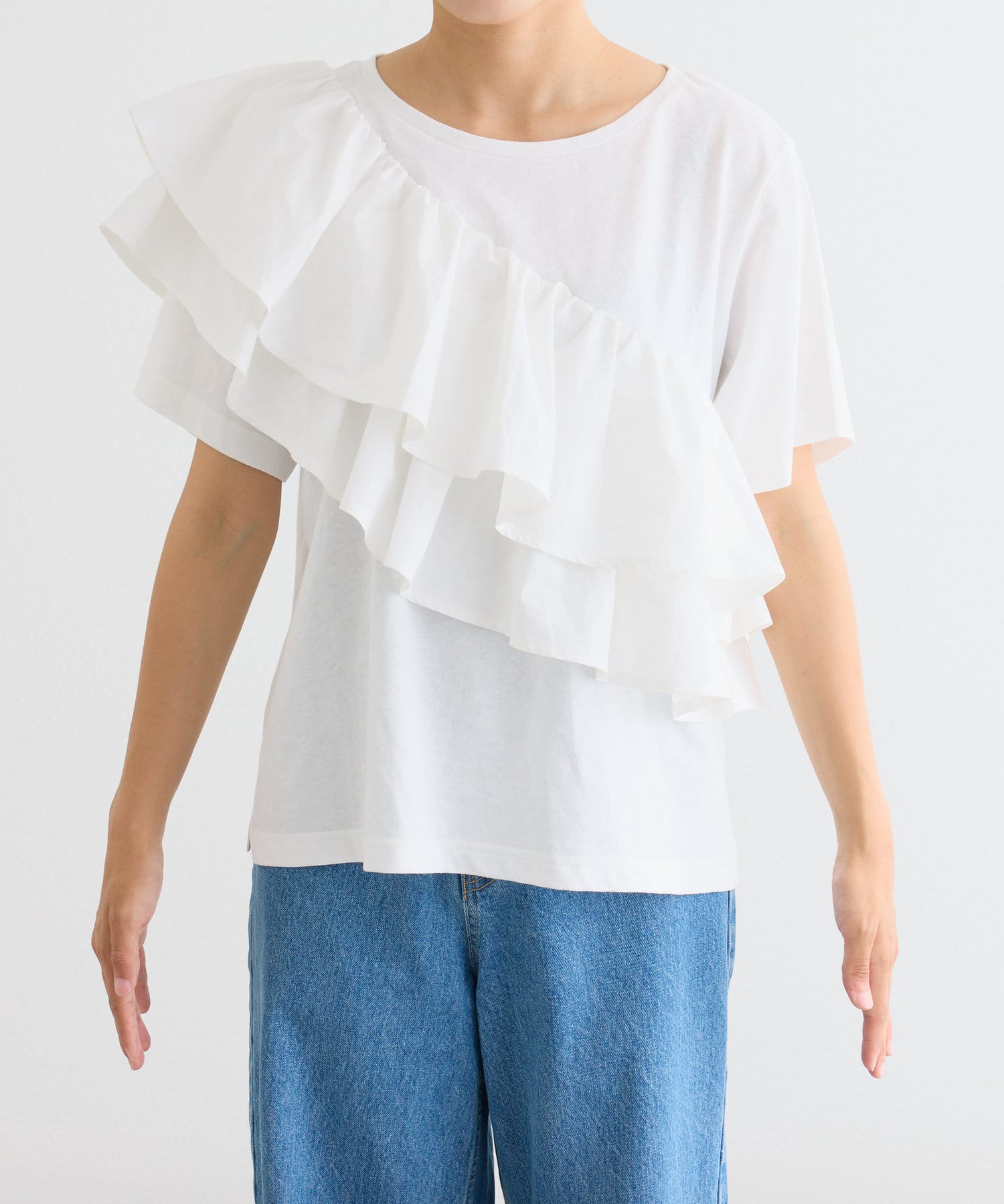 前後にあしらわれたアシンメトリーなフリルで華やかさをプラスしてくれます。