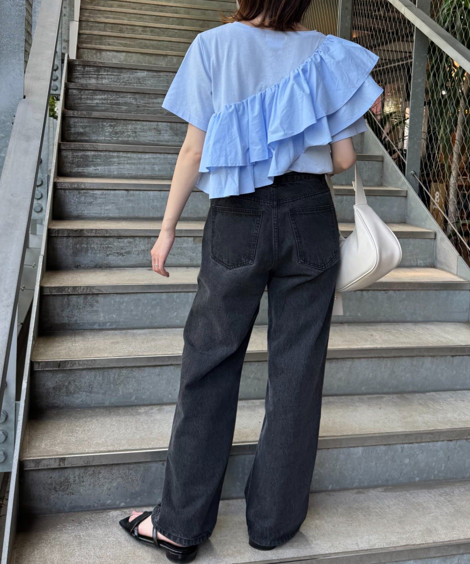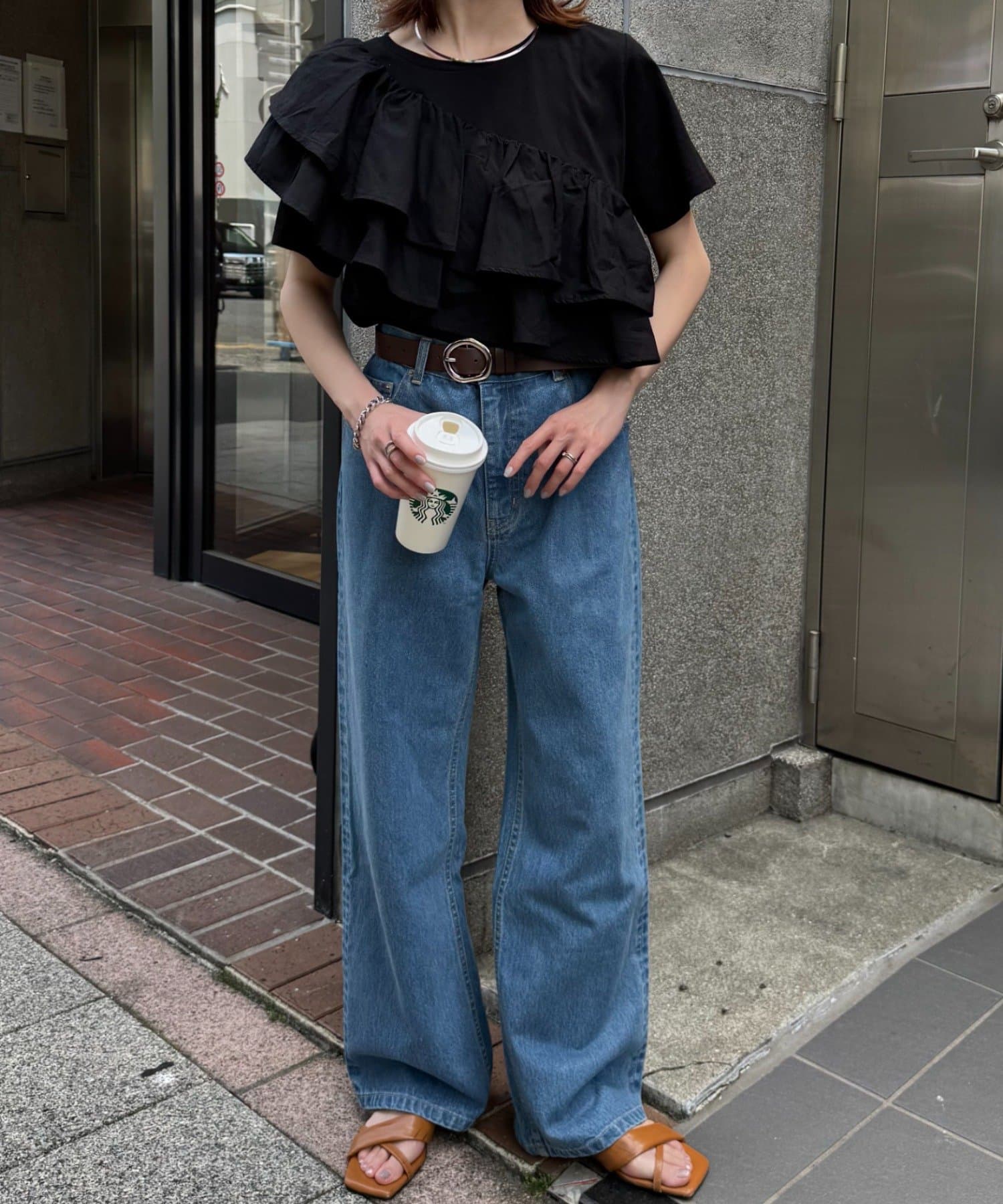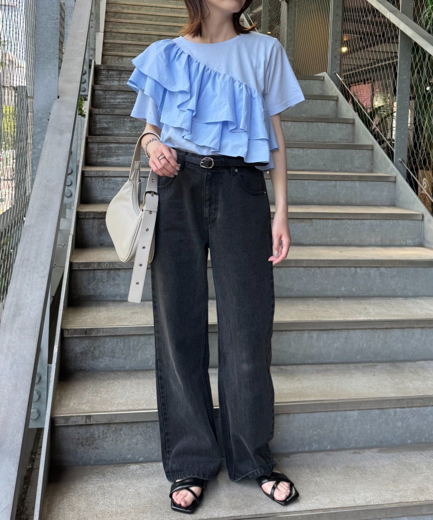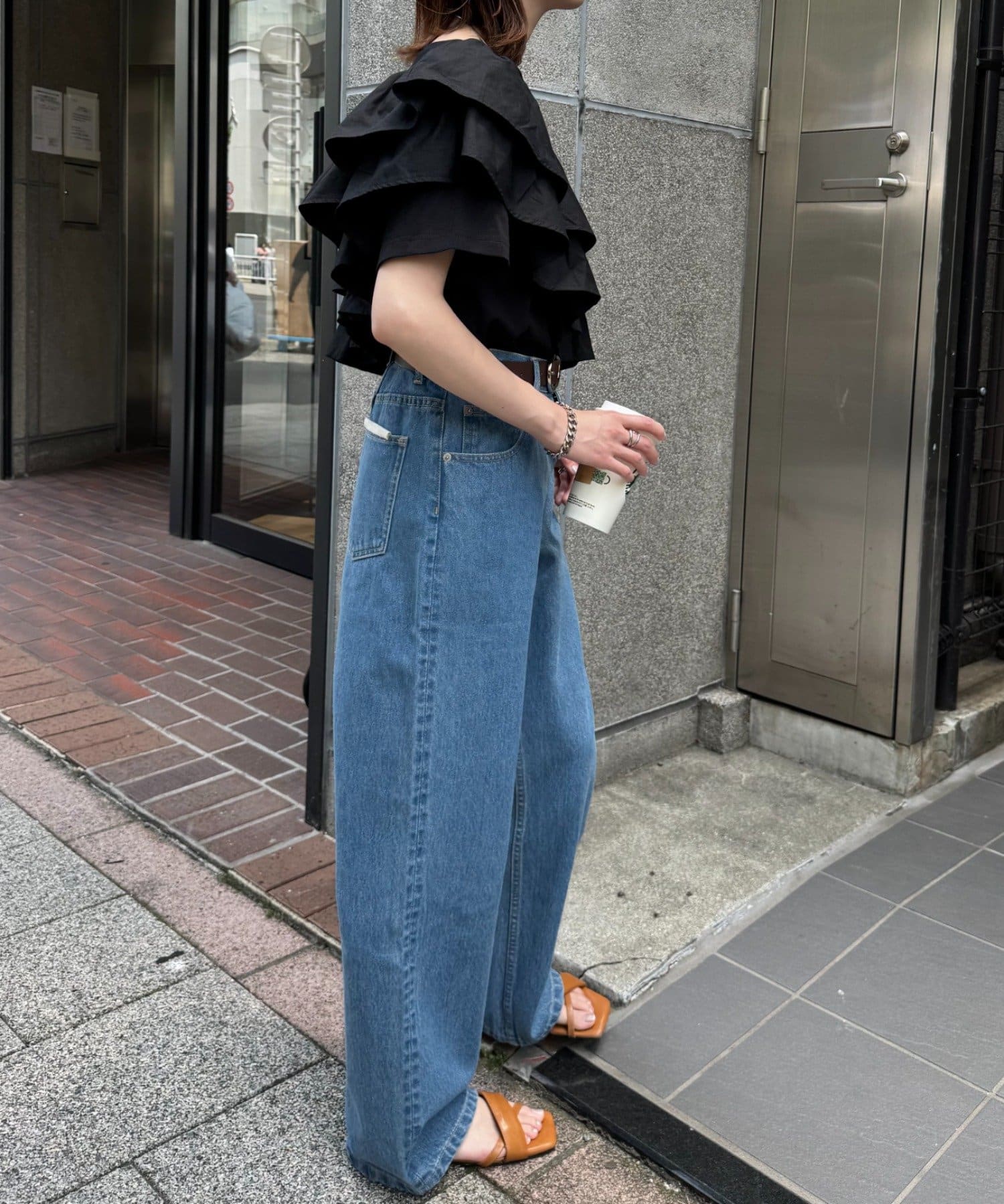 甘めなブラウスが苦手な方は、デニムと合わせてカジュアルダウンするのがおすすめです◎