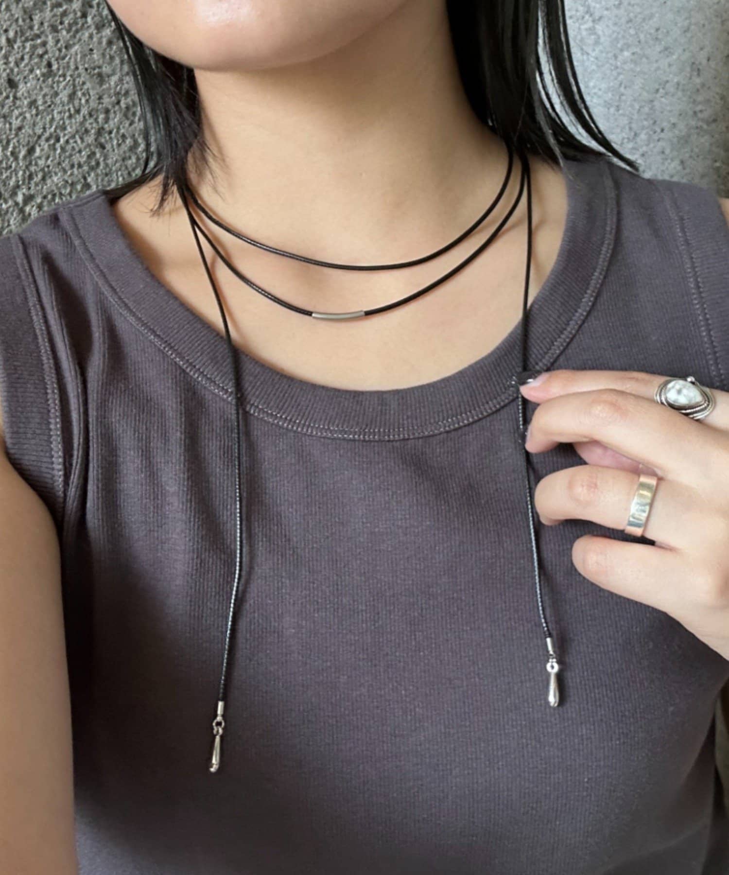 ・チョーカーとして:首元に沿わせて、クールでスタイリッシュな印象に。