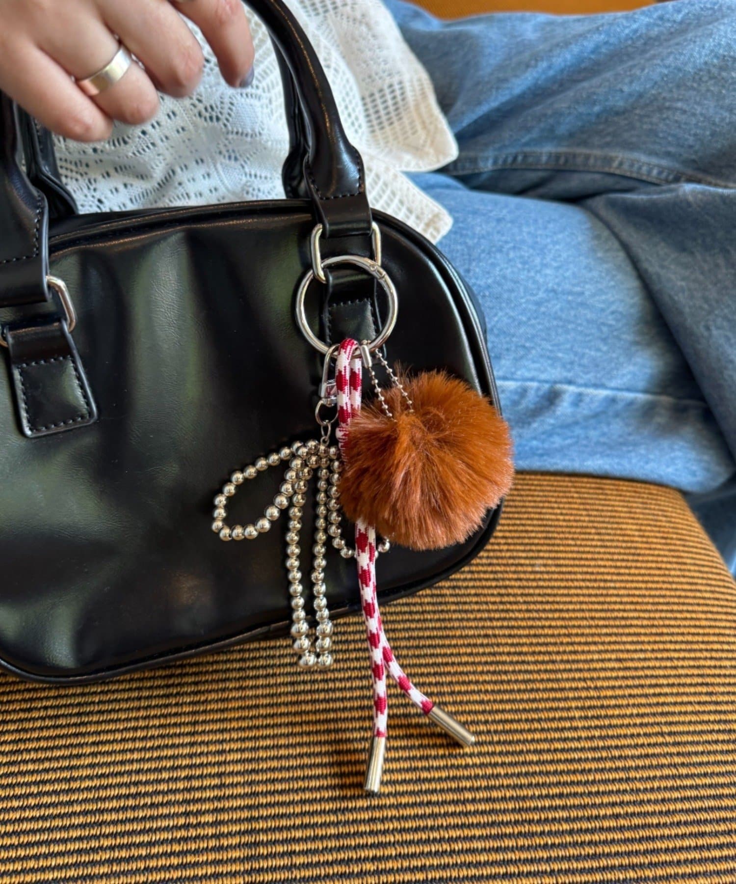 目を引く、ふわふわのファーチャーム。