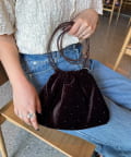 スタッズ: 控えめながらも存在感のあるスタッズが、ベロアの質感をさらに引き立てます◎