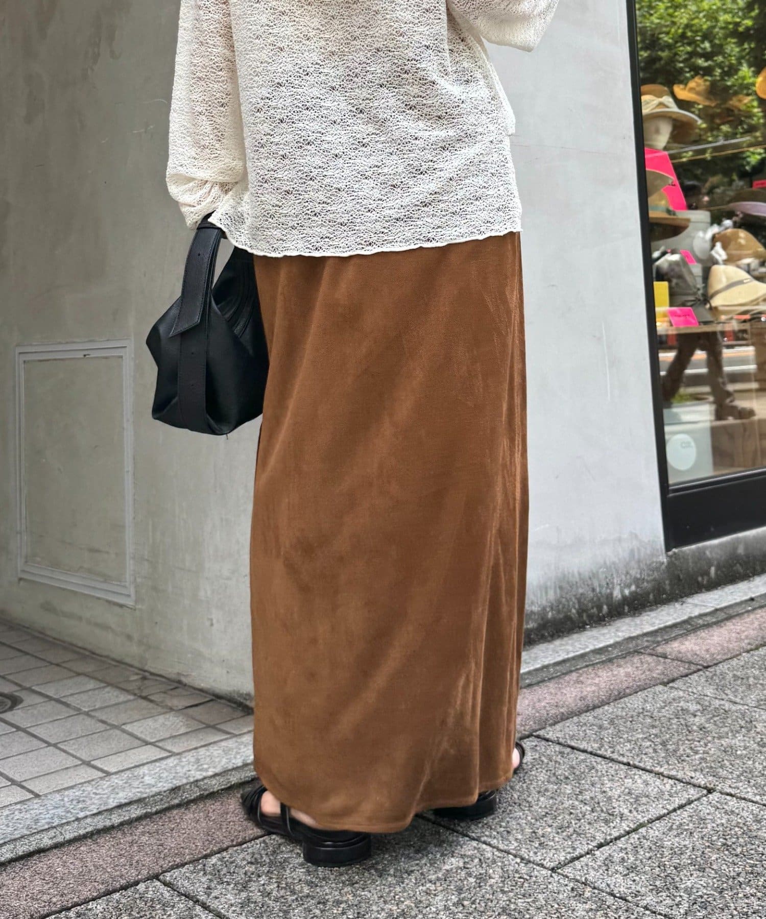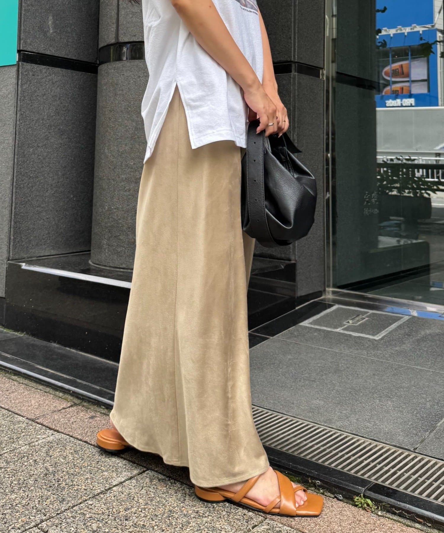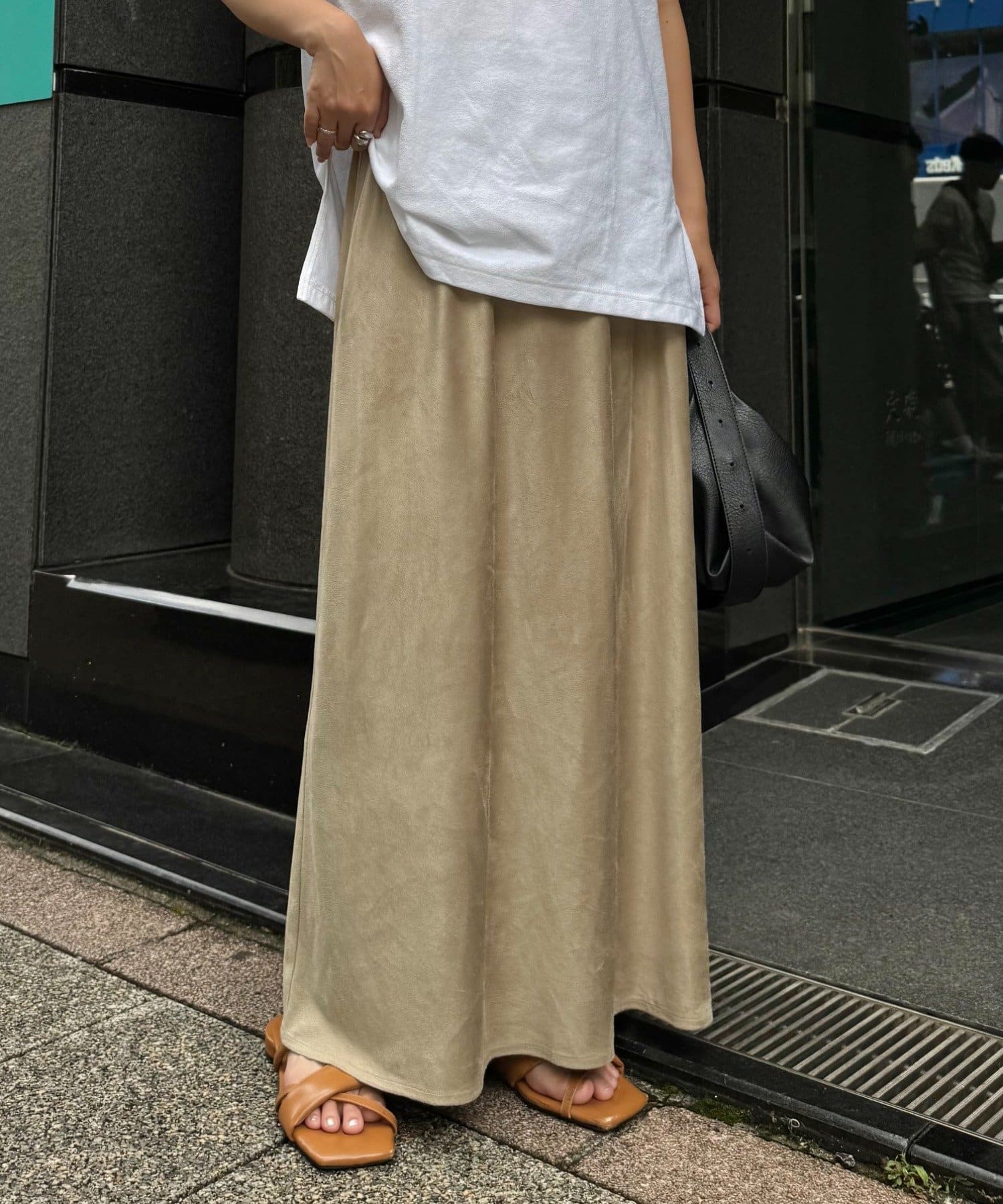 柔らかなスウェードタッチ素材が魅力のストレートスカート。