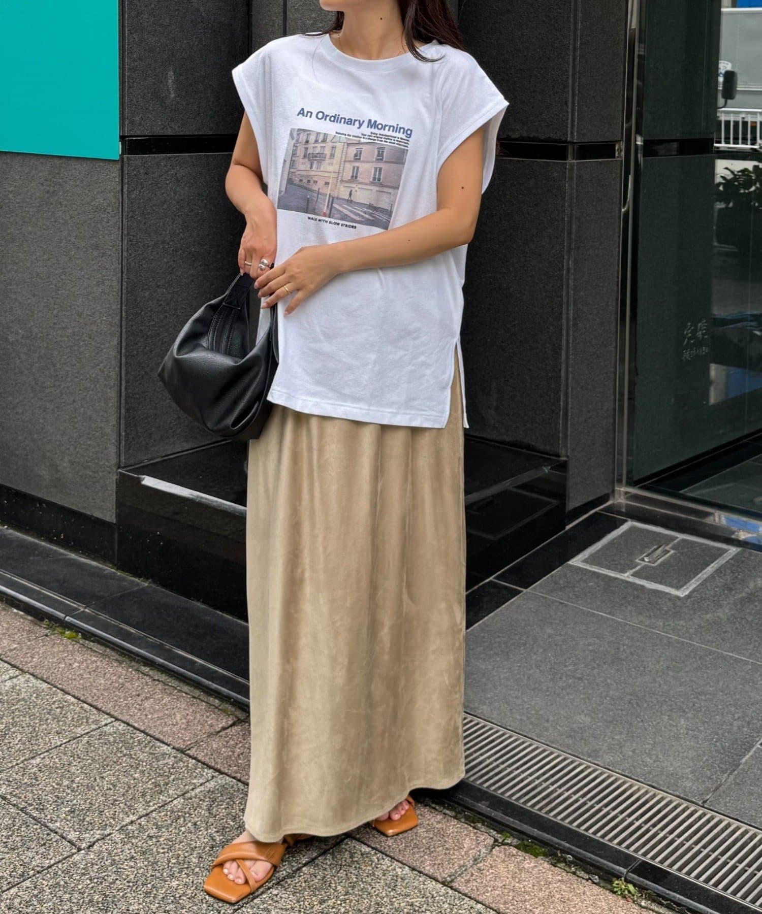 Tシャツやノースリーブ合わせるだけで、すっきりとしたスタイリングの完成◎