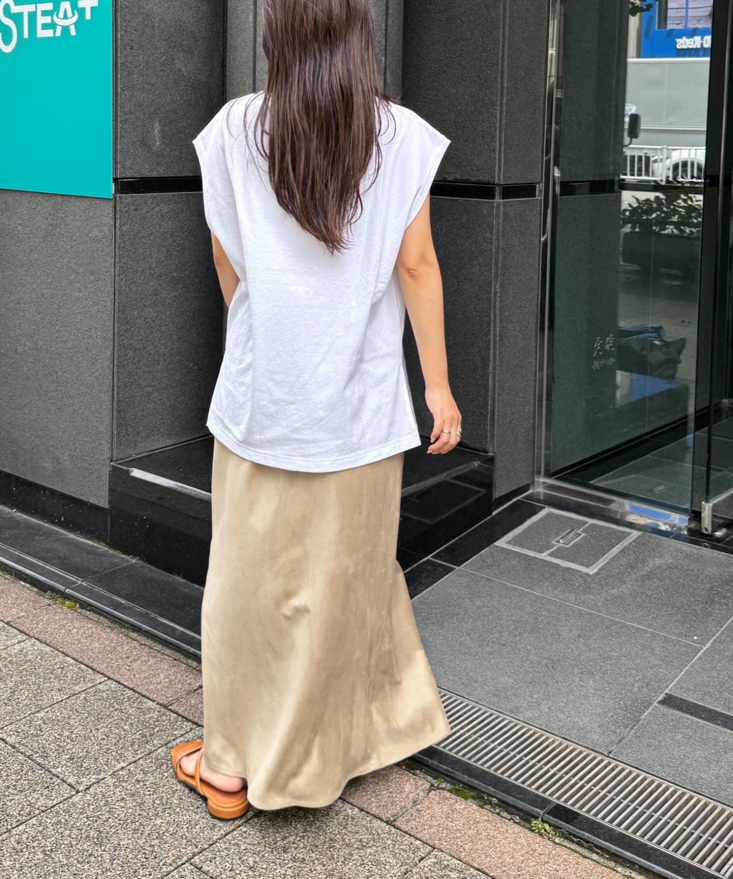 落ち感のあるしなやかな生地感で、広がりすぎずすっきり見えが叶う一枚です◎