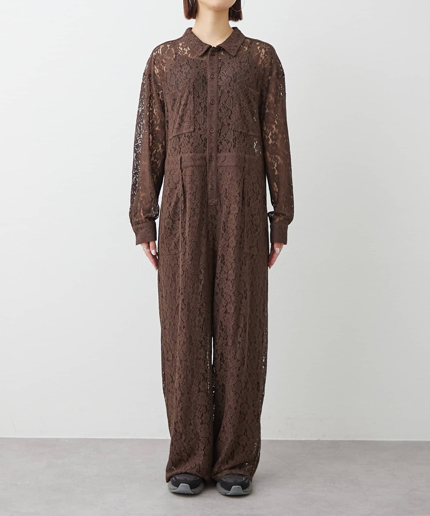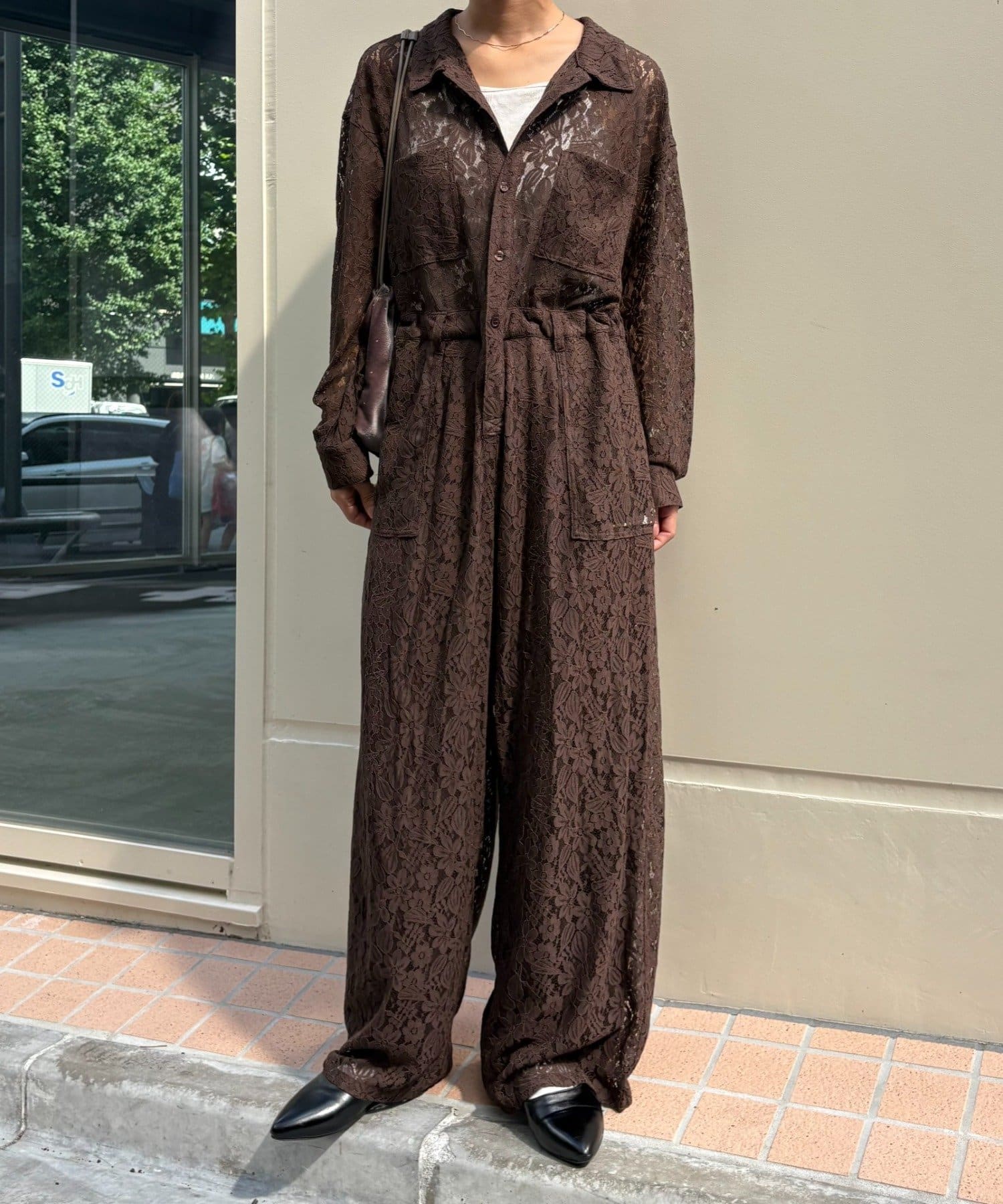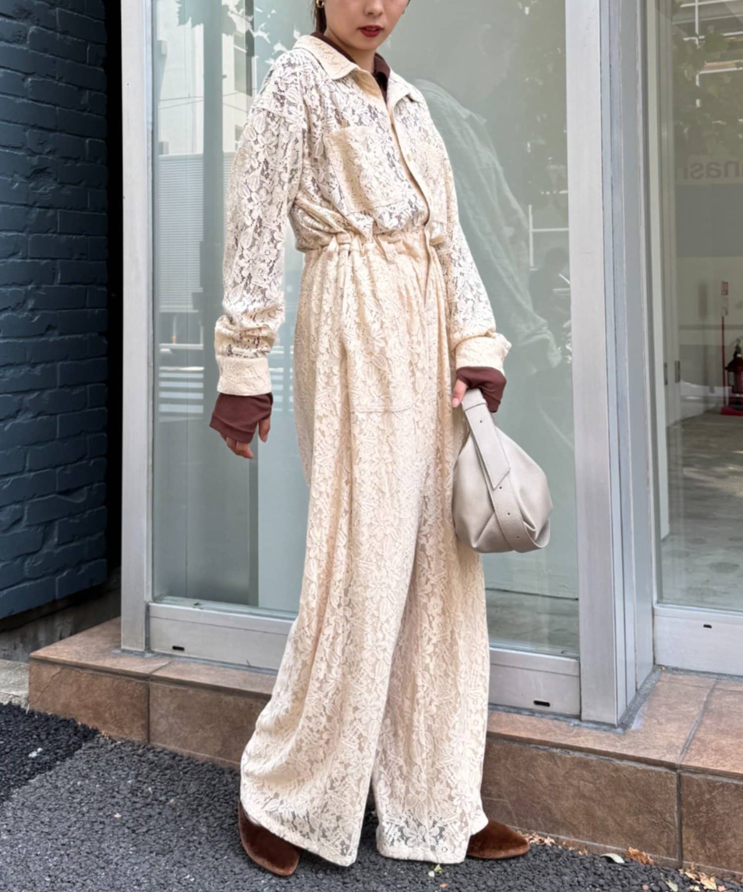 "レース×つなぎ"で大人かわいいスタイルに♡