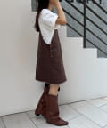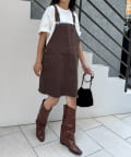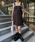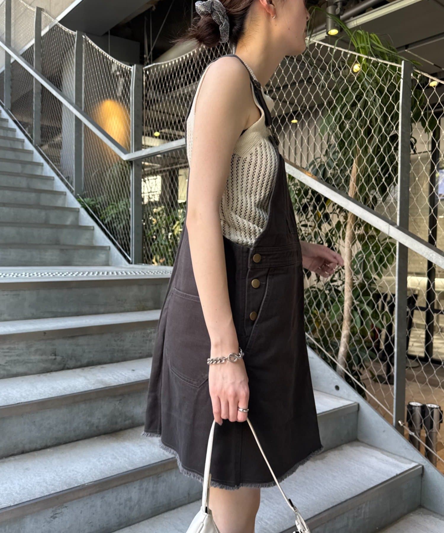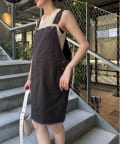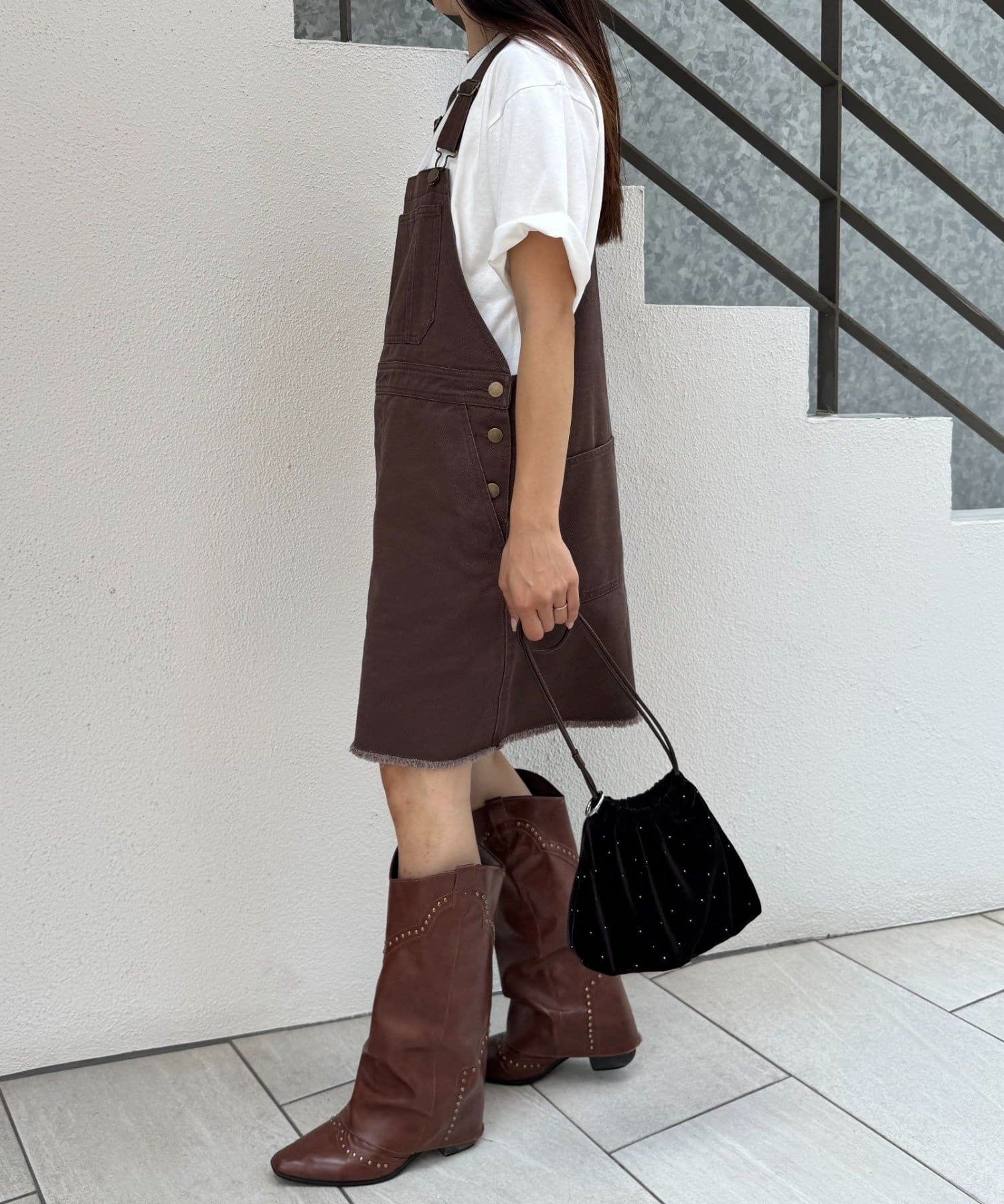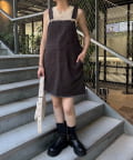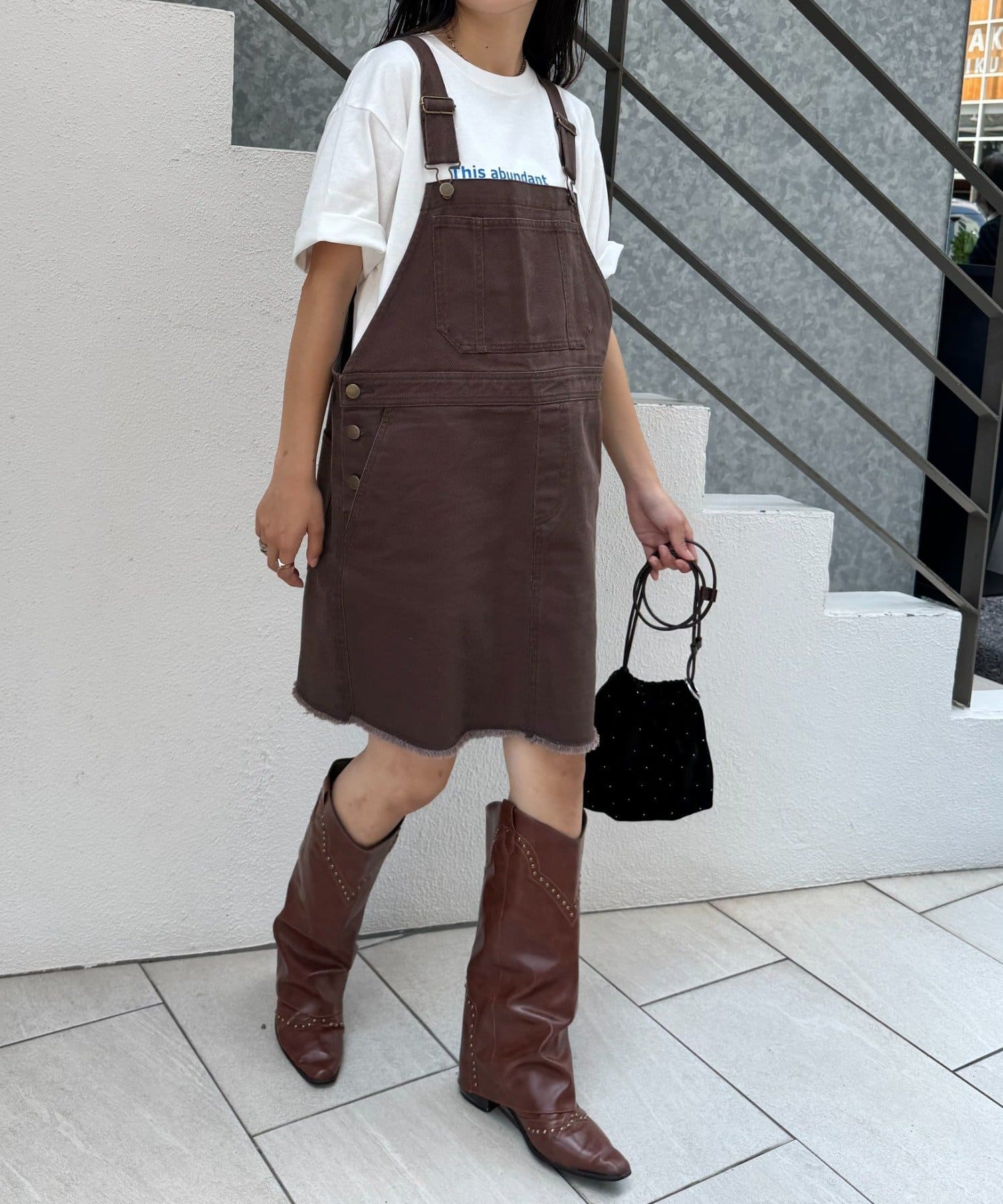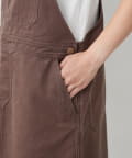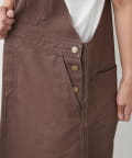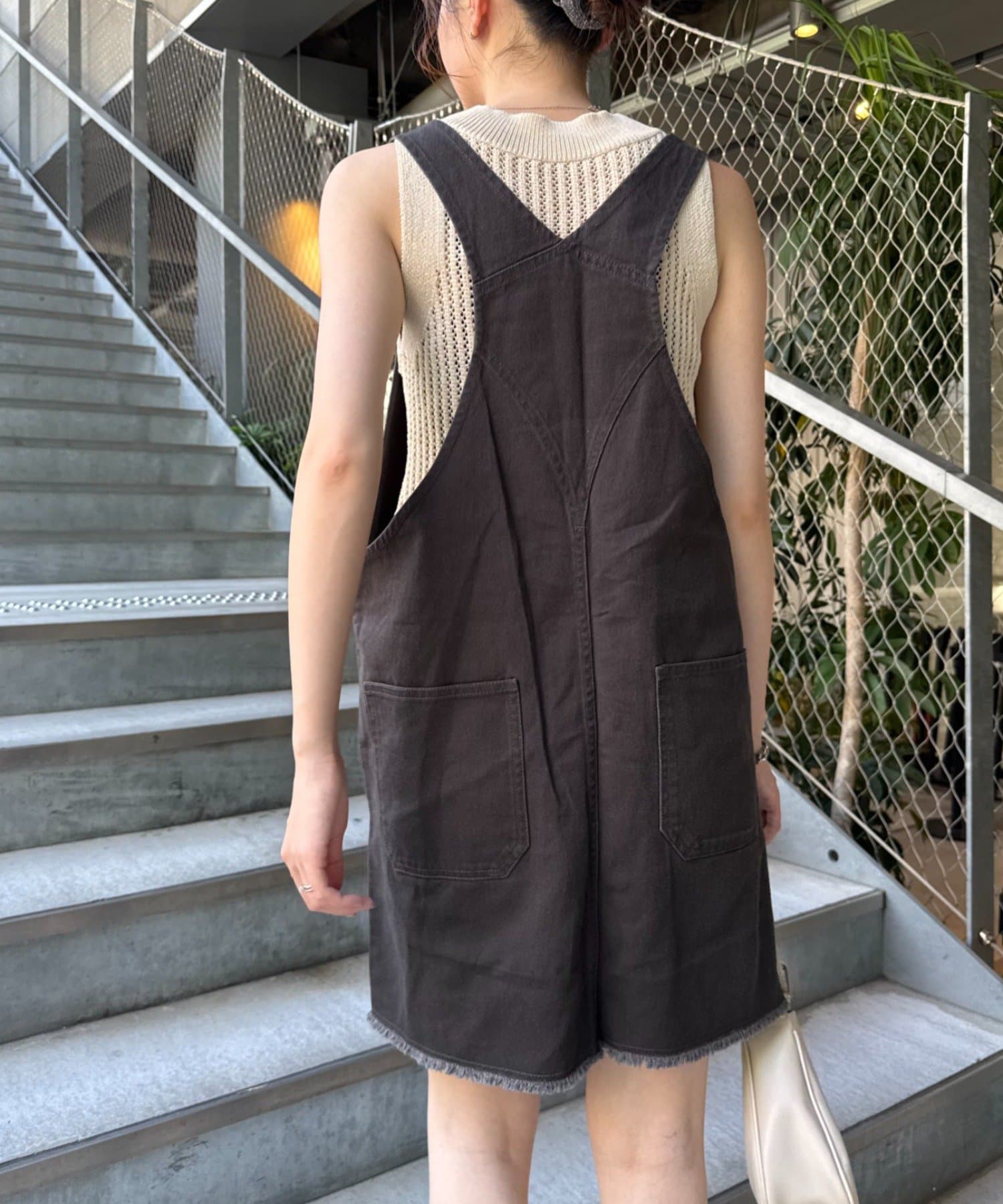 子供っぽく見えがちのショートサロペですが、デニム素材ではなく、