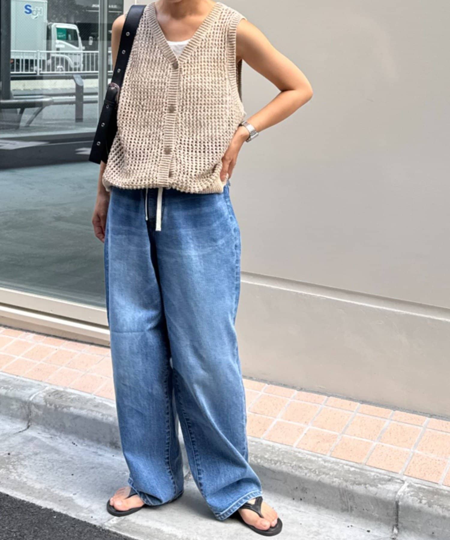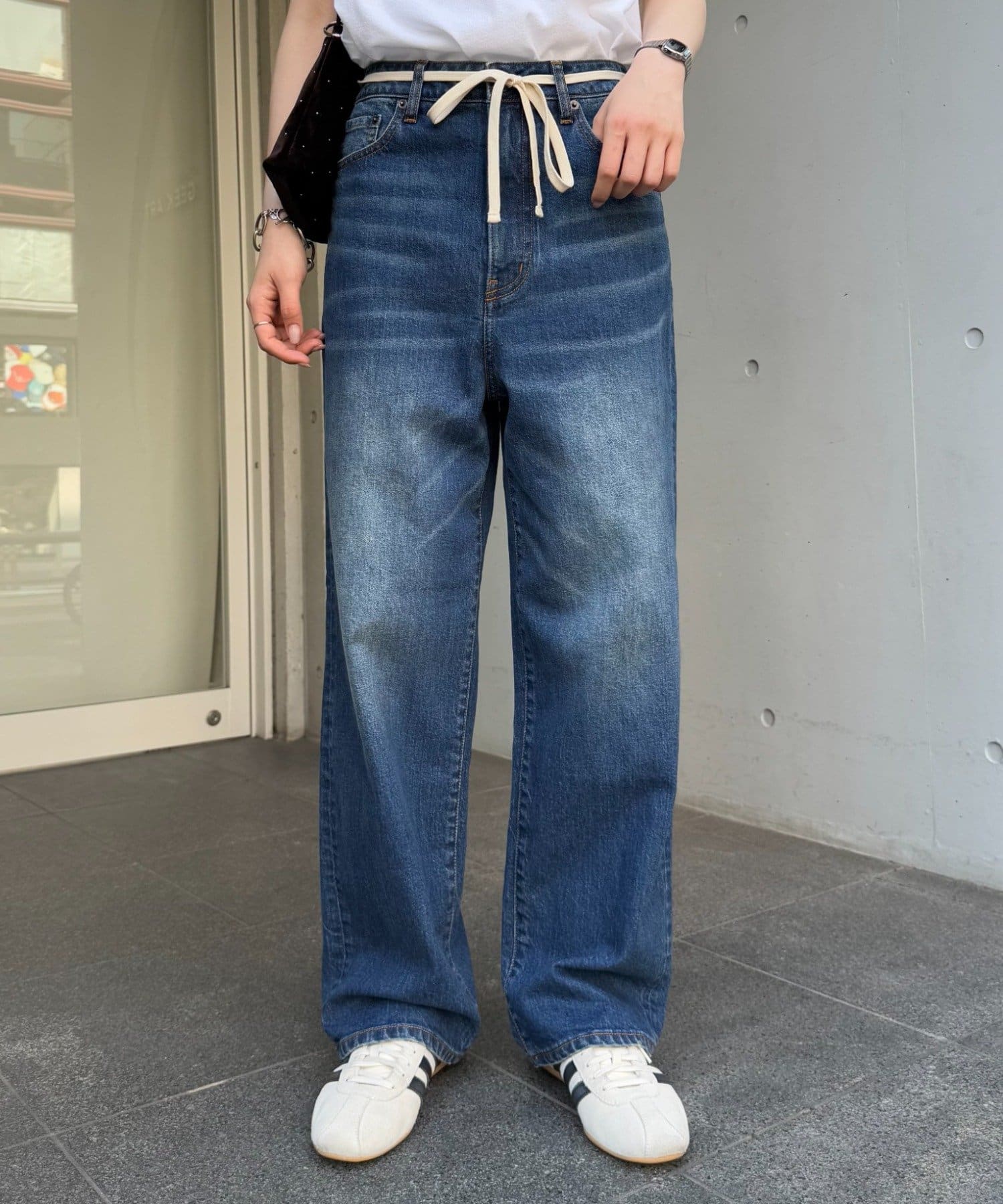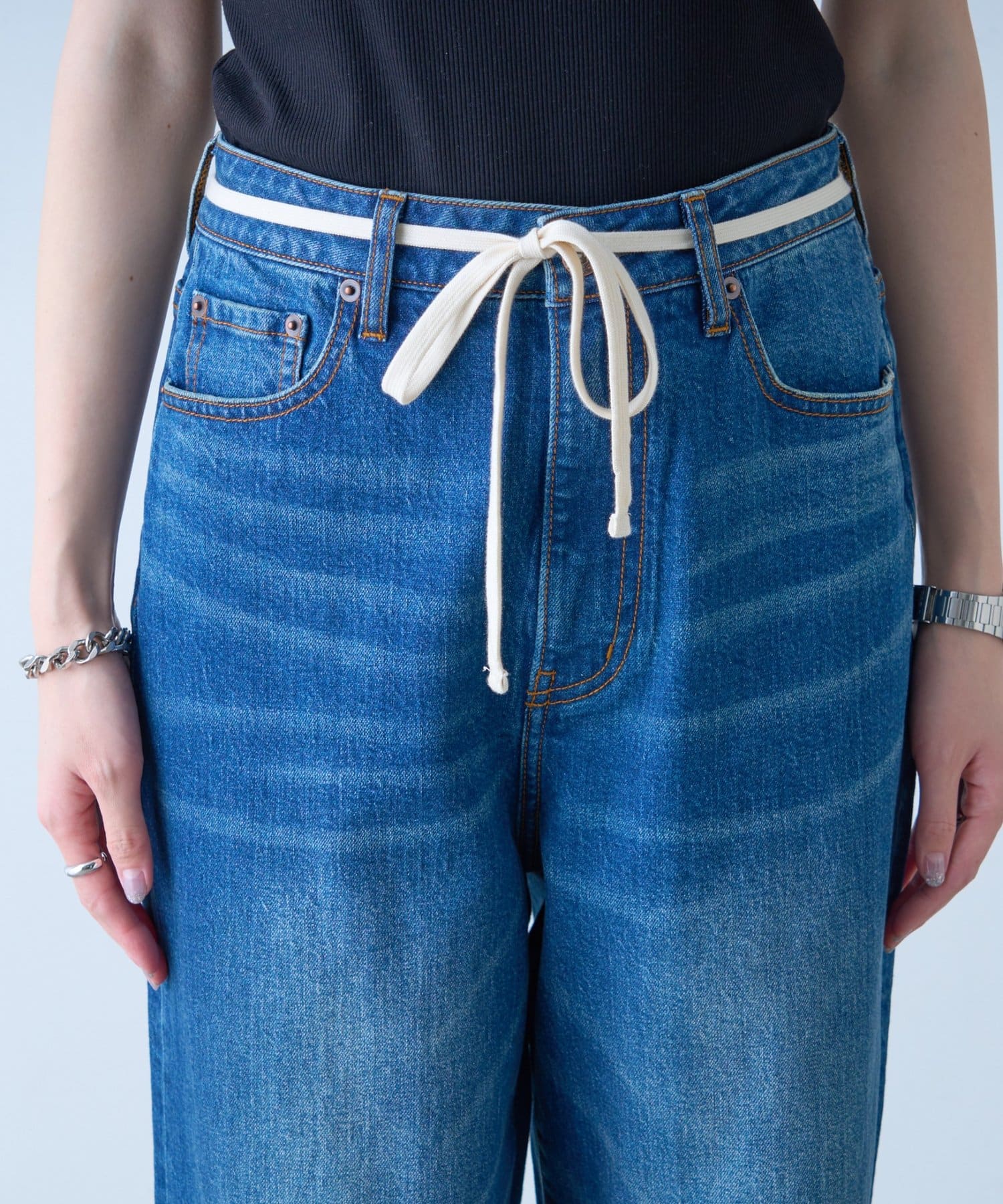 【HENRY】vintagedenim/ウエスト紐ベルト付きワイドデニム