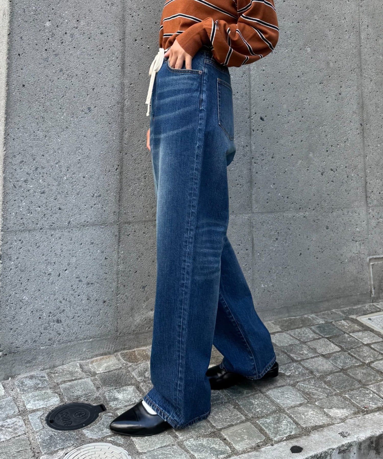 程よいワイドシルエットながら、ストレートラインですっきりとした印象。