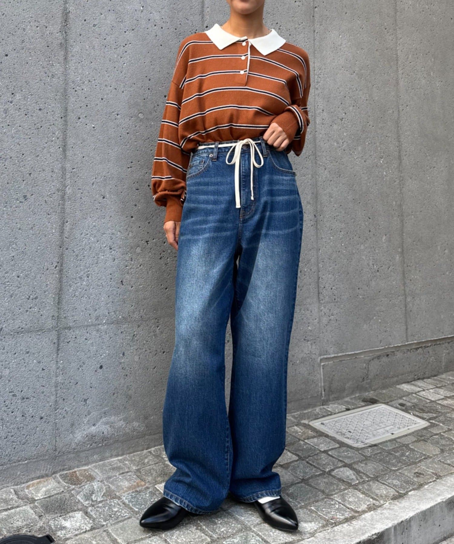 高めに設定したウエストで、脚長効果も期待できます◎