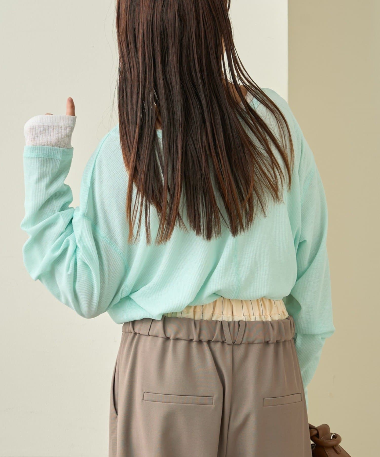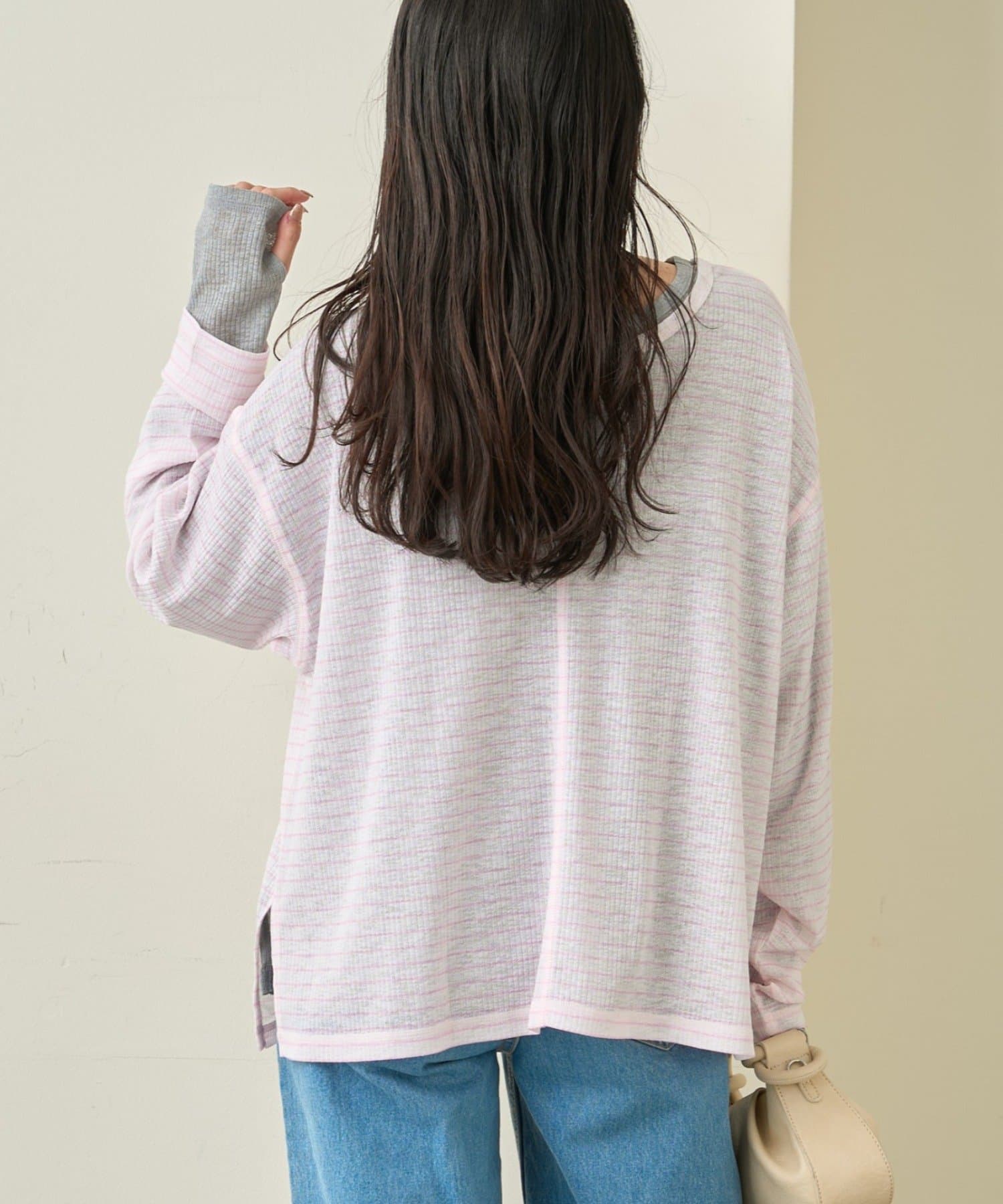 袖部分には指穴があり、絶妙なルーズ感がおしゃれ見え間違いなし♩