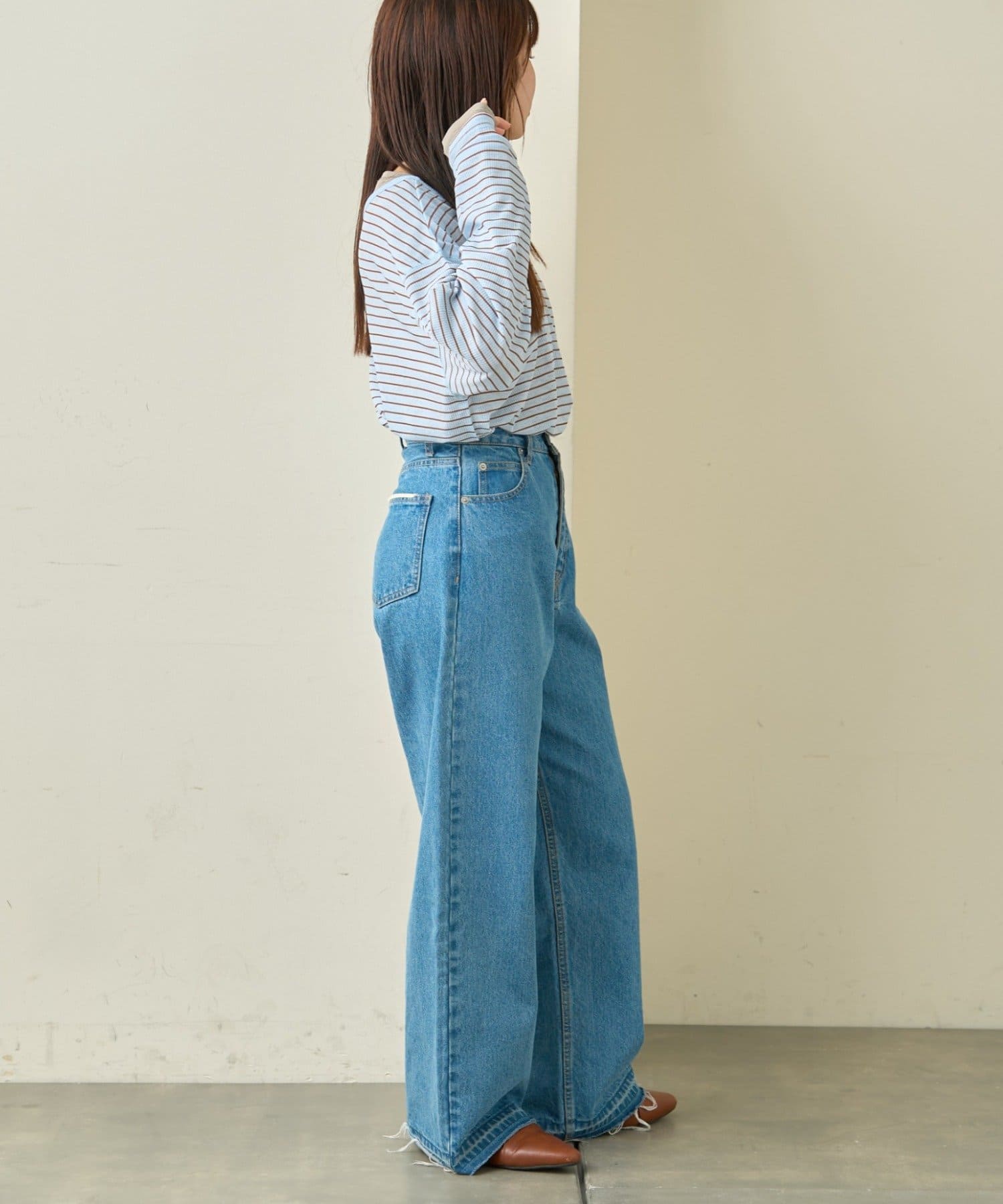 ゆとりのあるサイズ感なので、腰回りもしっかりカバーしてくれるのも嬉しいポイント◎