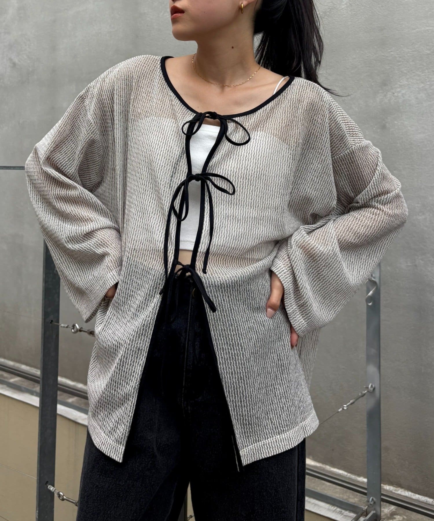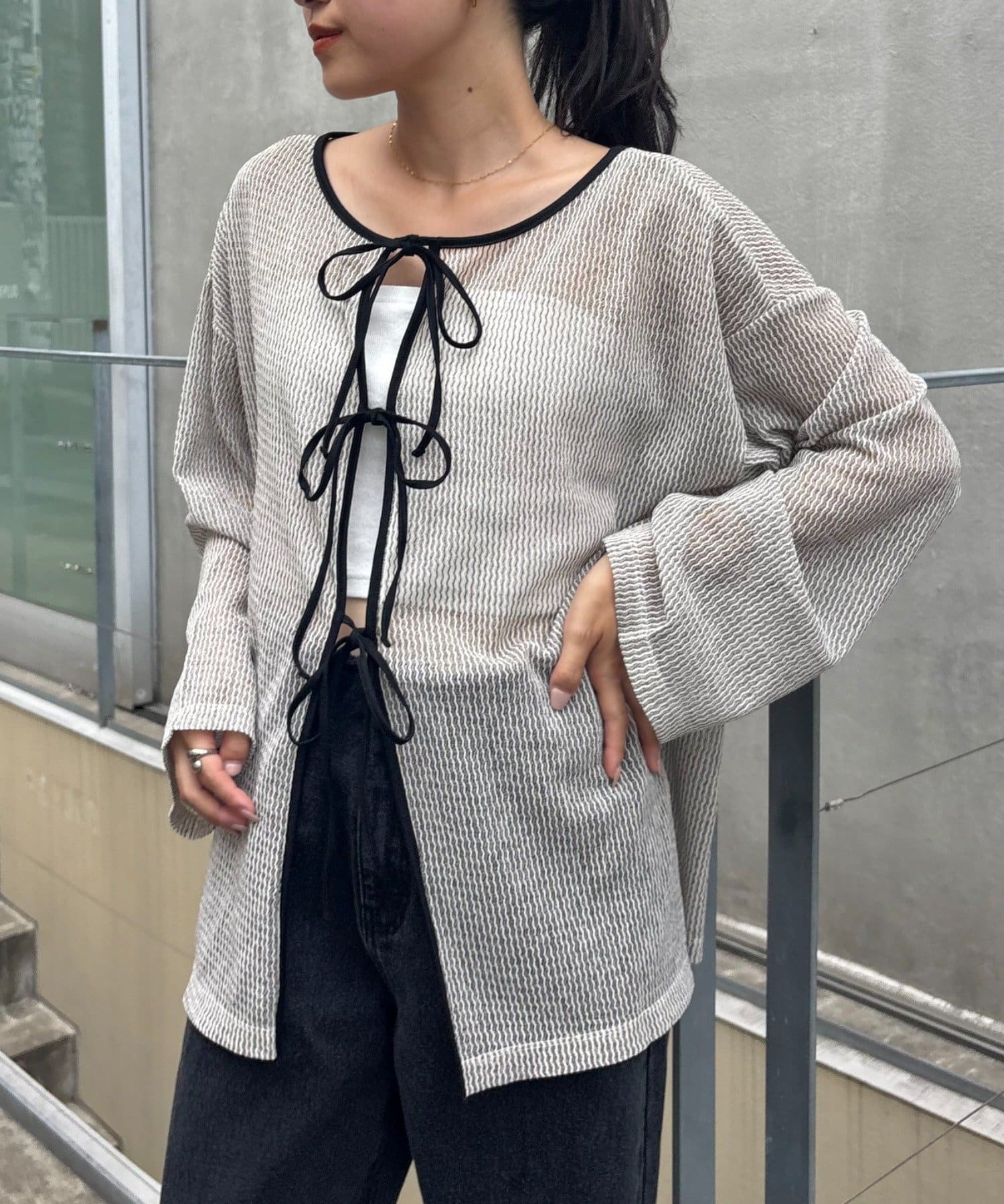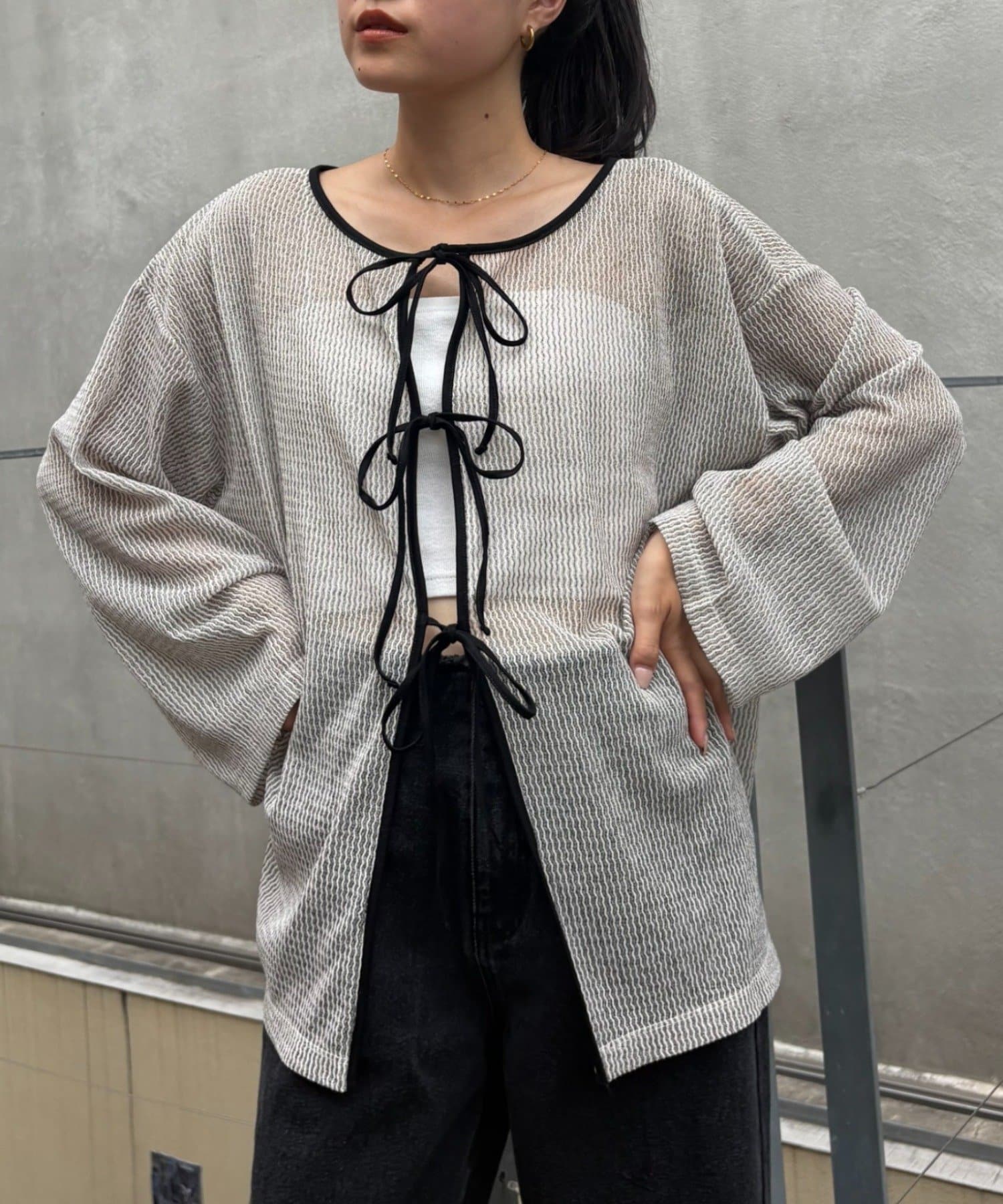 着回し力抜群◎抜け感×可愛さ!シアーリボンカーデ