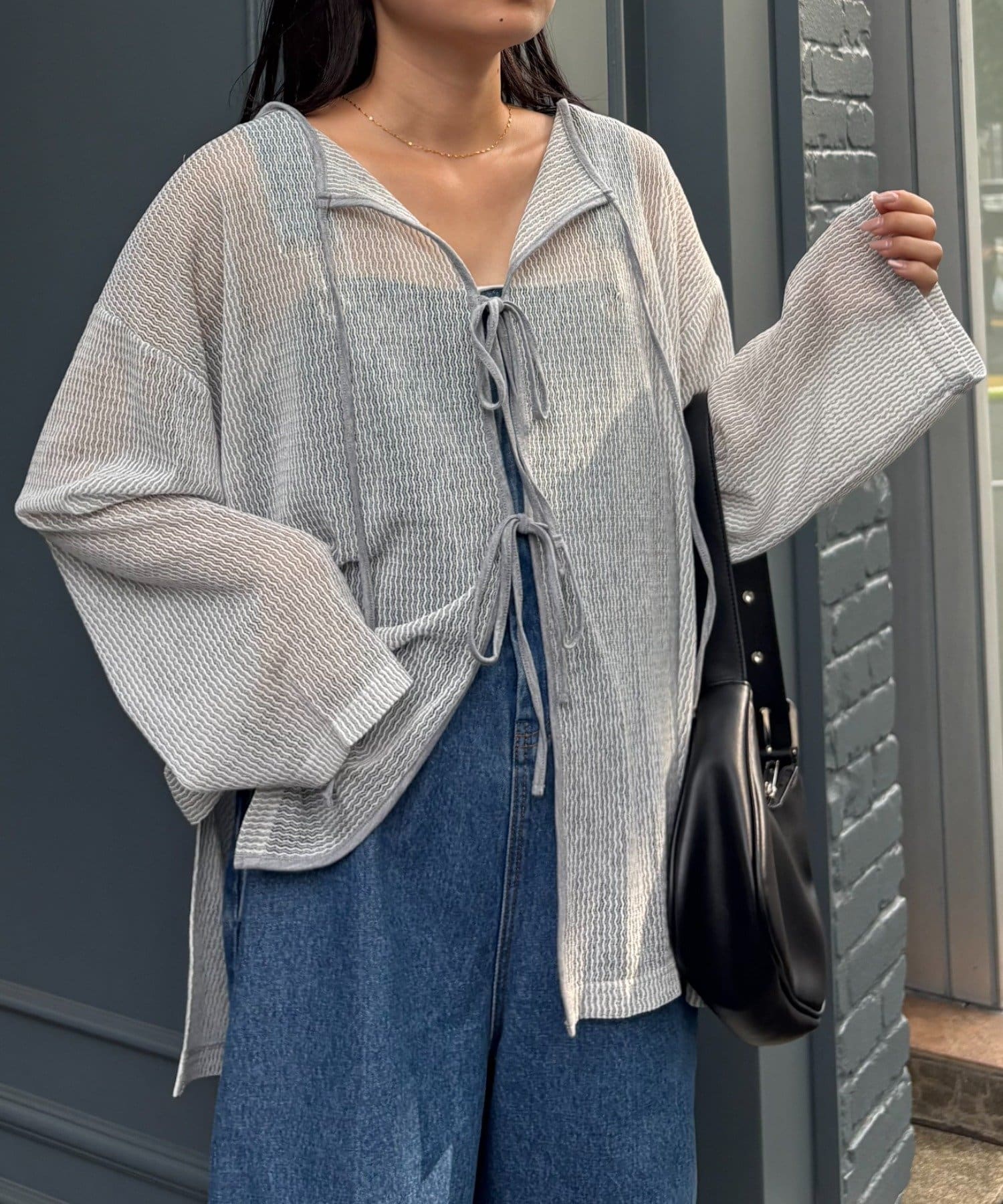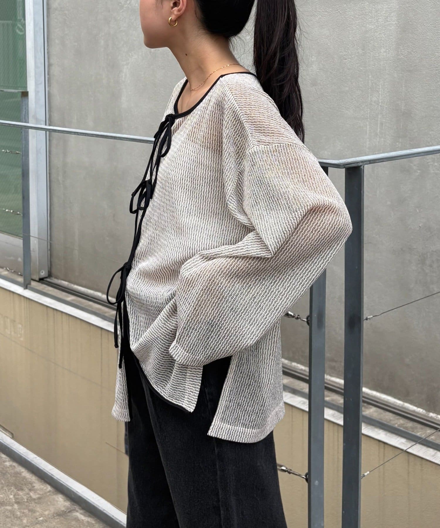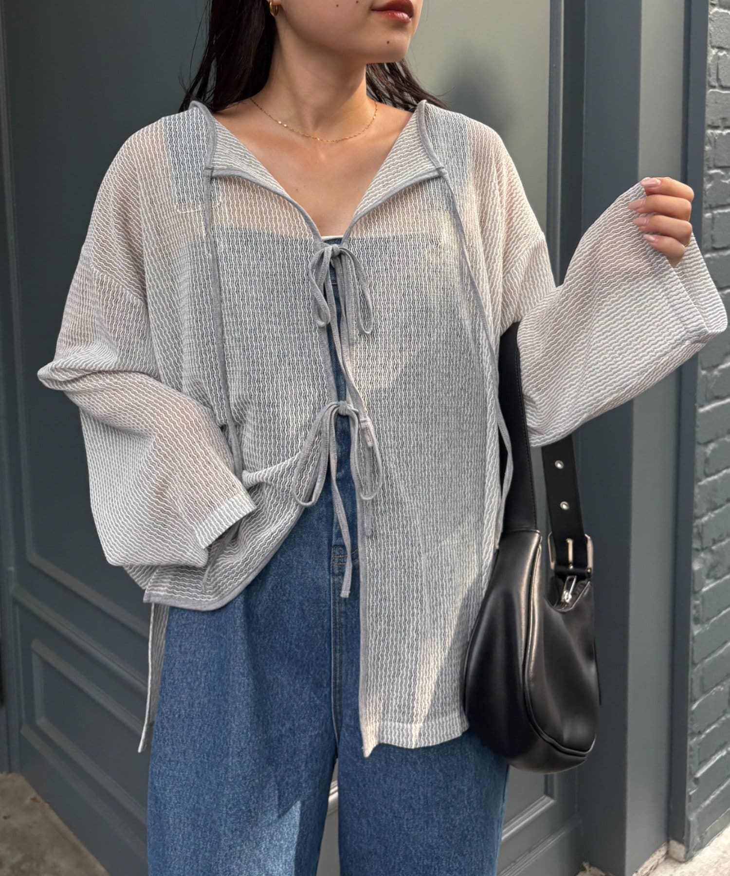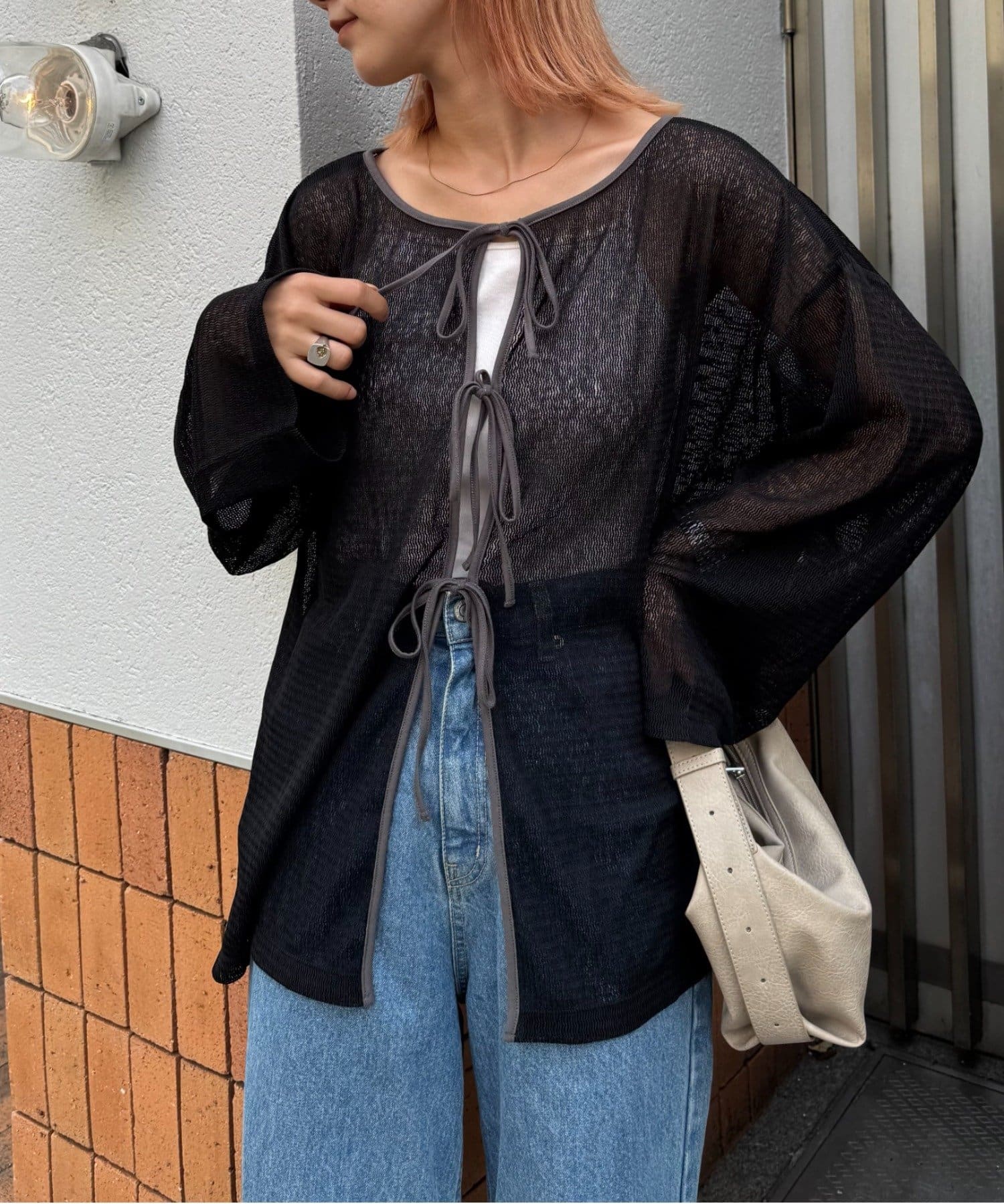 着回し力抜群◎抜け感×可愛さ!シアーリボンカーデ