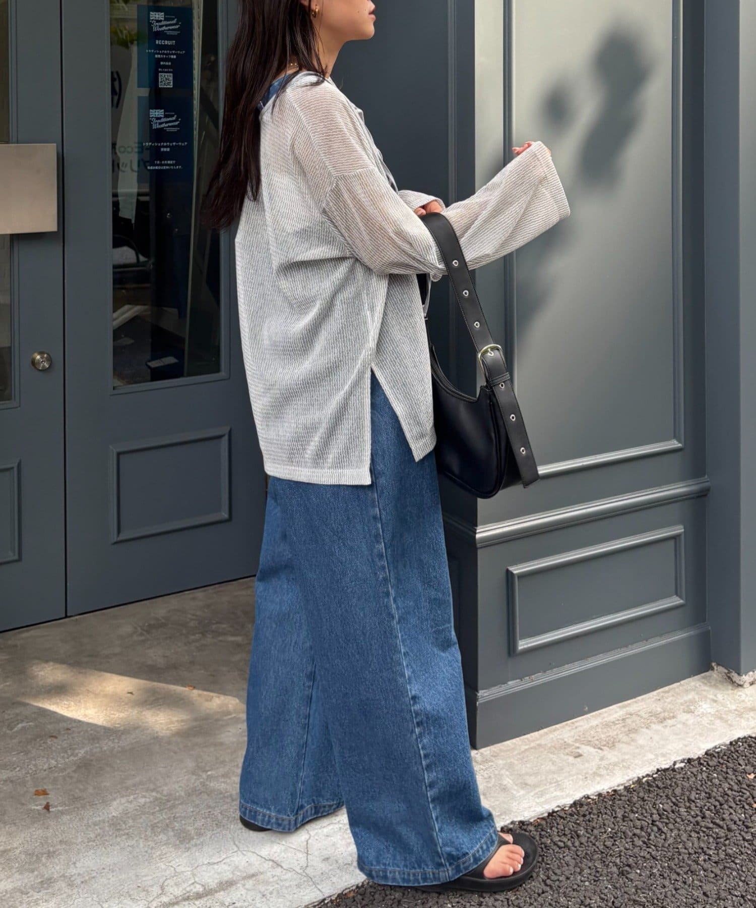 秋口はシアー感を活かして長袖トップスとレイヤードを楽しむのもオススメです!