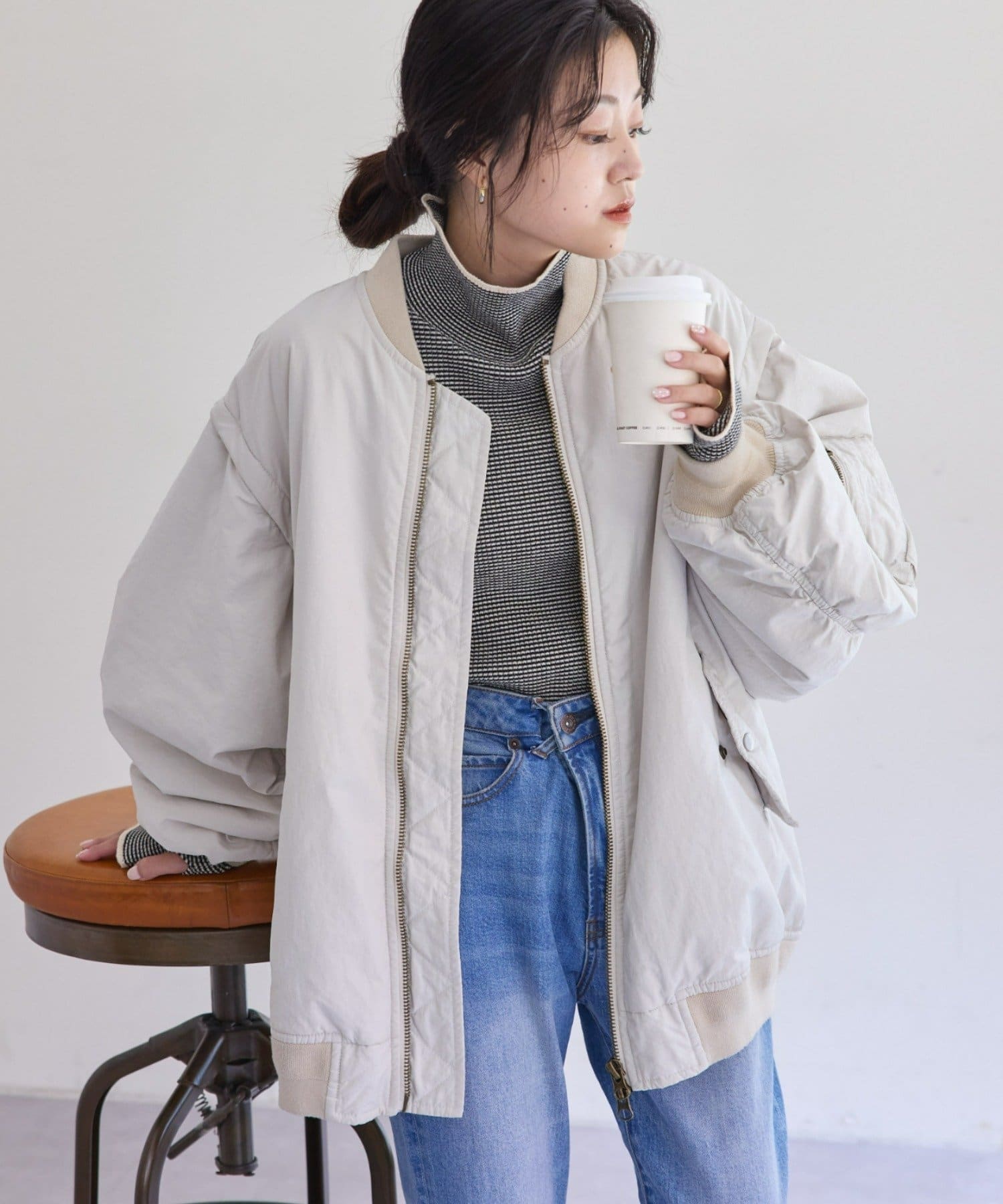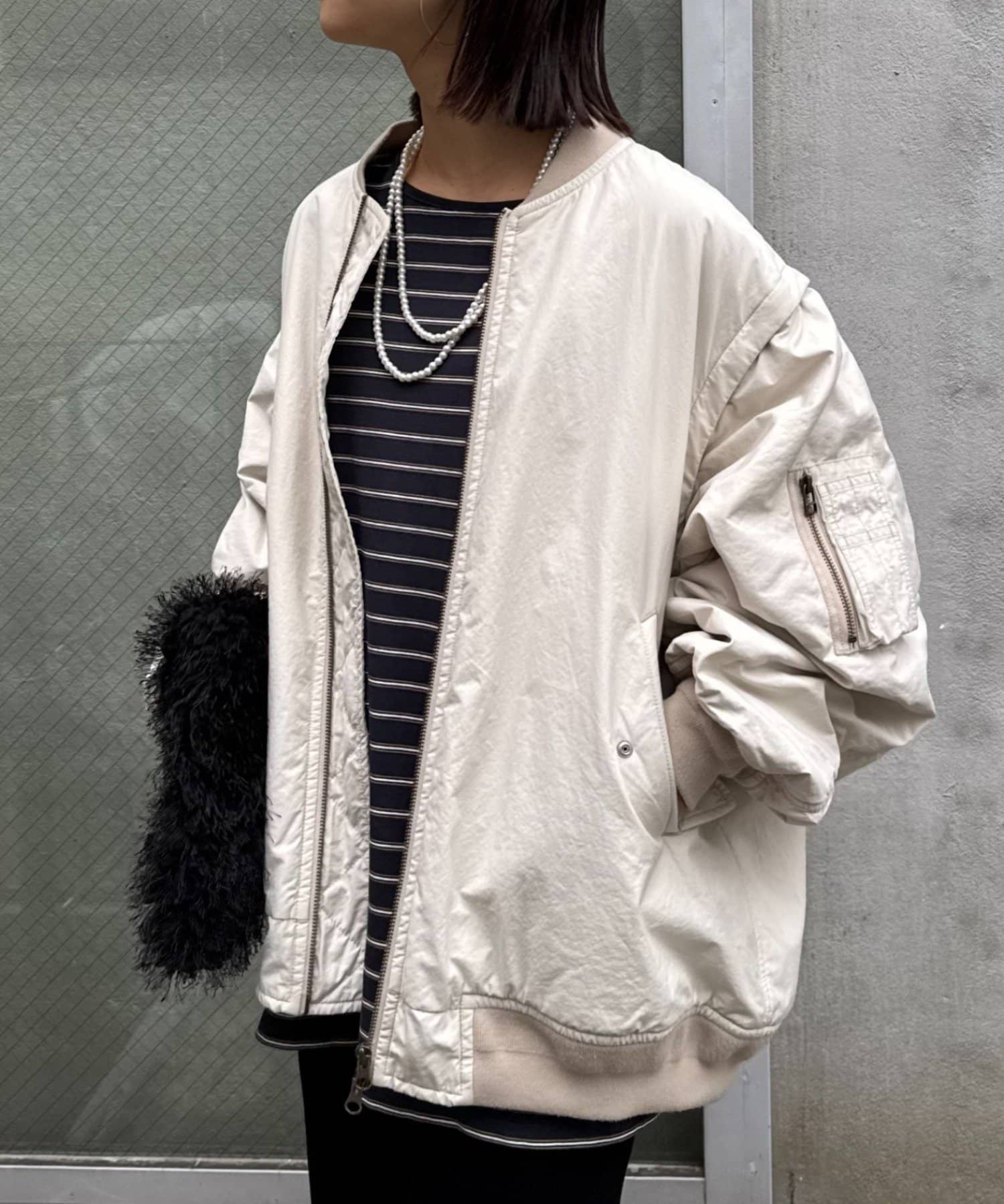 MA-1が好きで、ホワイトっぽい色が欲しいなと思ってた所にちょうどこの色が!