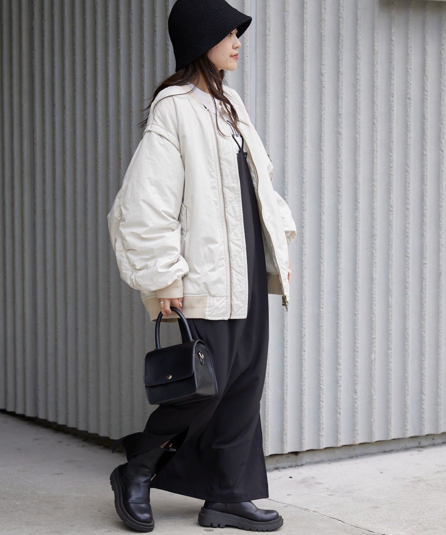 女性らしいロングワンピースと合わせたこなれ感のあるコーデもおすすめです。