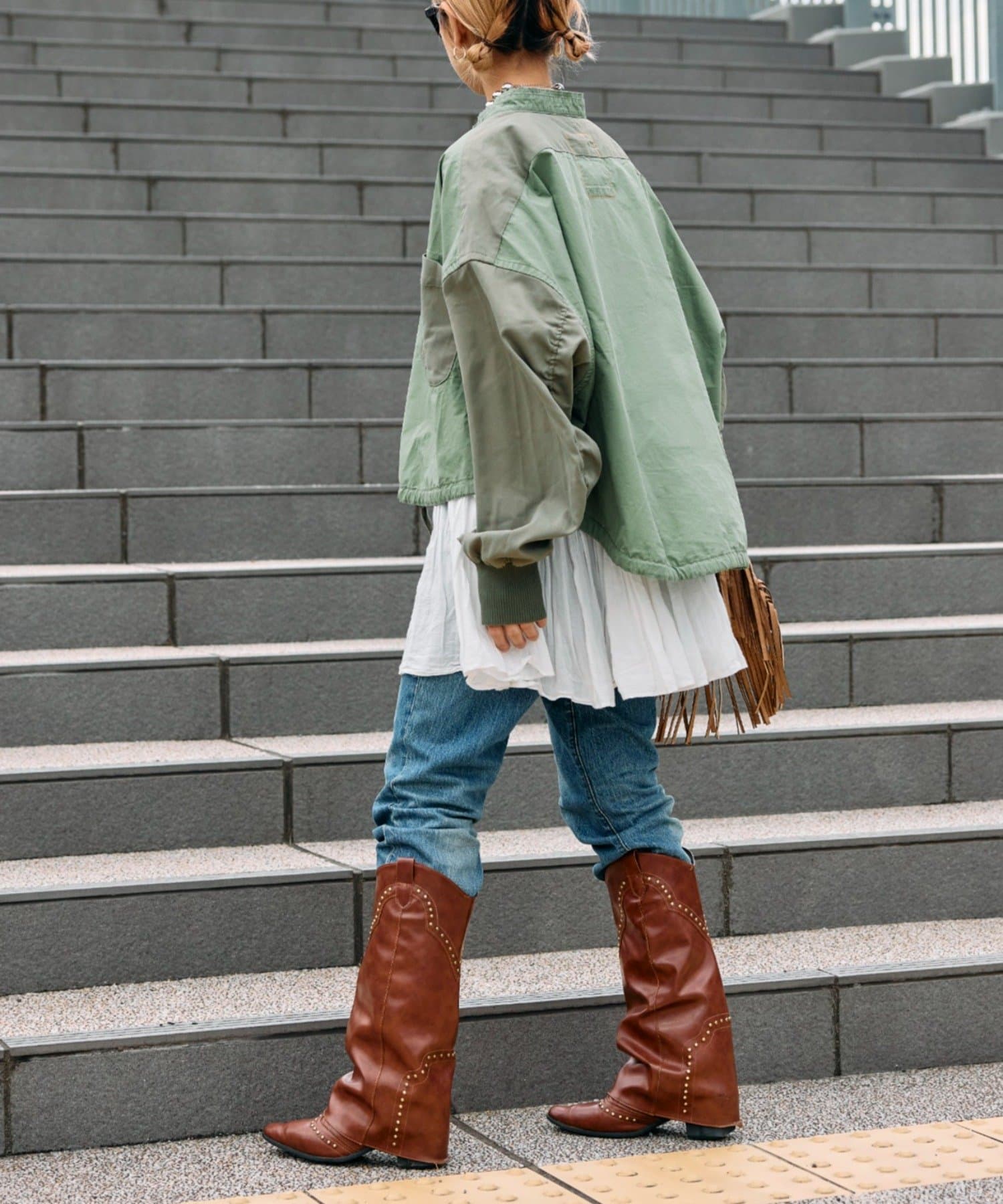 【etsinta/エシンタ】リメイクドロストシャツブルゾン