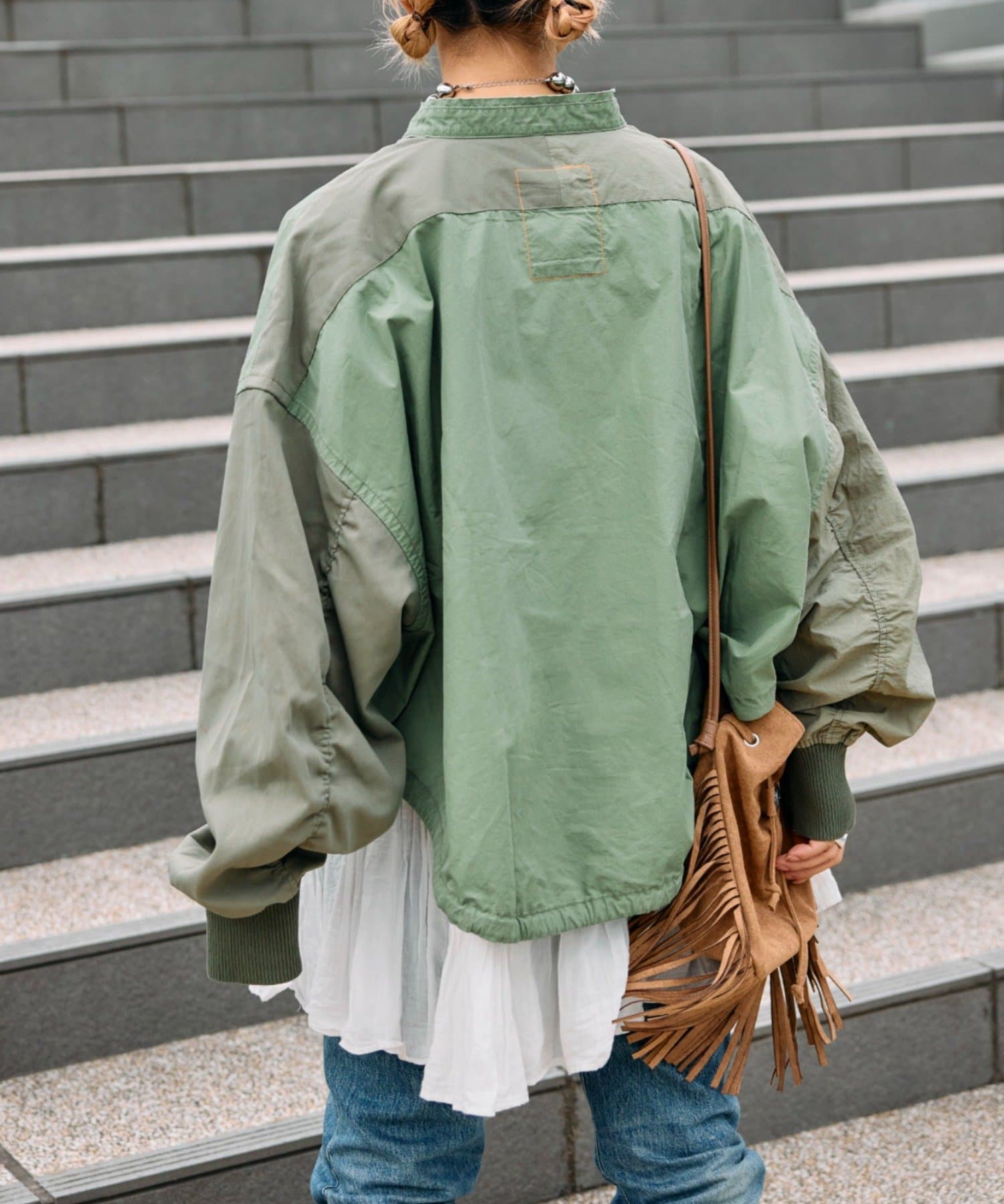 身頃部分と袖部分の切り替えが、おしゃれ見えするジャケットが登場。