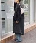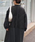 キルティング加工によるふっくらとした立体感と、異素材の組み合わせが、シンプルながらも奥行きのある表情を生み出します。